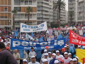 TÜRK-İŞ’e bağlı sendikalar, Alsancak Limanı yönünden saat 13.oo’de yürüyüşe geçerek alana geldiler.