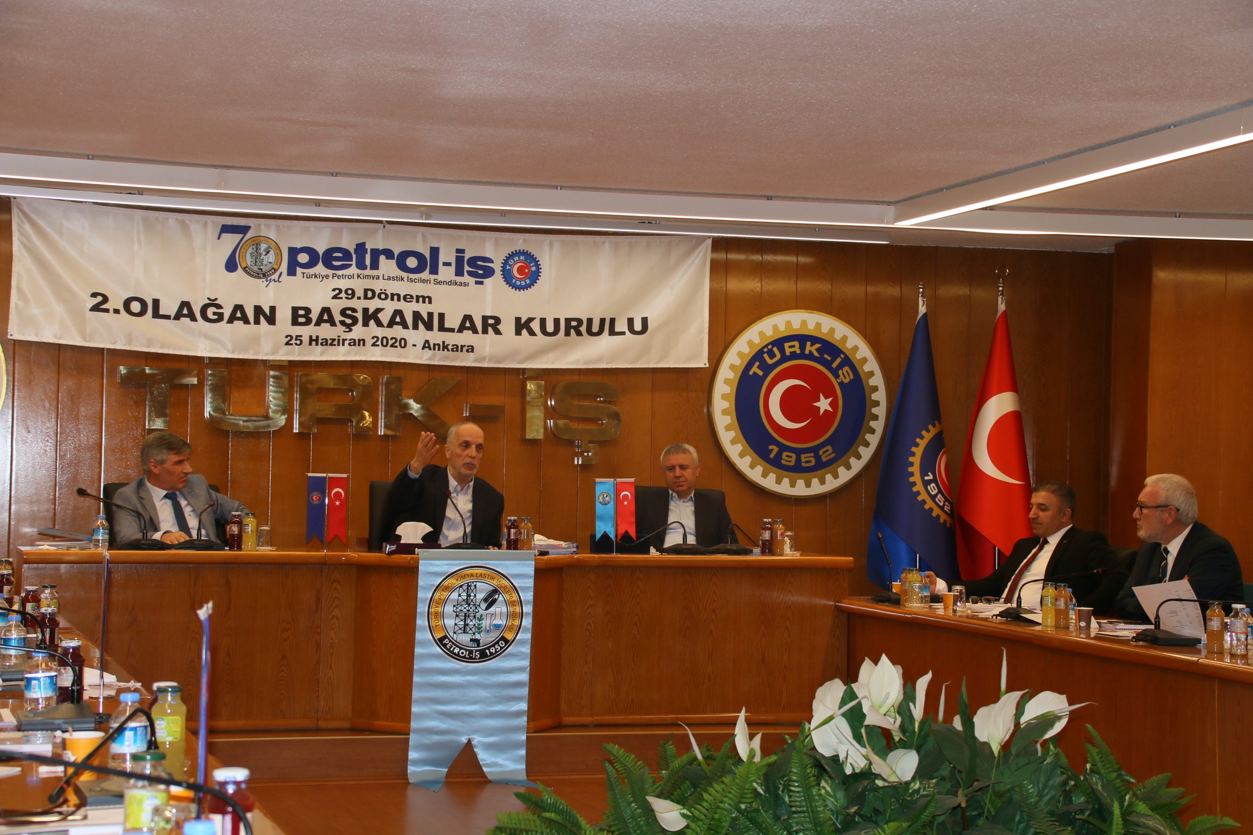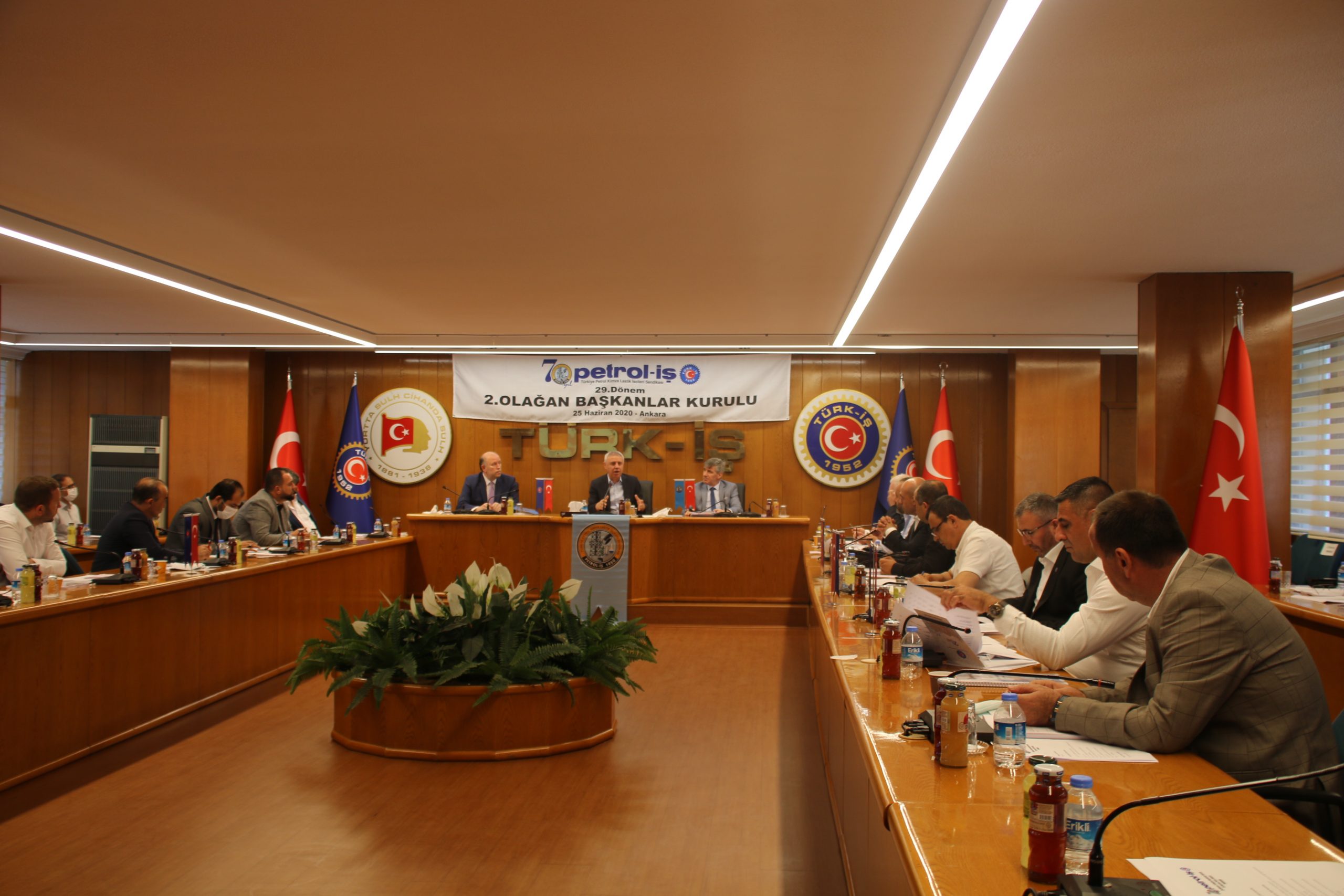 Sendikamızın her dört ayda bir toplanan, Merkez Yönetim, Denetim, Disiplin Kurulları ve şube başkanlarının katılımıyla yapılan Başkanlar Kurulu, 29. Dönem 2. Olağan Toplantısını 25 Haziran(Bugün) tarihinde gerçekleştiriyor. Ankara’da, konfederasyonumuz Türk-İş’in Genel Merkezi’nde yapılan Başkanlar Kurulumuz oldukça yoğun bir gündem ile toplandı.