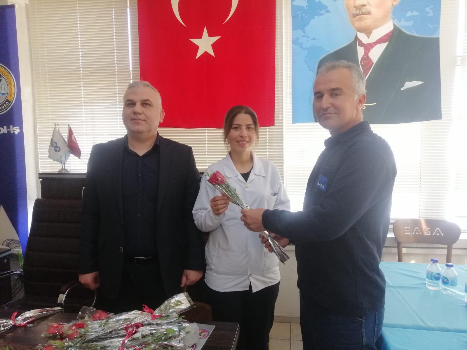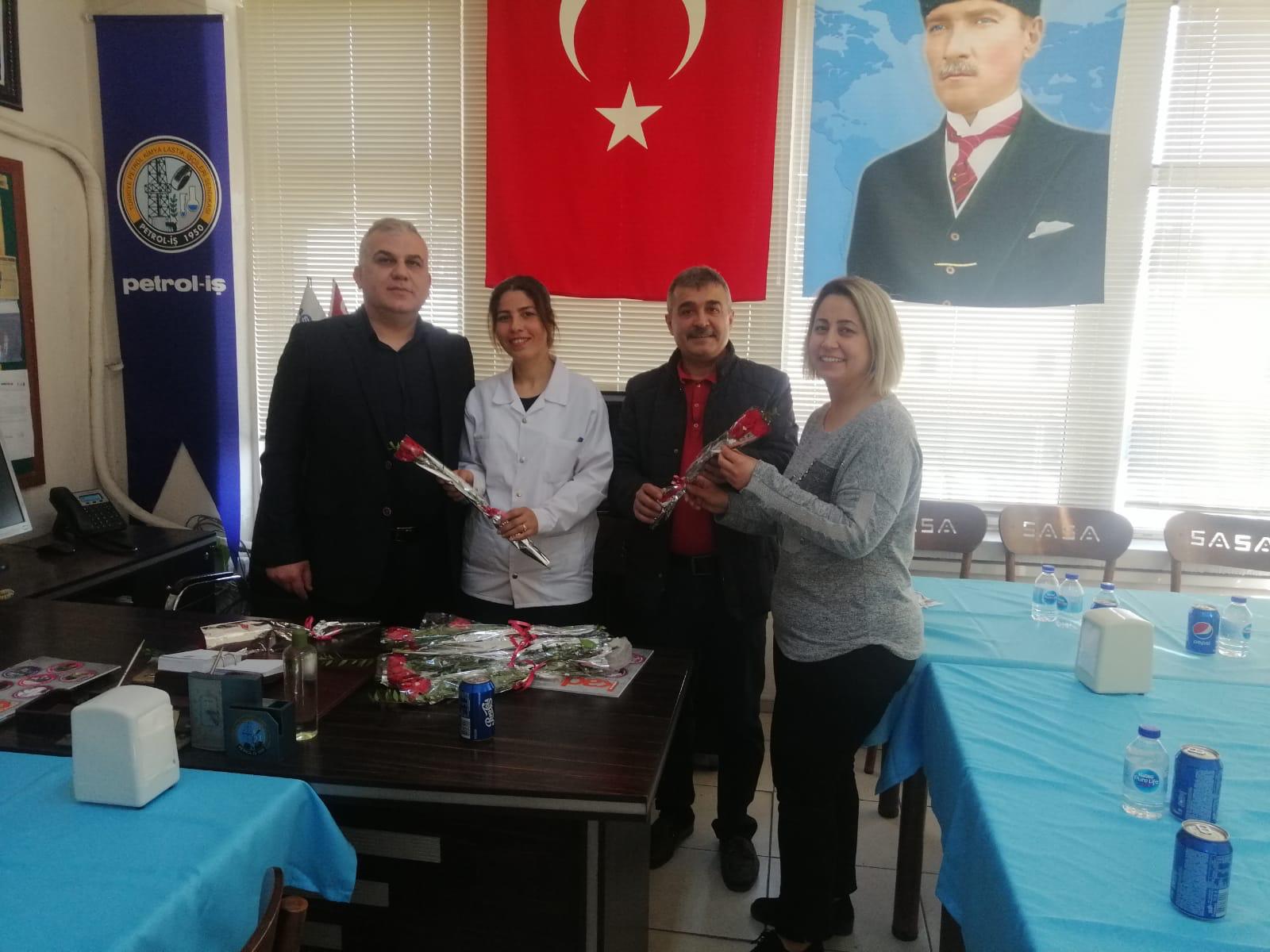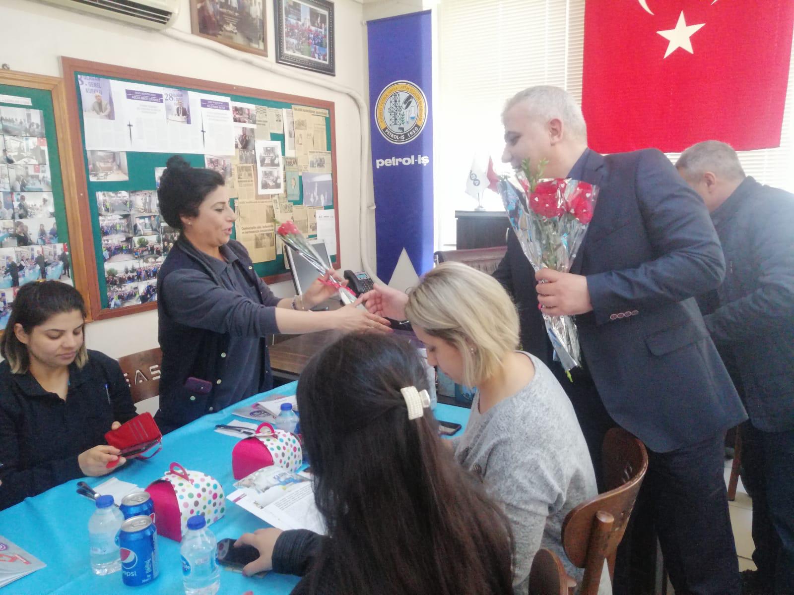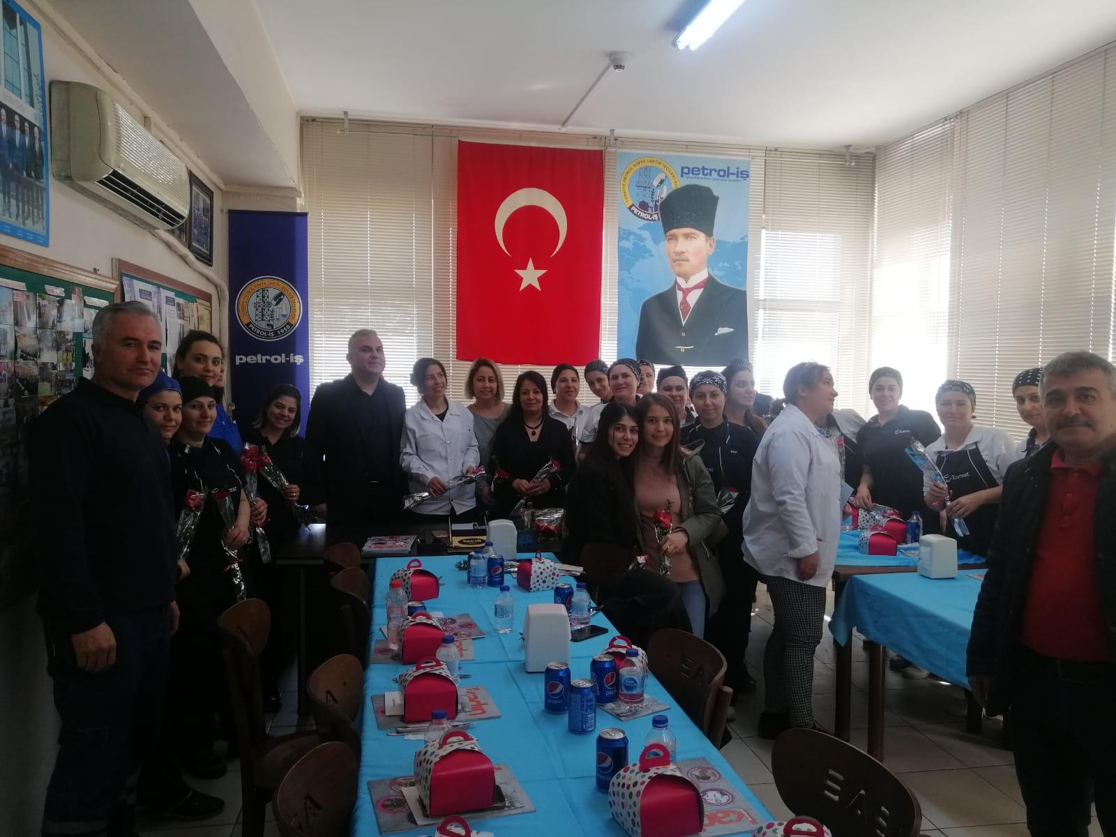 8 Mart 2020 tarihinde şubemize bağlı Sasa Polyester Sanayi A.Ş., Toros Tarım Sanayi A.Ş., Petrol İşletmeleri Ceyhan Botaş Bölge Müdürlüğü, Petrol İşletmeleri Dörtyol Botaş Terminali, İskenderun Gübre Fabrikası’nda kadın üyelerimiz ve temsilci, yöneticilerimizin katılımı ile Dünya Emekçi Kadınlar Günü kutlandı.