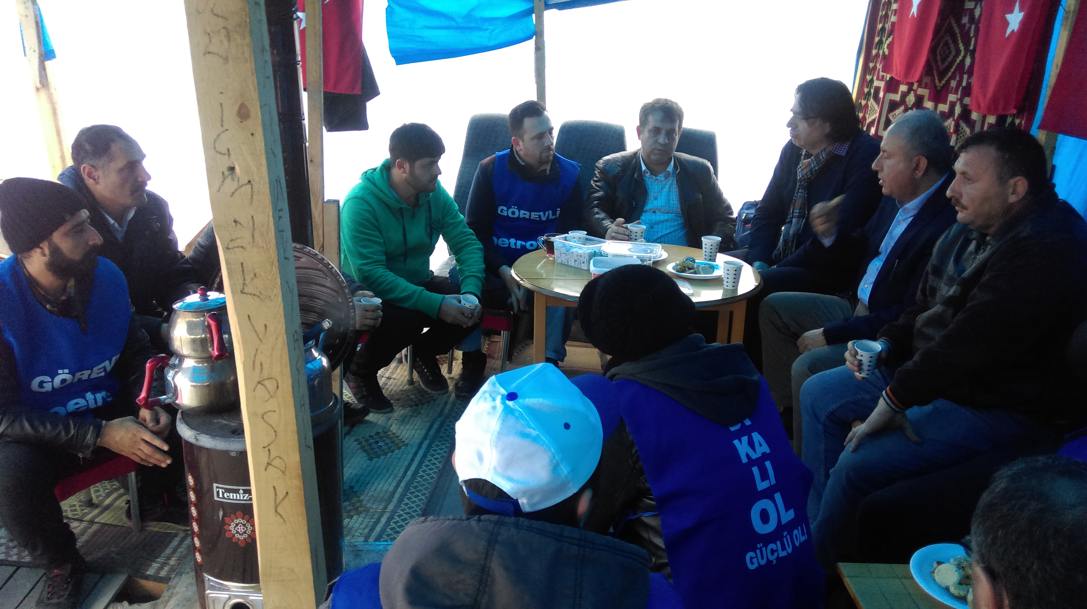 Üyelerimizin bu direnişine destek vermek için ziyarette bulunan heyetten Petrol-İş Genel Sekreteri Ahmet Kabaca bir konuşma yaparak işi ve ekmeği için günlerdir direnen üyelerimizi selamladı ve Petrol-İş üyelerinin bu işyeri önünde günlerdir direndiğini ve tek amaçlarının sendikalı olarak işyerinde çalışmaya devam etmek olduğunu belirtti. İşverenin, önünde sonunda Petrol-İş ile masaya oturacağının altını çizen Ahmet Kabaca, Petrol-İş’in direnişi sonuna kadar destekleyeceğini söyledi.