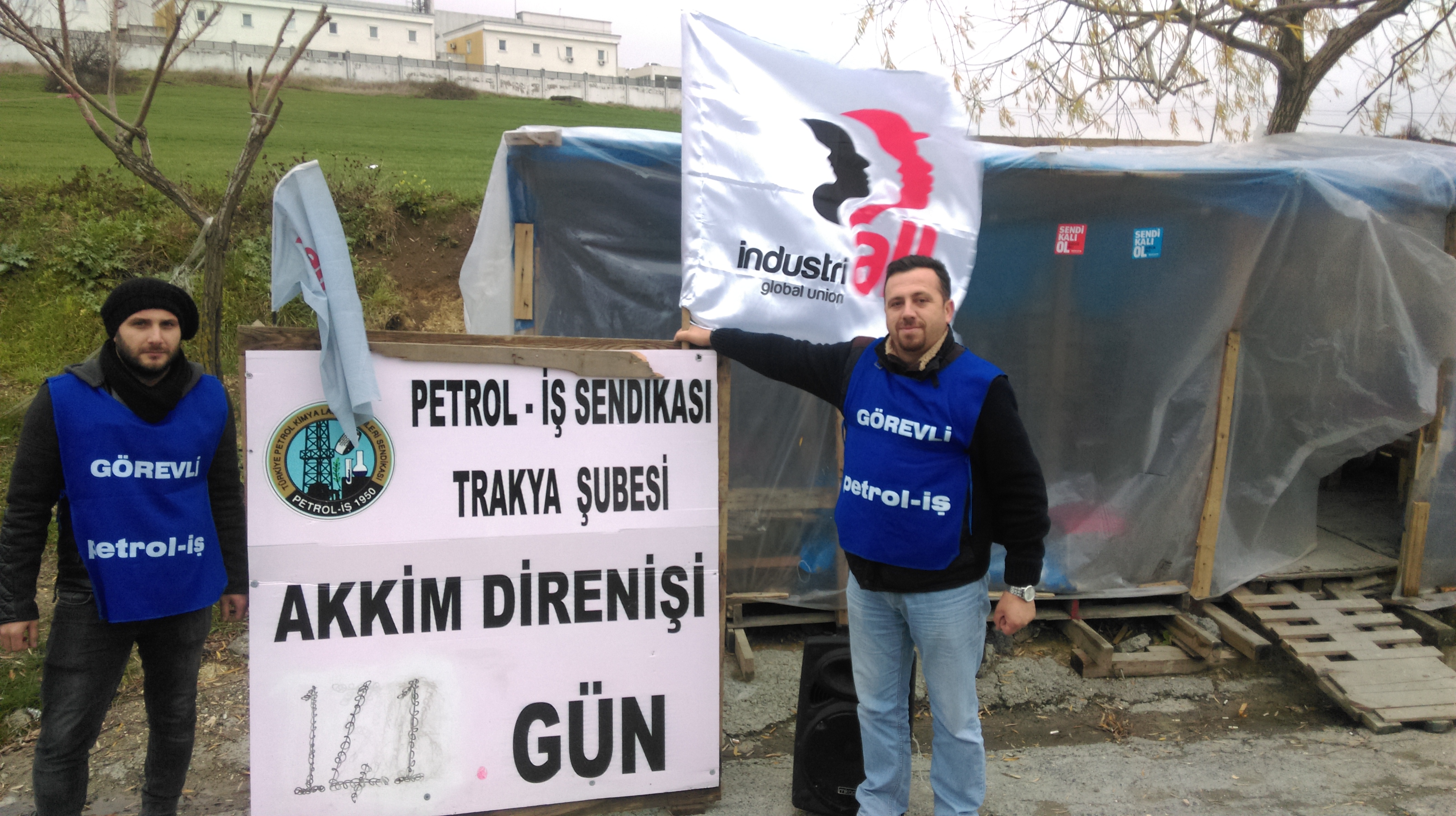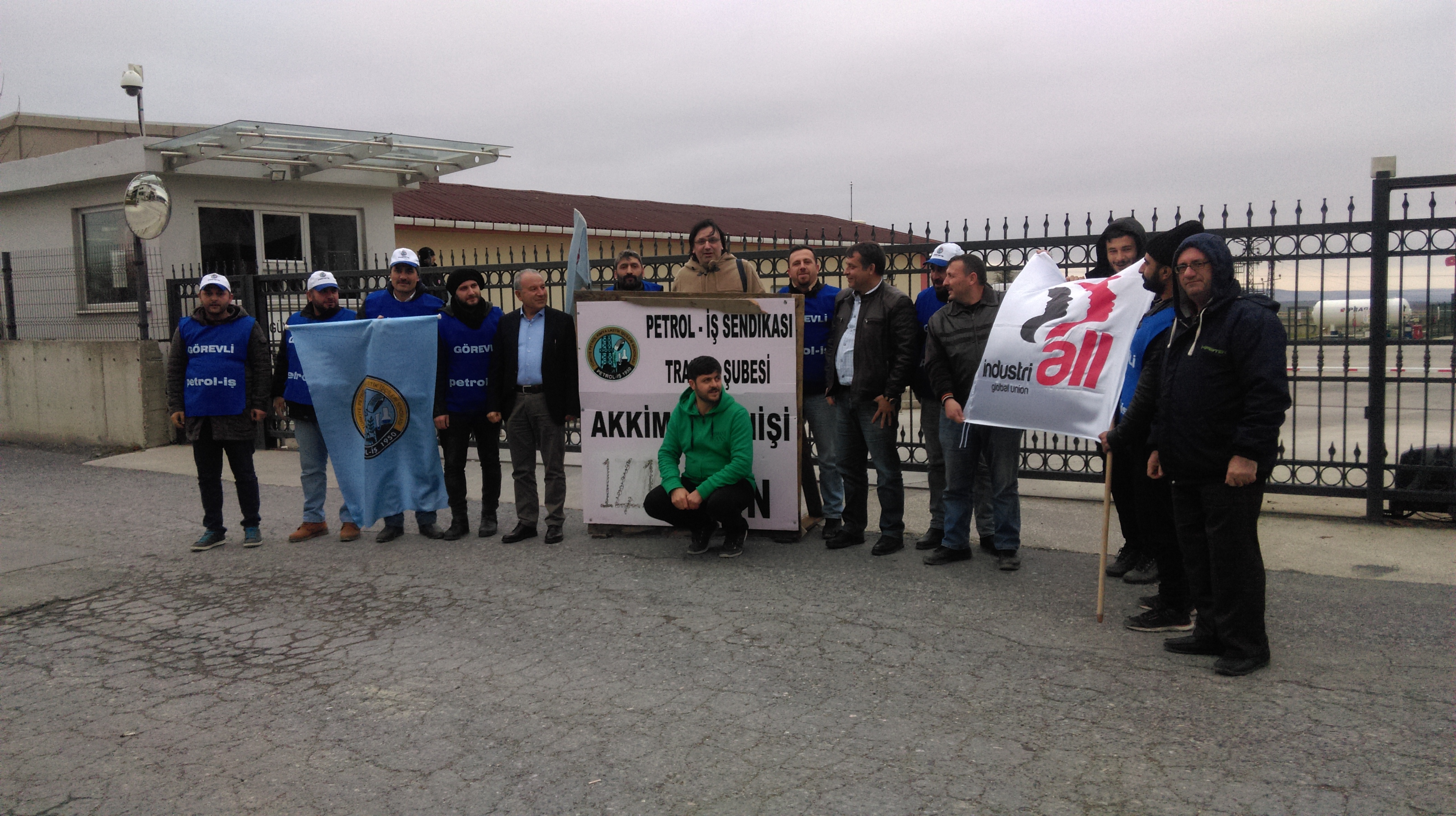 Akkim işyerinin önünde günlerdir direnişlerini sürdüren üyelerimizi üst örgütümüz IndustriALL Küresel Sendika Genel Sekreter yardımcısı Kemal Özkan, Petrol-İş Genel Sekreteri Ahmet Kabaca, Petrol-İş Trakya Şube Başkanı Ercan Yavuz ve Petrol-İş Uluslararası İlişkiler Uzmanı Rıza Köse ziyaret etti.