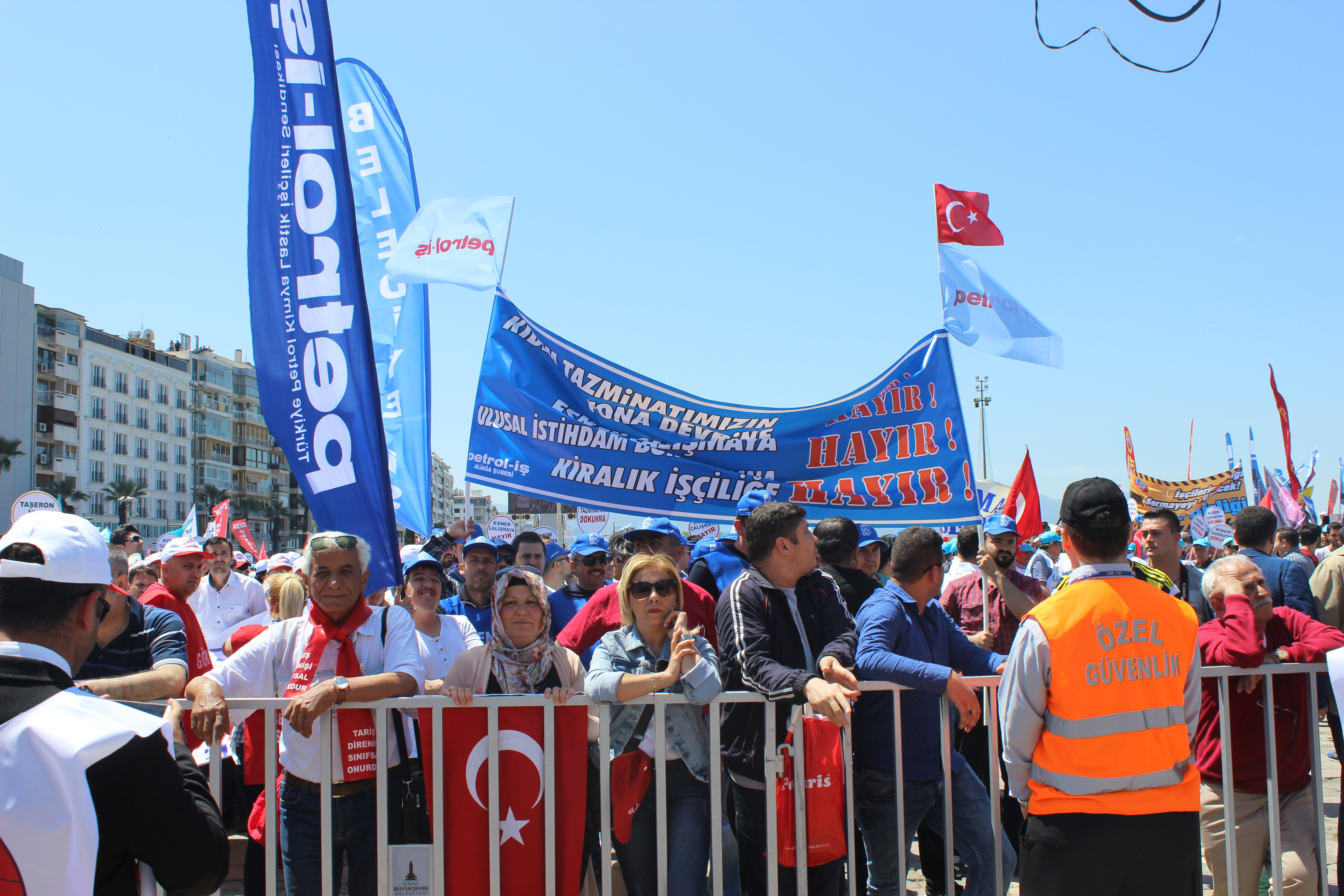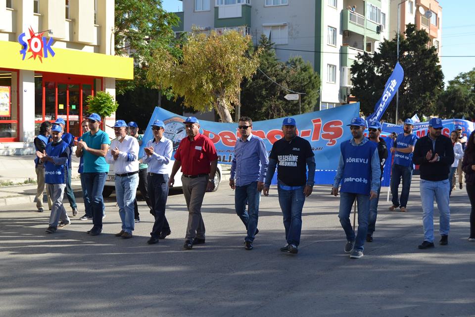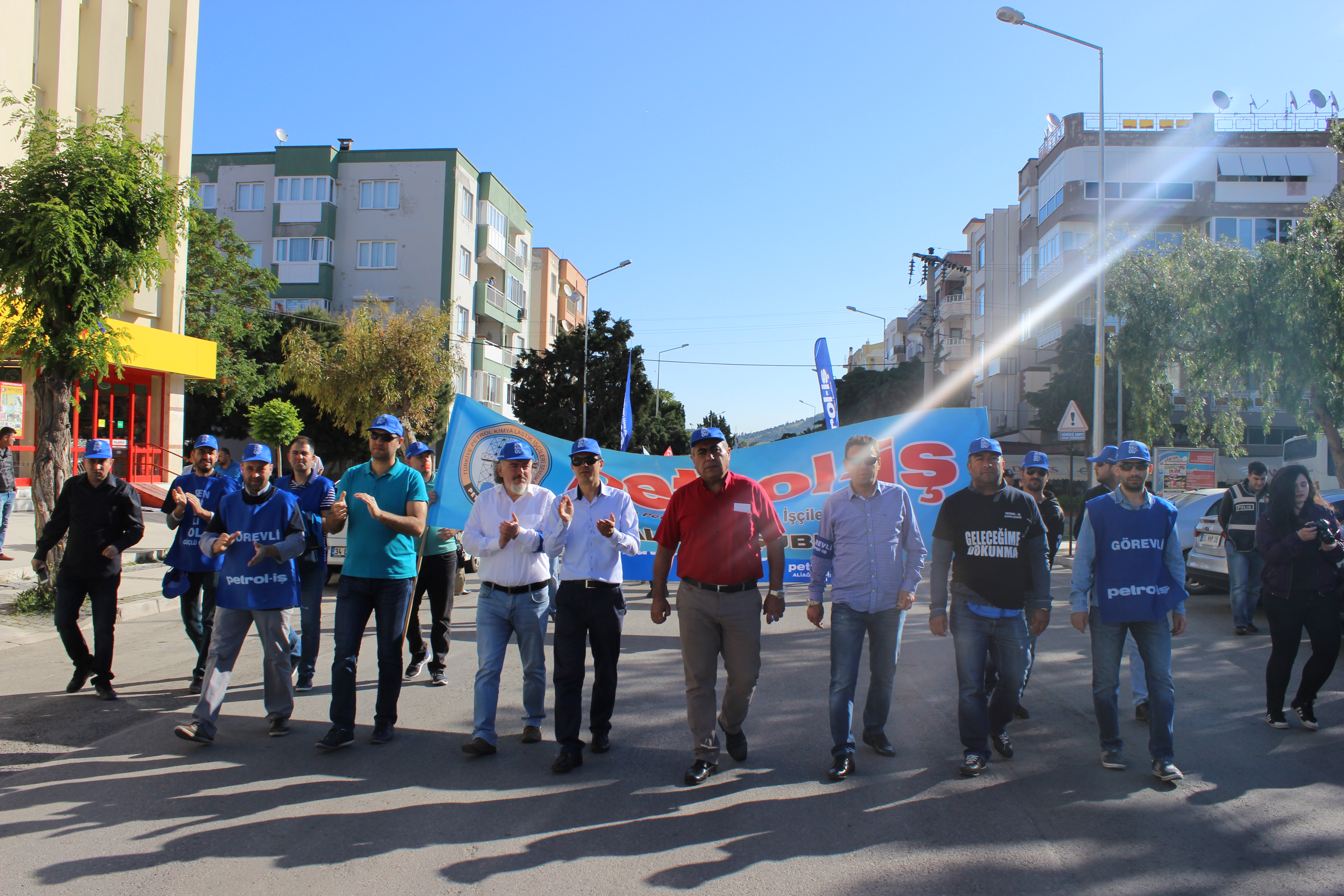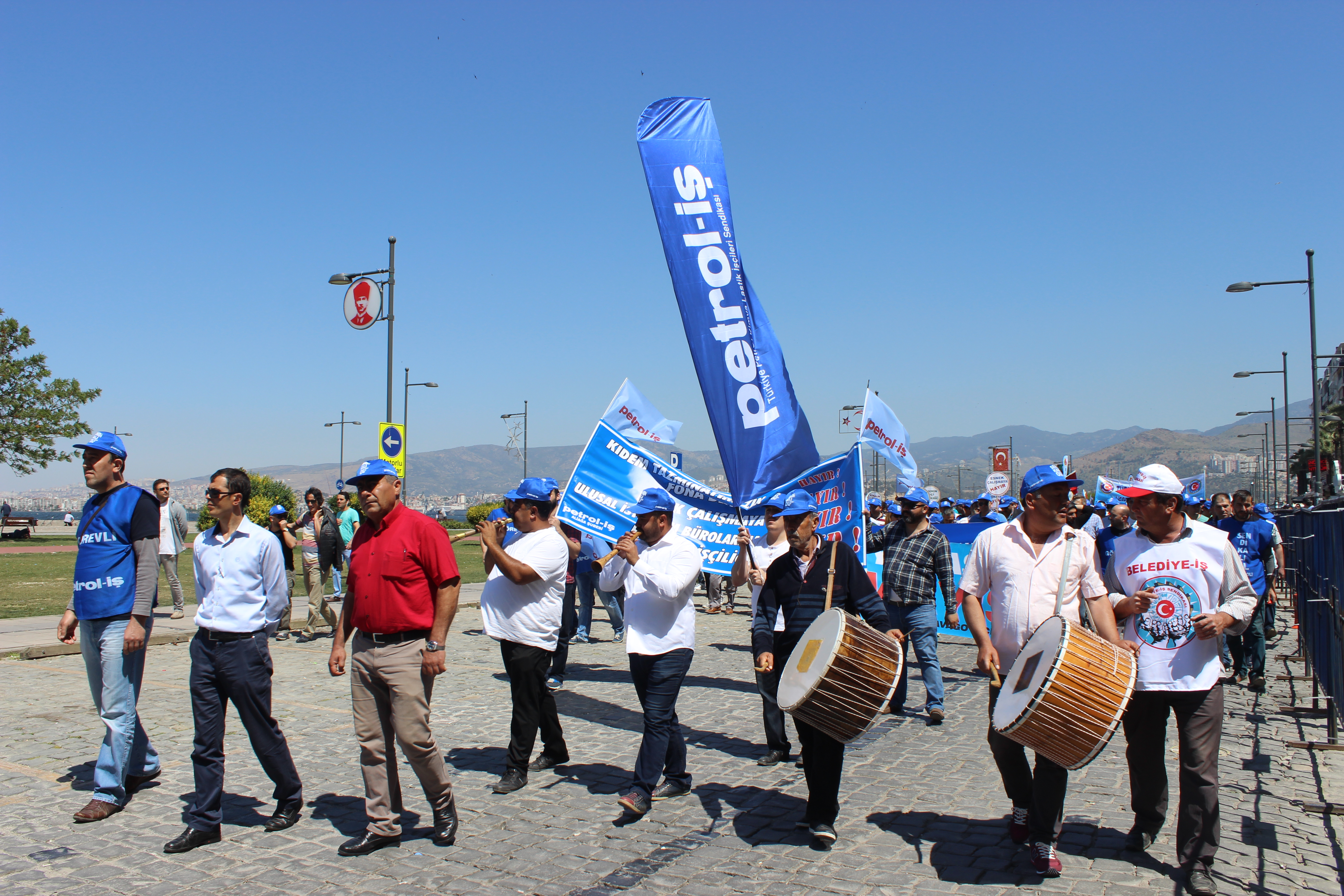 Aliağa Şubemiz işçi sınıfının Uluslararası Birlik, Mücadele ve Dayanışma Günü 1 Mayıs’ı, sabahın erken saatlerinden itibaren örgütlü olduğu işyerlerinden üyelerimizin katılımıyla halaylar eşliğinde kutlamaya başladı. Vardiyadan çıkan üyelerimiz ve Emek ve Demokrasi Platformu bileşenleriyle Şube önünde buluşarak, ‘Yaşasın 1 Mayıs”, “İşte 1 Mayıs Alanlardayız”, sloganlarıyla Aliağa Demokrasi Meydanı’na kortej eşliğinde yürüdü. Esnaf ve vatandaşın alkışlarıyla destek verdiği işçiler; “İş Ekmek Yoksa Barış da Yok”, “Direne Direne Kazanacağız”, “Kölelik Yasanı Al Başına Çal”, “Yaşasın 1 Mayıs Alanlardayız” sloganları attılar.