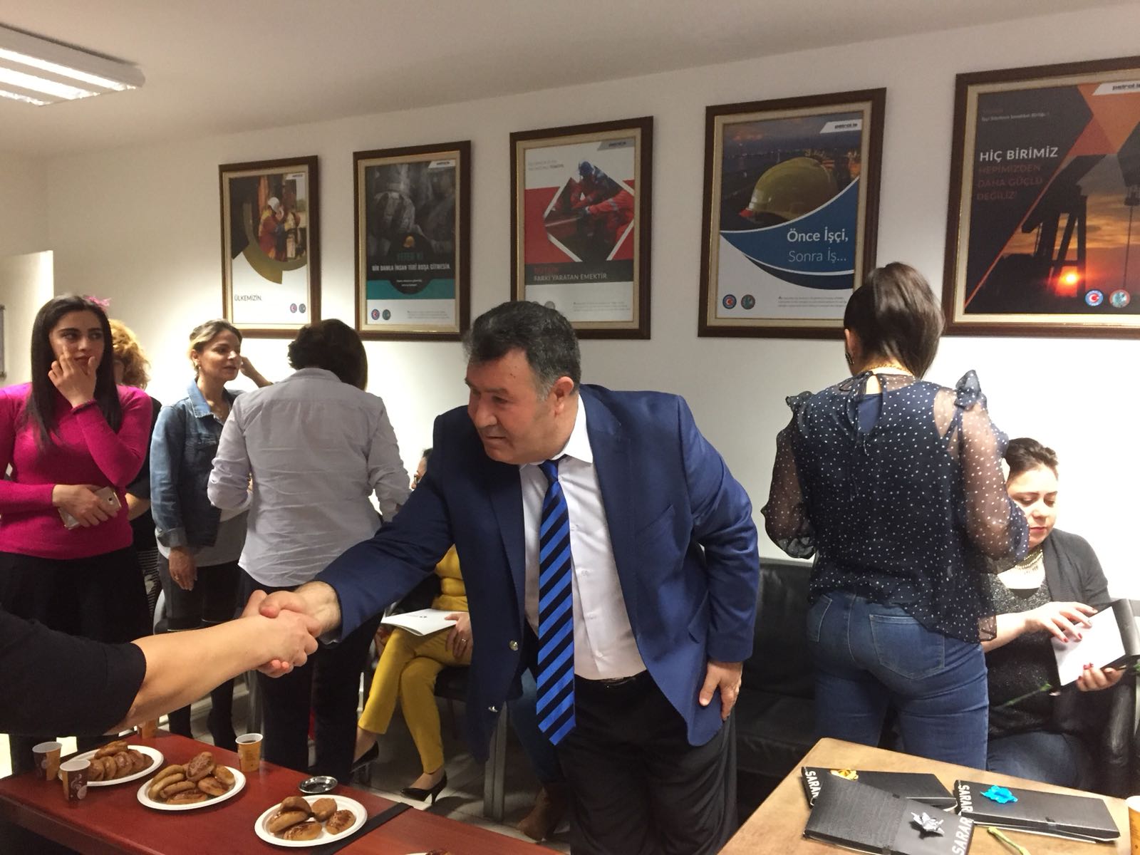 Ankara Şube Başkanımız Şuayip Gül 8 Mart Dünya Emekçi Kadın Günü Türkiye Petrolleri’nde kadın üyelerimizle bir araya gelerek kutladı.Gül kadın üyelerimize günün anlam ve önemini belirten bir konuşma gerçekleştirdi.