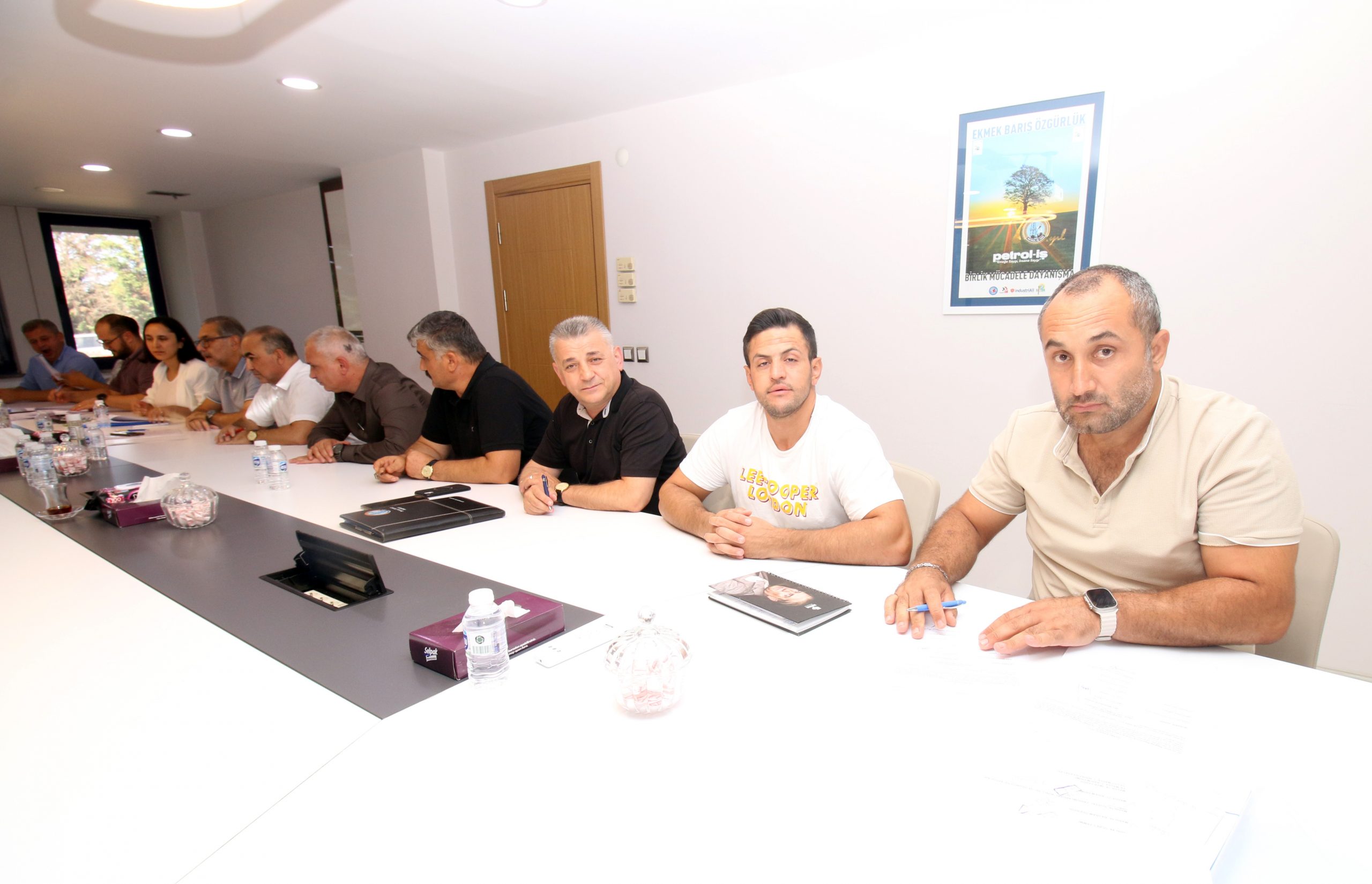 Genel Merkezimizde yapılan toplantıda Genel Mali Sekreterimiz Mehmet Kaya, Genel Örgütlenme ve Eğitim Sekreterimiz Niyazi Recepkethüda, Genel Yönetim Sekreterimiz Ali Haluk Koşar, Prof. Dr. Ahmet Selamoğlu, Bagfaş İşyeri Genel Müdürü Yardımcısı İpek Seviye Gençer Yağcı, İK Müdürü İbrahim Çağıran, Fabrika Personel Müdürü Gökmen Bayram, Bandırma Şube Başkanımız Tuncay Topuz, Başkan Yardımcılarımız Ahmet Kınay, Yalçın Karacaoğlu (Mali), TİS Uzmanımız Özgün Çelik Aygün, TİS Uzman Yardımcımız Serkan Gümüşbaş, Bagfaş İşyeri temsilcilerimiz Erdinç Yapıcı, Arif Harman yer aldı.