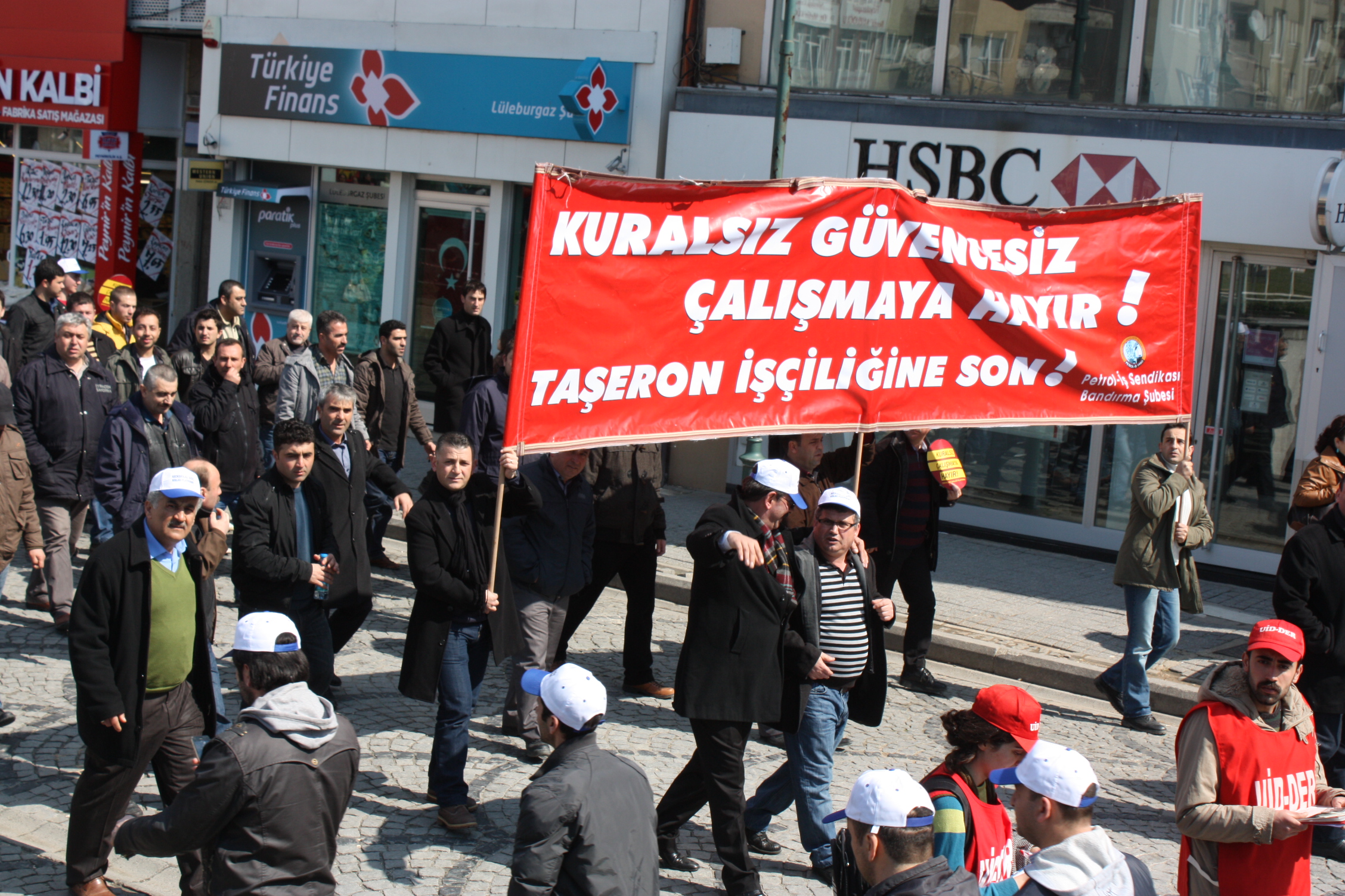 Sendikal Güç Birliği Platformu’nun 23 Mart 2013 Cumartesi günü Lüleburgaz’da gerçekleştirdiği ‘Kuralsız Güvencesiz Çalışmaya Hayır. Taşeron İşçiliğine Son’ Trakya bölge mitingi yoğun katılım ve coşkuyla gerçekleşti. Bandırma Şubemiz mitinge şube yöneticilerimiz ve üyelerimiz ile katılarak destek verdi.
