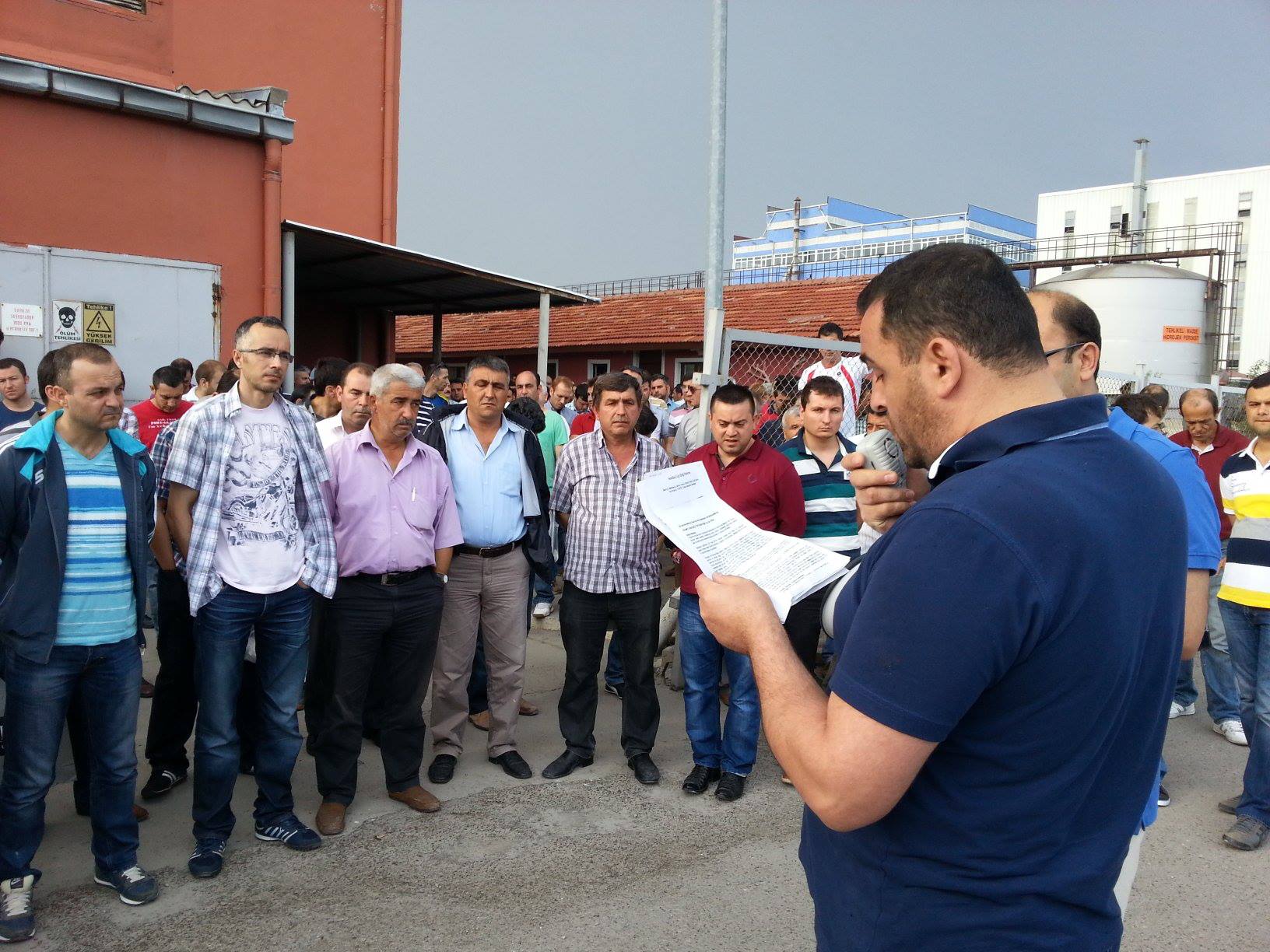 Bandırma Eti Maden İşyerinde sabah saatlerinde işe giren ve işten çıkan üyelerimizin katılımıyla Şube Başkan Yardımcımız İsmail Eryılmaz tarafından bildiri okundu.