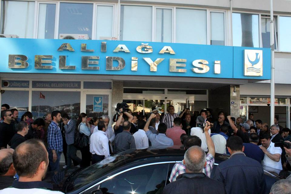 Aliağa Emek ve Demokrasi Platformu adına, önce belediye başkanı ve diğer yetkililerle bir görüşme yapan Oktay, daha sonra ortak basın açıklamasını okumaya başladı:“ Aliağa’ya yeni gelenler bilmezler ama burada “bankamatik işçi “olmakla suçladıkları arkadaşlarımız, Aliağa’nın daha iyi bir kent olması için uğraşan, tanıdığımız insanlardır. Yöneticiler daha 20 gün önce geldiler buraya, arkadaşlarımızı nasıl tanıdılar, soruyoruz. Bizce bu tasarruf tedbirleri veya çalışmayanların işten atılması meselesi değildir. Bu bir işçi kıyımıdır, emeğe saldırıdır. Bu kararı derhal gözden geçirmenizi talep ediyoruz.” dedi.