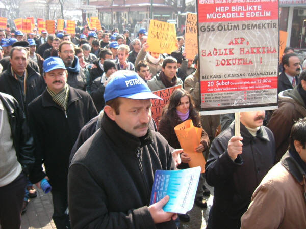 Sosyal Sigortalar ve Genel Sağlık Sigortası Yasa Tasarısı ile ilgili 20 Şubat 2008 Türkiye genelinde yapılan eylemler Bursa’da da gerçekleştirildi. Bursa’da Türk-İş, DİSK, KESK, Tabipler Odası, Diş Hekimleri Odası, Eczacı Odası, TMMOB üyelerinin kitlesel katılımıyla Yasa Tasarısı protesto edildi.