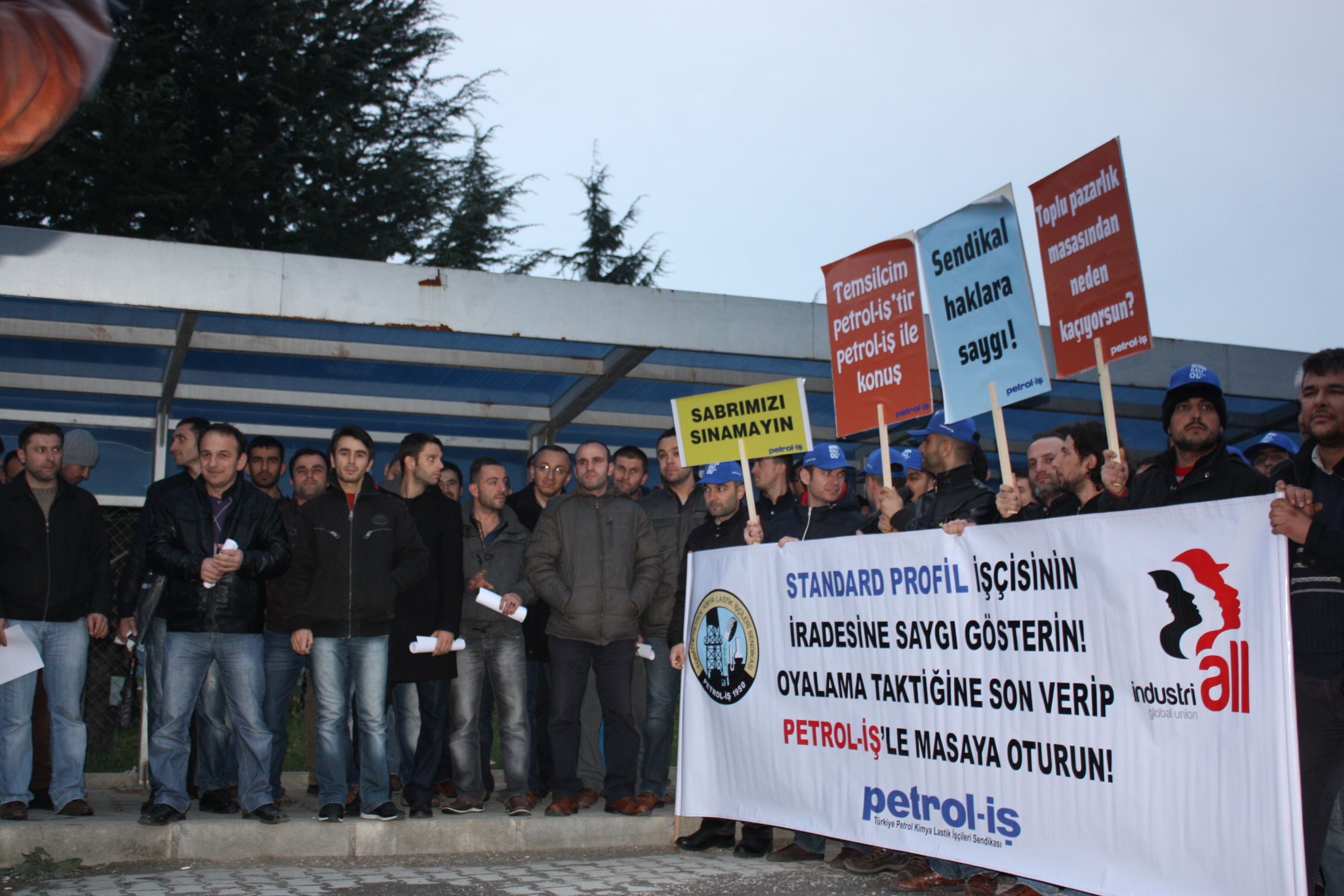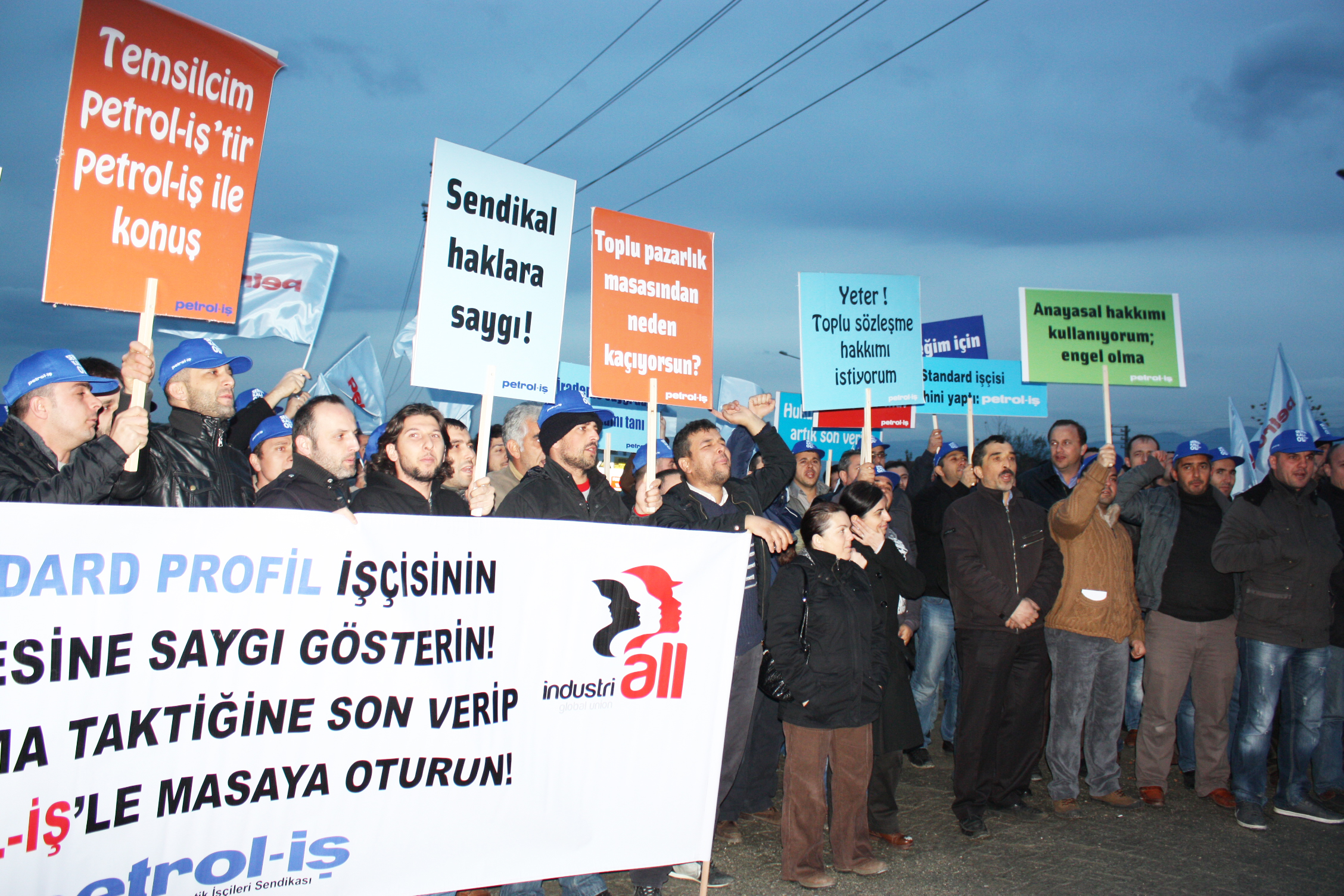 İşverene oyalama taktiklerini bir kenara bırakmaları gerektiğini bildiren Genel Başkanımız sözlerini şöyle sürdürdü: “Standard Profil yanlış yolda ilerlemeye devam ediyor. Ama artık yolun sonuna geliyoruz. İşyerinde alttan alta baskı uygulamakla, göz korkutmakla, mahkemeleri meşgul etmekle, istifa söylentilieri yaymakla, onurlu ve kararlı Standard Profil işçisini şimdiye kadar yolundan döndüremediğiniz gibi şimdiden sonra da döndüremezsiniz. Gelin toplu sözleşme masasına oturun. Şimdi sadece çağrı yapıyoruz, çünkü biz haklarımızı alarak barış içinde çalışmak istiyoruz, ama bundan sonra sadece açıklama ile yetinemeyiz. Başka eylemlikler içinde de olacağız ” dedi.