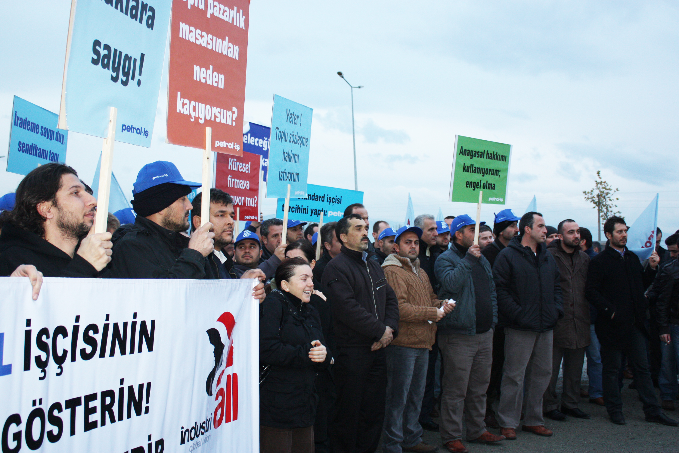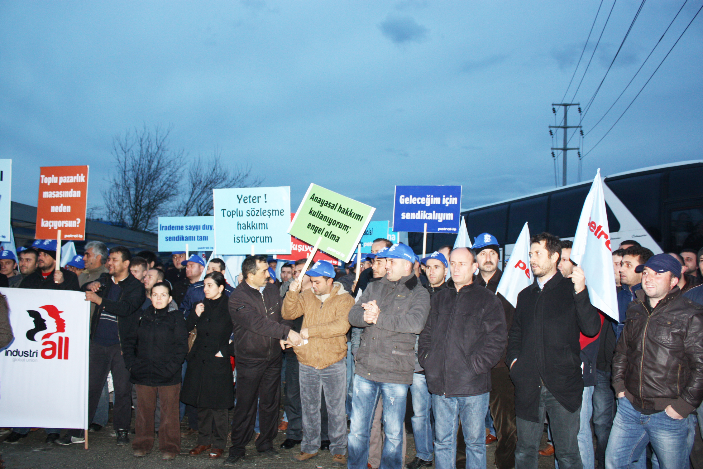 Basın açıklamasını, çalışanlar adına Petrol-İş Sendikası Genel Başkanı Mustafa Öztaşkın yaptı. Öztaşkın işverene hitaben yaptığı konuşmada, onun toplu iş sözleşmesi masasına oturması gerektiğinin altını çizdikten sonra, aksi halde, seslerini çok daha gür bir biçimde yükselteceklerini söyledi.