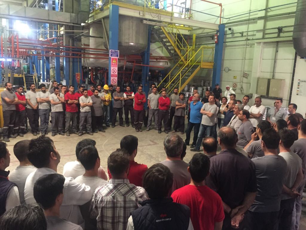 İzmir Şube Başkanımız A.Gani Gündoğdu Dyo Boya Fabrikaları San. ve Tic. A.Ş. işyerinde 1 Ocak 2017 yürürlük tarihi olan TİS sürecinin sonuna yaklaşıldığını, resmi arabulucu sürecinin de tamamlandığına yönelik üyelerimize açıklamalarda bulundu. TİS sonucunun üyelerimize ve sendikamıza hayırlı olmasını diliyoruz.