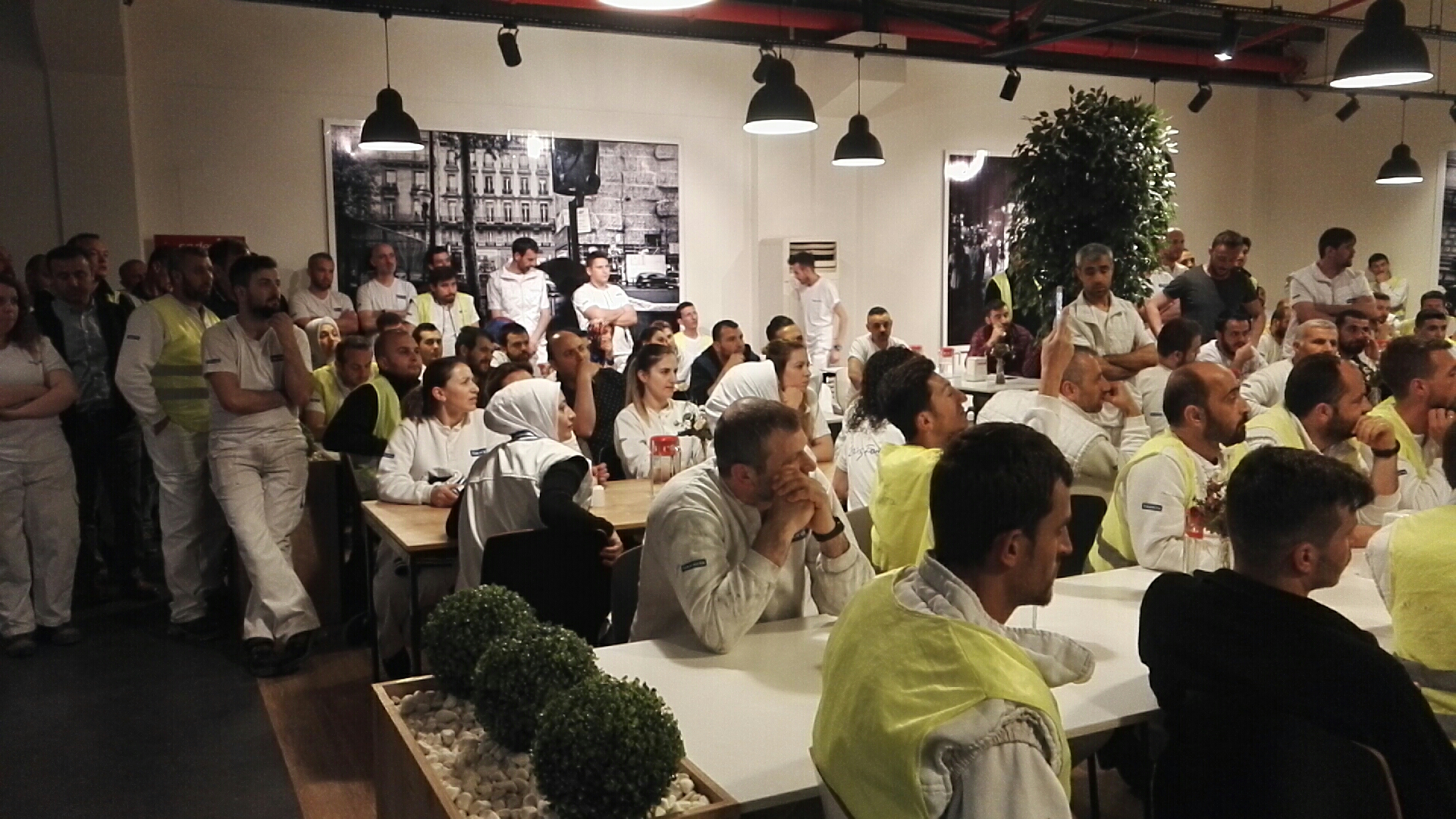 Bursa Şube Başkanımız Erhan Yakışan, Başkan Yardımcılarımız Hüseyin Gürkaş, Ersin Birgül ve Faurecia Polifleks Otomotiv A.Ş. işyeri temsilcileri ile birlikte Faurecia işyerine giderek üyelerimize imzalanan toplu iş sözleşmesi ile ilgili açıklamalarda bulundu. Bursa Şube Başkanımız Erhan Yakışan imzalanan sözleşmenin üyelerimize hayırlı olması dileklerinde bulundu.