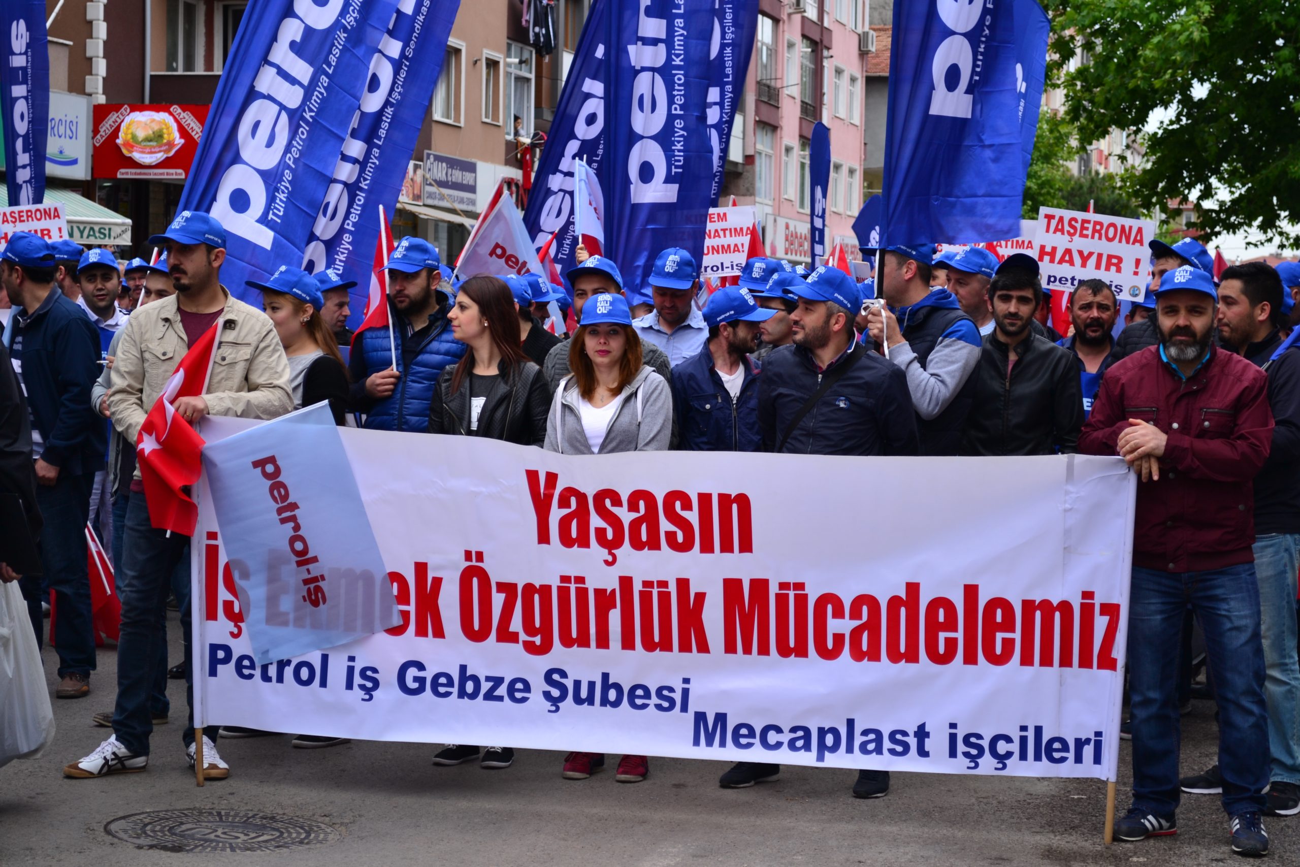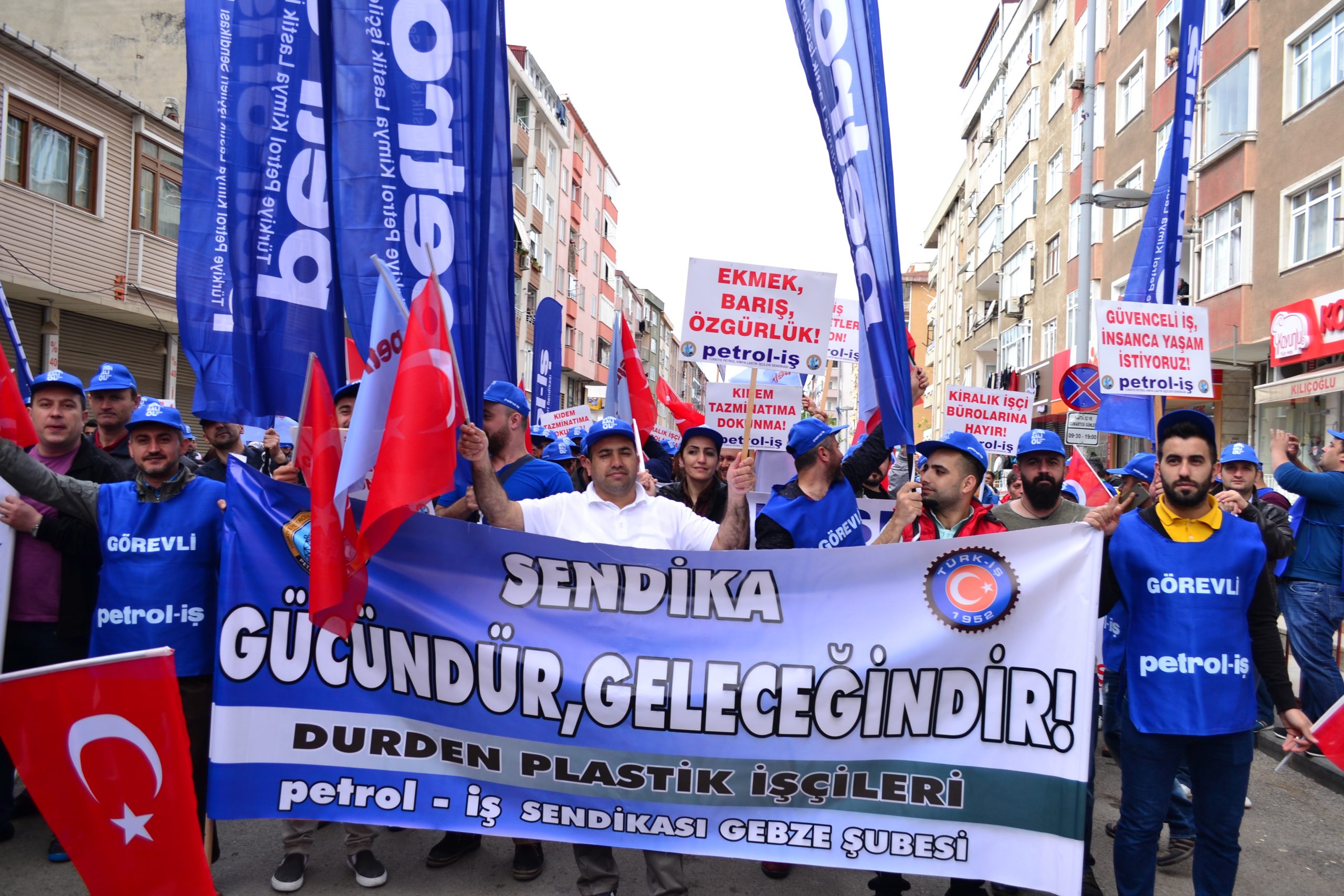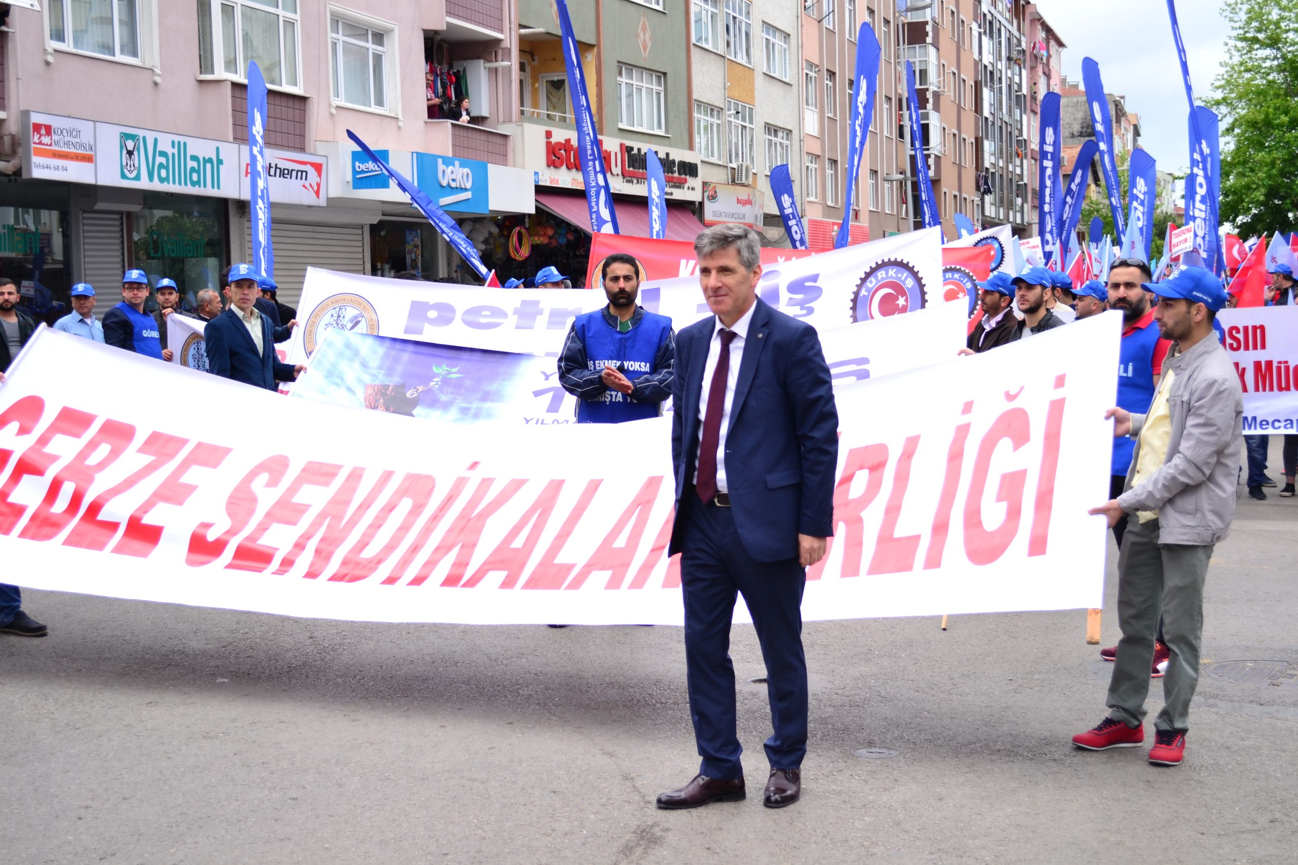 Gebze Şubemiz işçi sınıfının birlik, mücadele ve dayanışma günü olan 1 Mayıs’ı binlerce işçi ve emekçinin katılımıyla Gebze’de kutladı. Şehit Numan Dede caddesinde bir araya gelen üyelerimiz saat 10:30’dan itibaren yürüyüşe geçti. Sendikalar Birliği Dönem Sözcüsü ve Petrol-İş Sendikası Gebze Şube Başkanı Süleyman Akyüz miting alanında konuşma yaptı. Akyüz yaptığı konuşmada kıdem tazminatı, kiralık işçilik ve özel istihdam büroları, taşeronlaşma, iş kazaları ve cinayetleri, güvencesizleştirme, sefalet ücreti ve sendikal hak ihlallerine karşı, vergi oranları ve dilimlerinin adaletsiz dağılımı, laiklik ve kadın cinayetlerine değindi. Çirkin olayların yaşanmadığı, sendika üyelerimizinde yoğun katılım sağladığı 1 Mayıs etkinliği coşkulu bir şekilde kutlandı.