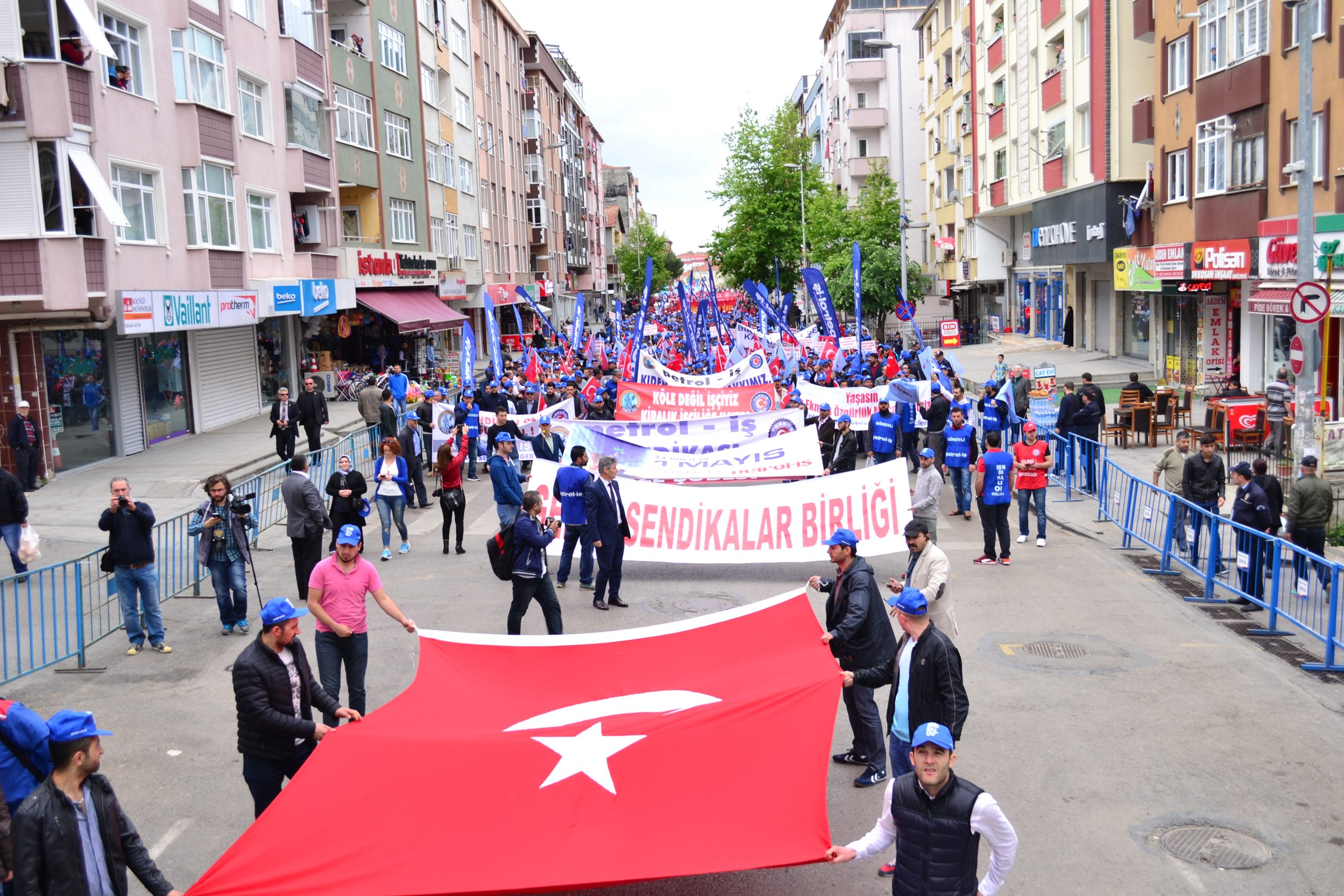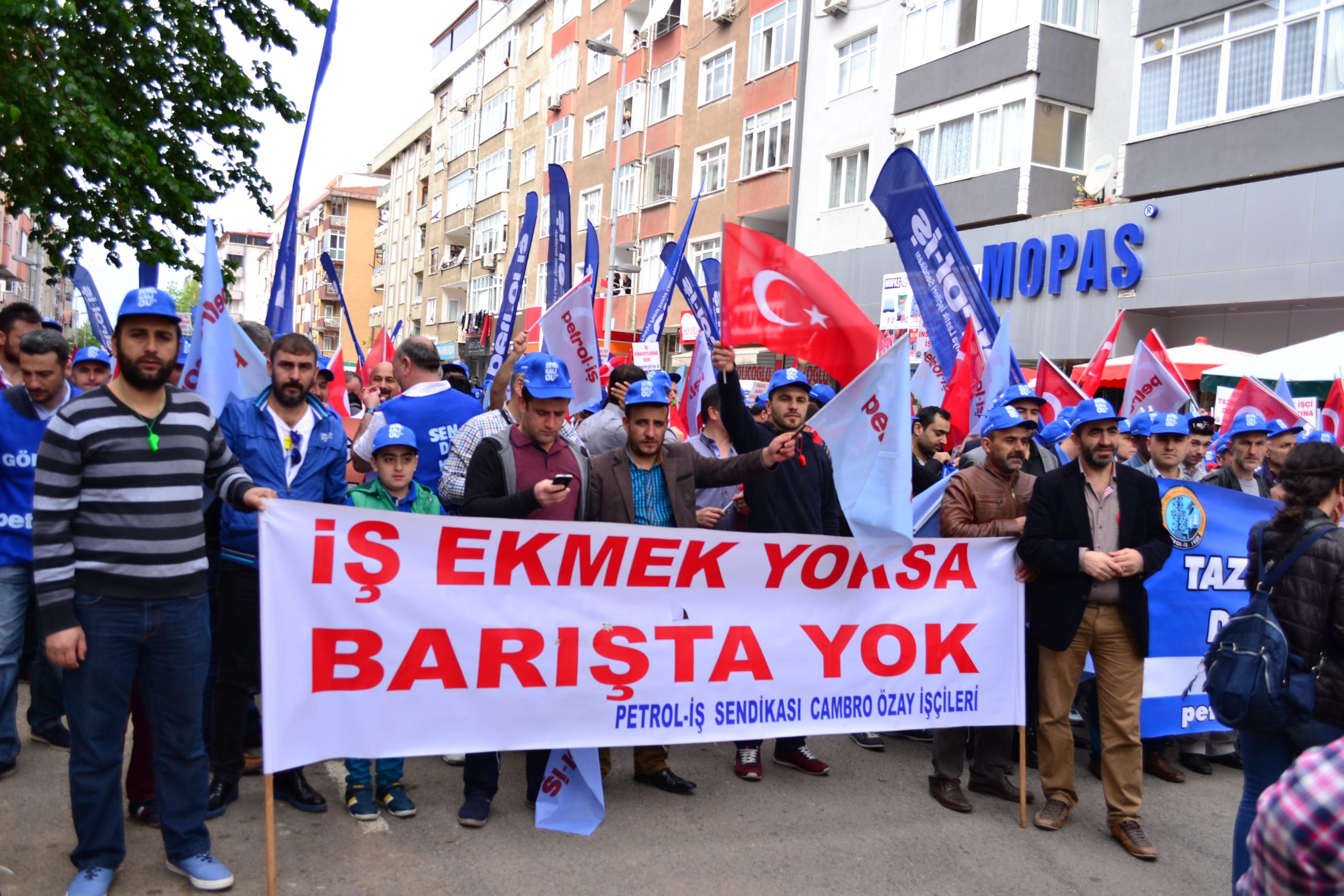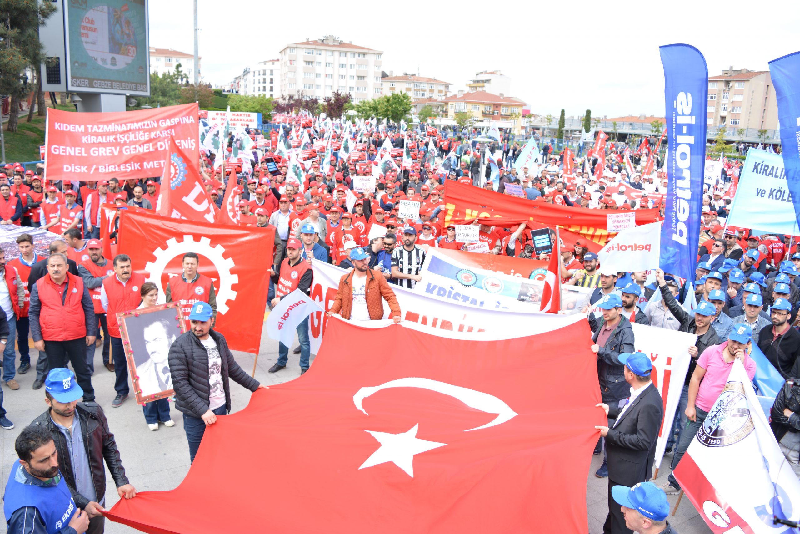 Gebze Şubemiz işçi sınıfının birlik, mücadele ve dayanışma günü olan 1 Mayıs’ı binlerce işçi ve emekçinin katılımıyla Gebze’de kutladı. Şehit Numan Dede caddesinde bir araya gelen üyelerimiz saat 10:30’dan itibaren yürüyüşe geçti. Sendikalar Birliği Dönem Sözcüsü ve Petrol-İş Sendikası Gebze Şube Başkanı Süleyman Akyüz miting alanında konuşma yaptı. Akyüz yaptığı konuşmada kıdem tazminatı, kiralık işçilik ve özel istihdam büroları, taşeronlaşma, iş kazaları ve cinayetleri, güvencesizleştirme, sefalet ücreti ve sendikal hak ihlallerine karşı, vergi oranları ve dilimlerinin adaletsiz dağılımı, laiklik ve kadın cinayetlerine değindi. Çirkin olayların yaşanmadığı, sendika üyelerimizinde yoğun katılım sağladığı 1 Mayıs etkinliği coşkulu bir şekilde kutlandı.
