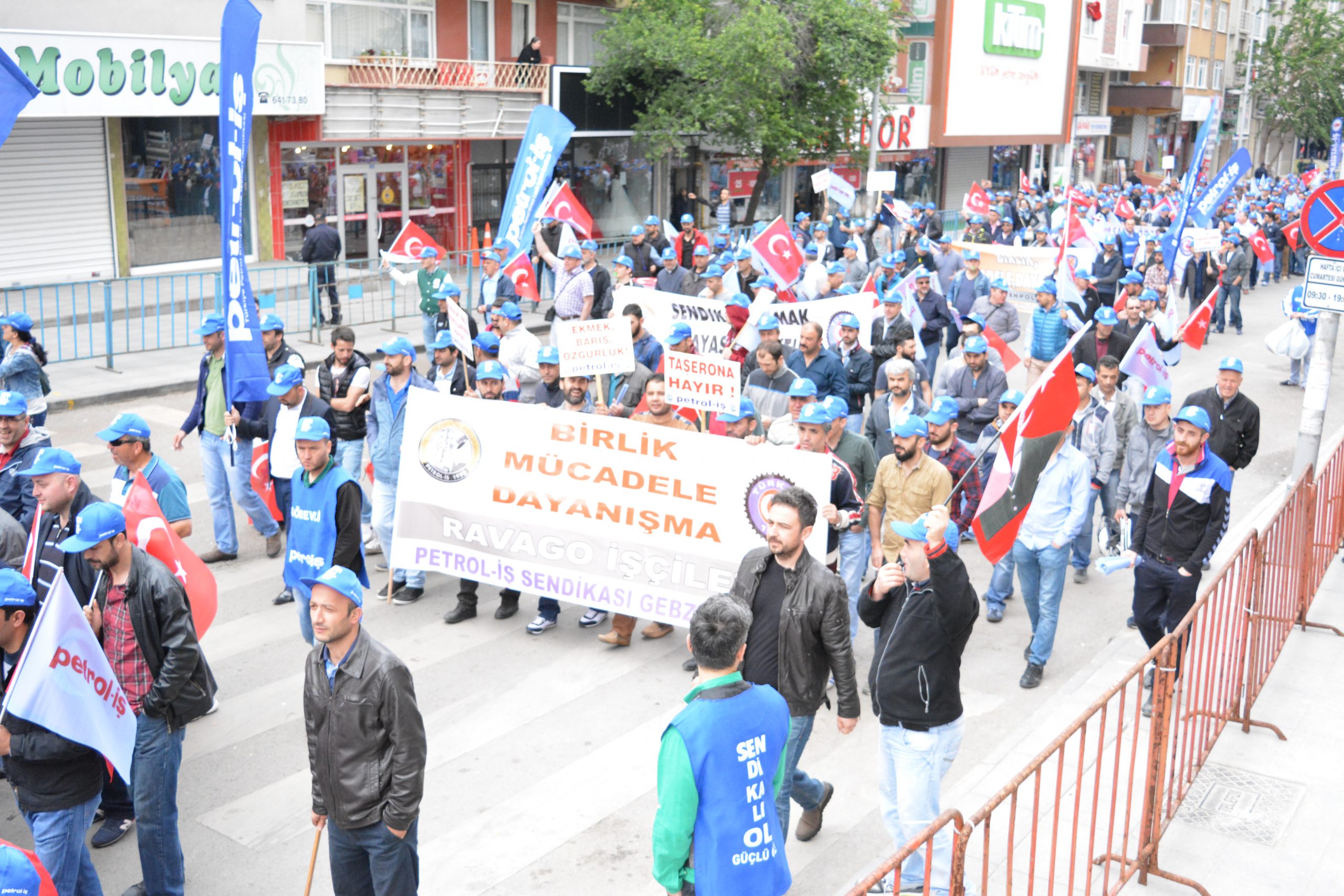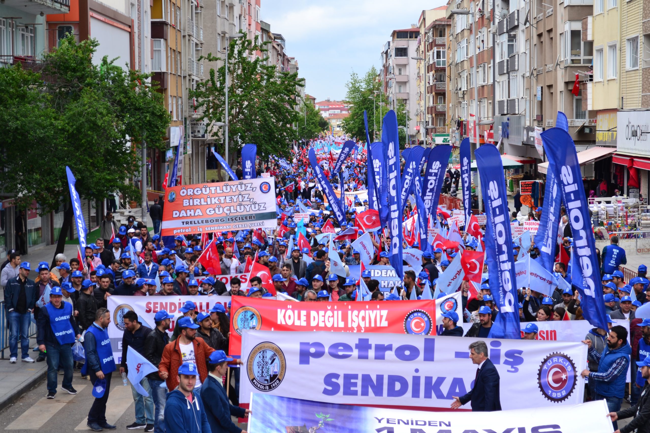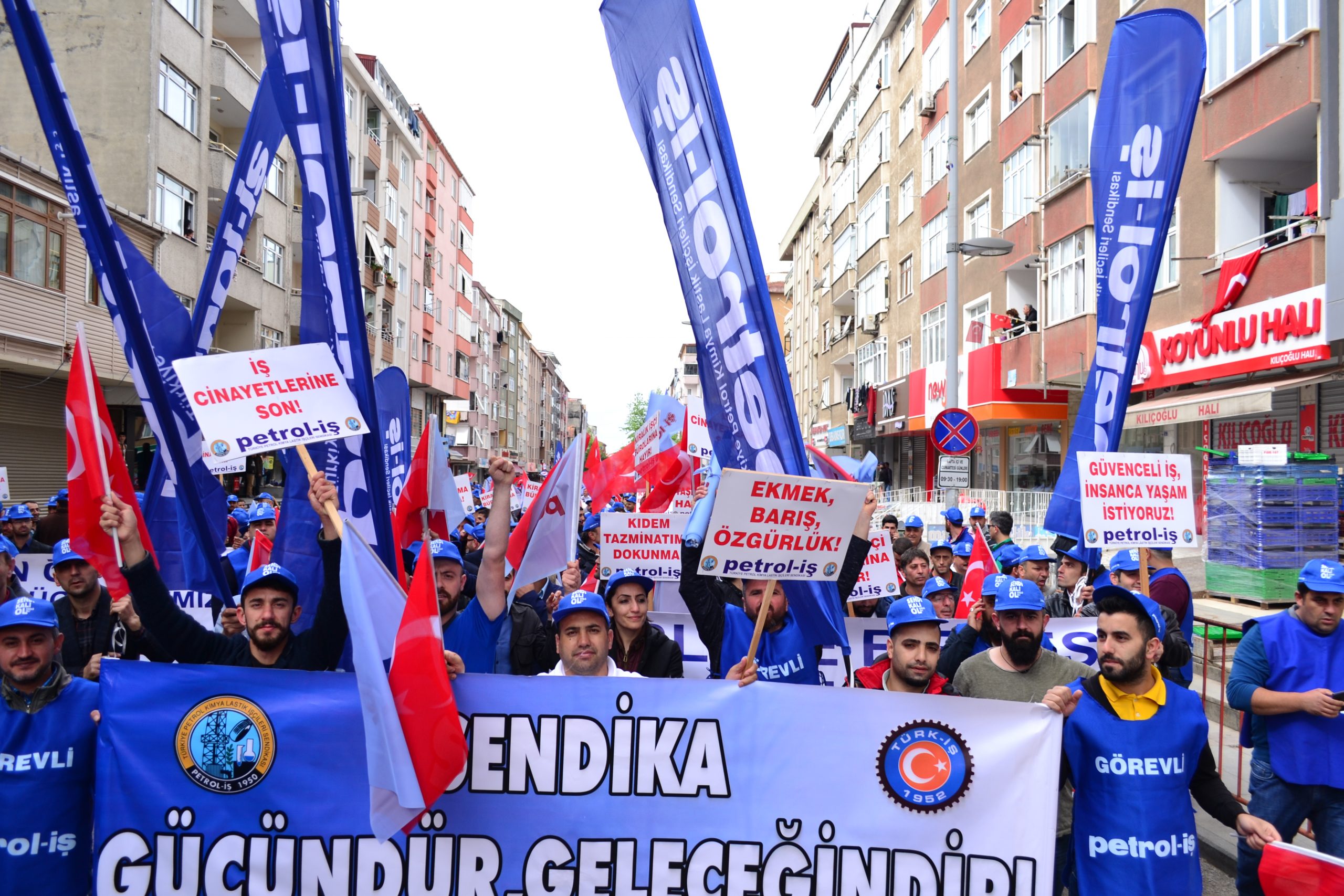 Gebze Şubemiz işçi sınıfının birlik, mücadele ve dayanışma günü olan 1 Mayıs’ı binlerce işçi ve emekçinin katılımıyla Gebze’de kutladı. Şehit Numan Dede caddesinde bir araya gelen üyelerimiz saat 10:30’dan itibaren yürüyüşe geçti. Sendikalar Birliği Dönem Sözcüsü ve Petrol-İş Sendikası Gebze Şube Başkanı Süleyman Akyüz miting alanında konuşma yaptı. Akyüz yaptığı konuşmada  kıdem tazminatı, kiralık işçilik ve özel istihdam büroları, taşeronlaşma, iş kazaları ve cinayetleri, güvencesizleştirme, sefalet ücreti ve sendikal hak ihlallerine karşı, vergi oranları ve dilimlerinin adaletsiz dağılımı, laiklik ve kadın cinayetlerine değindi. Çirkin olayların yaşanmadığı, sendika üyelerimizinde yoğun katılım sağladığı 1 Mayıs etkinliği coşkulu bir şekilde kutlandı.