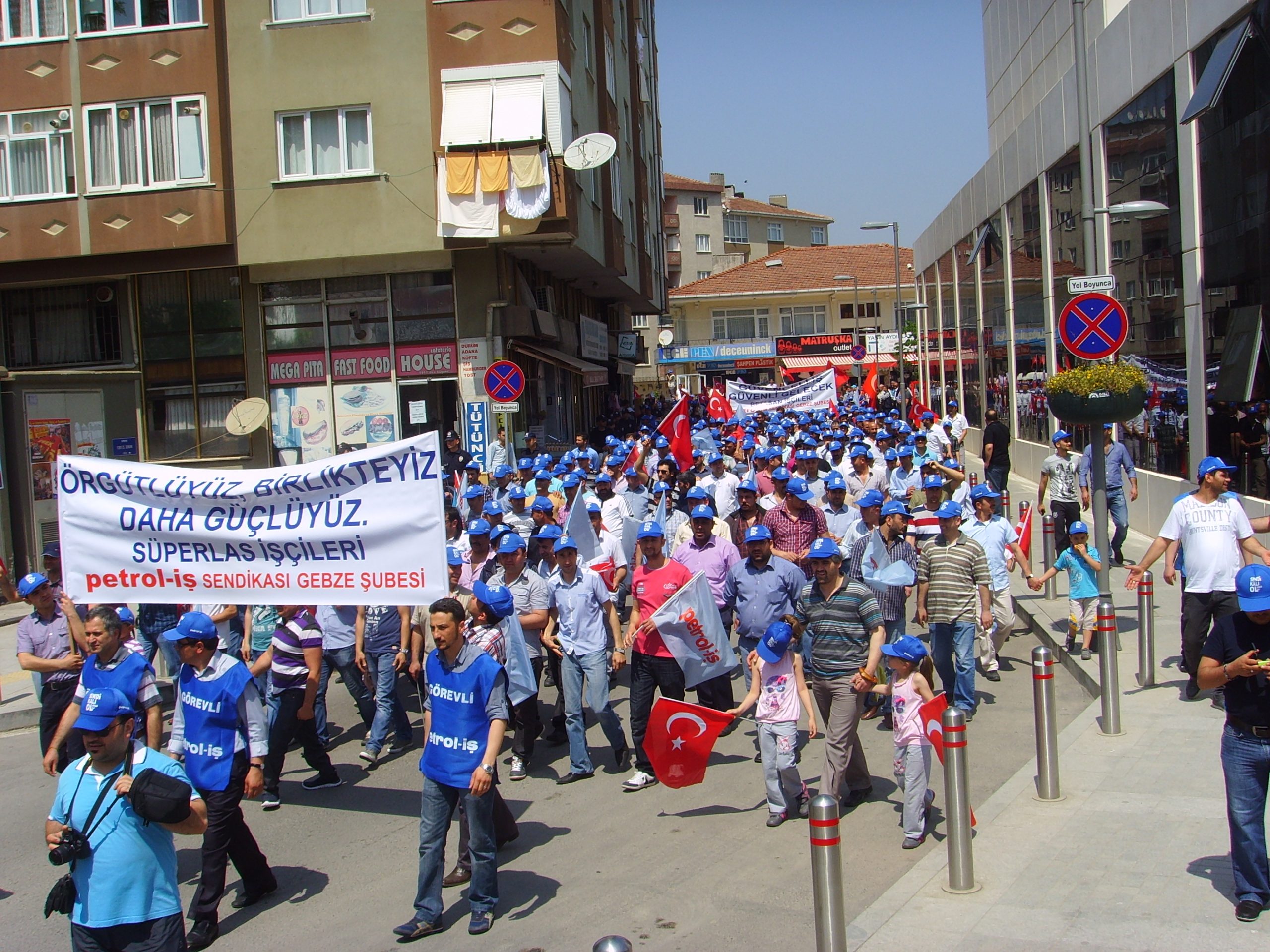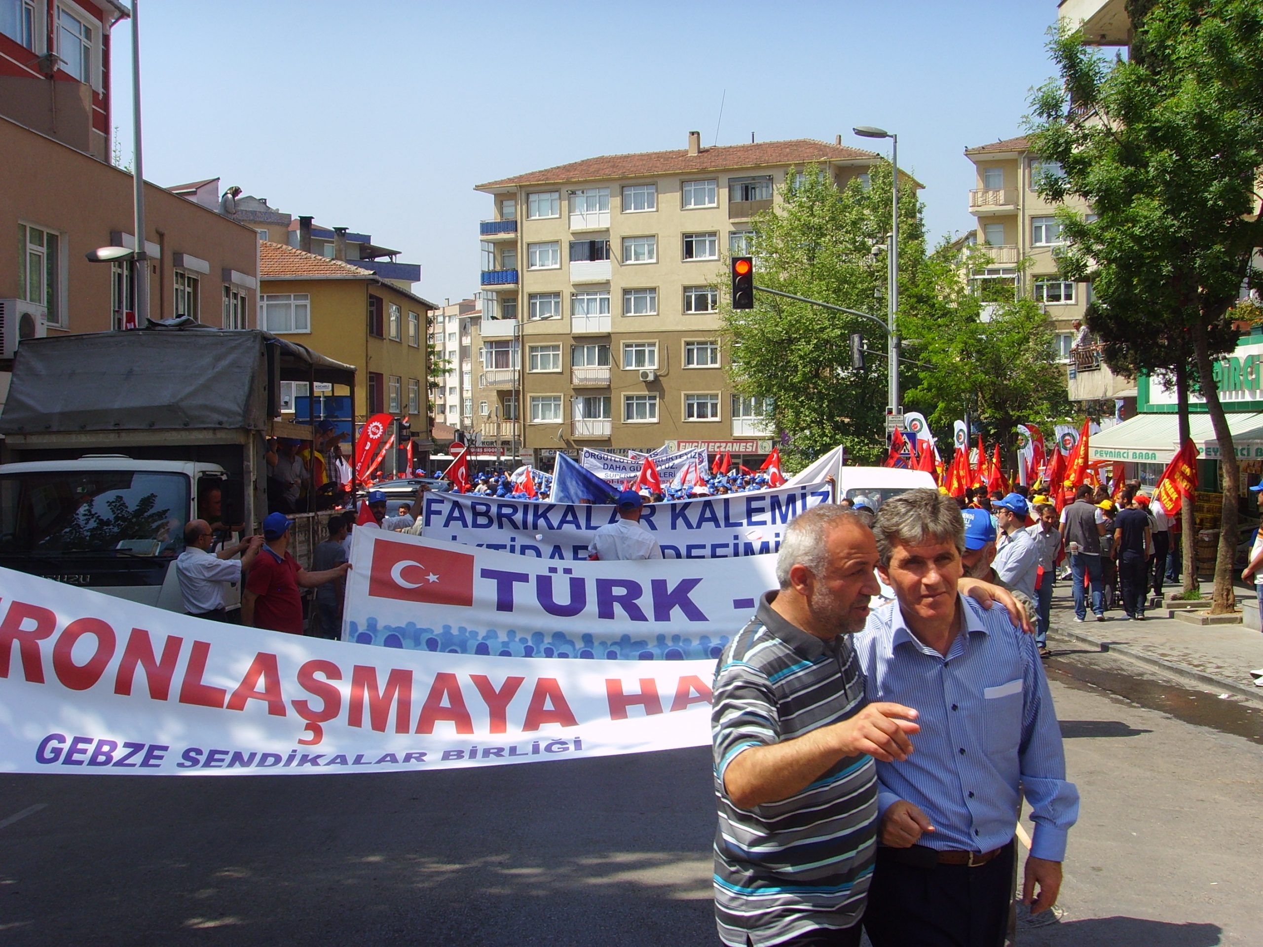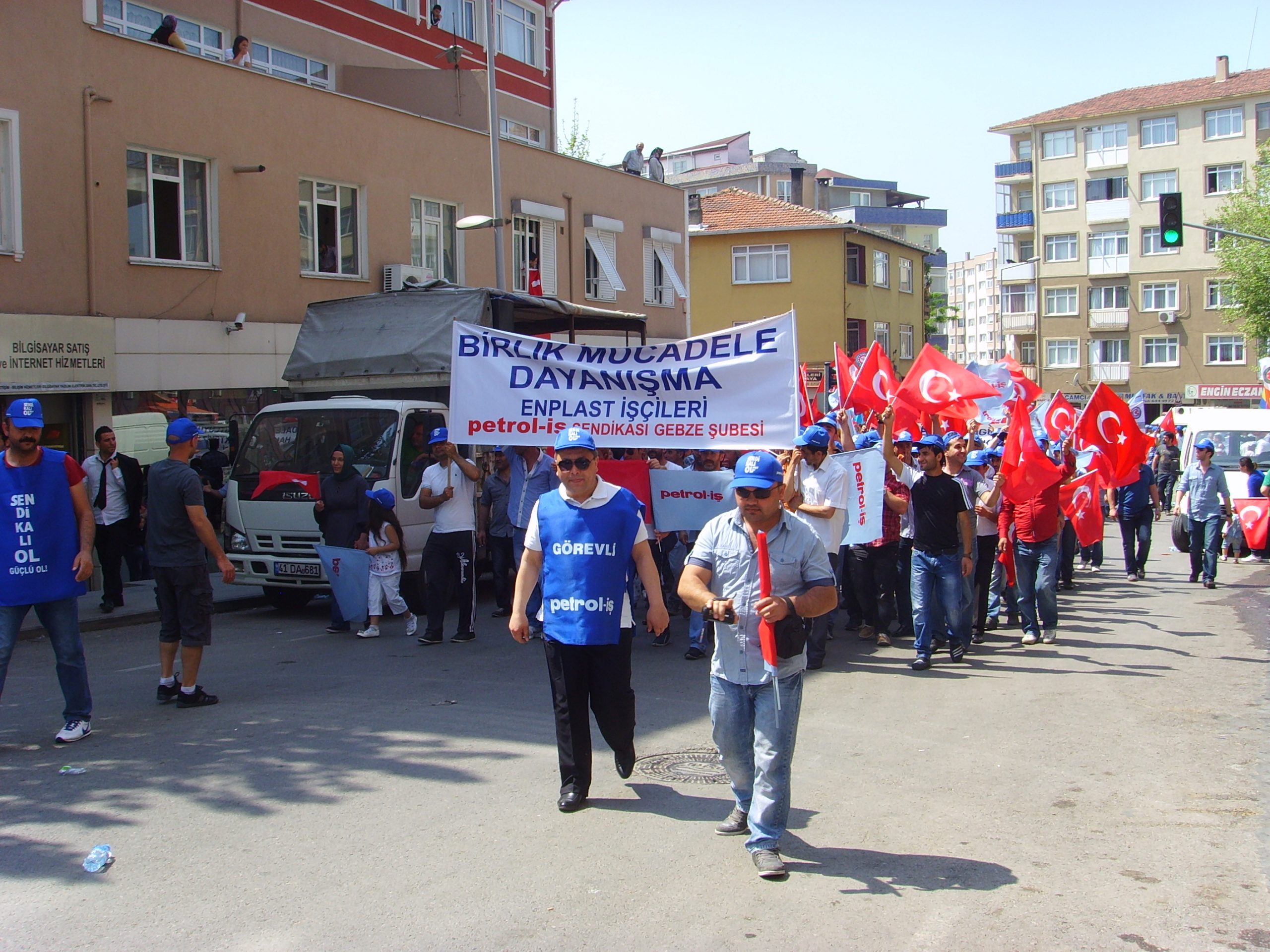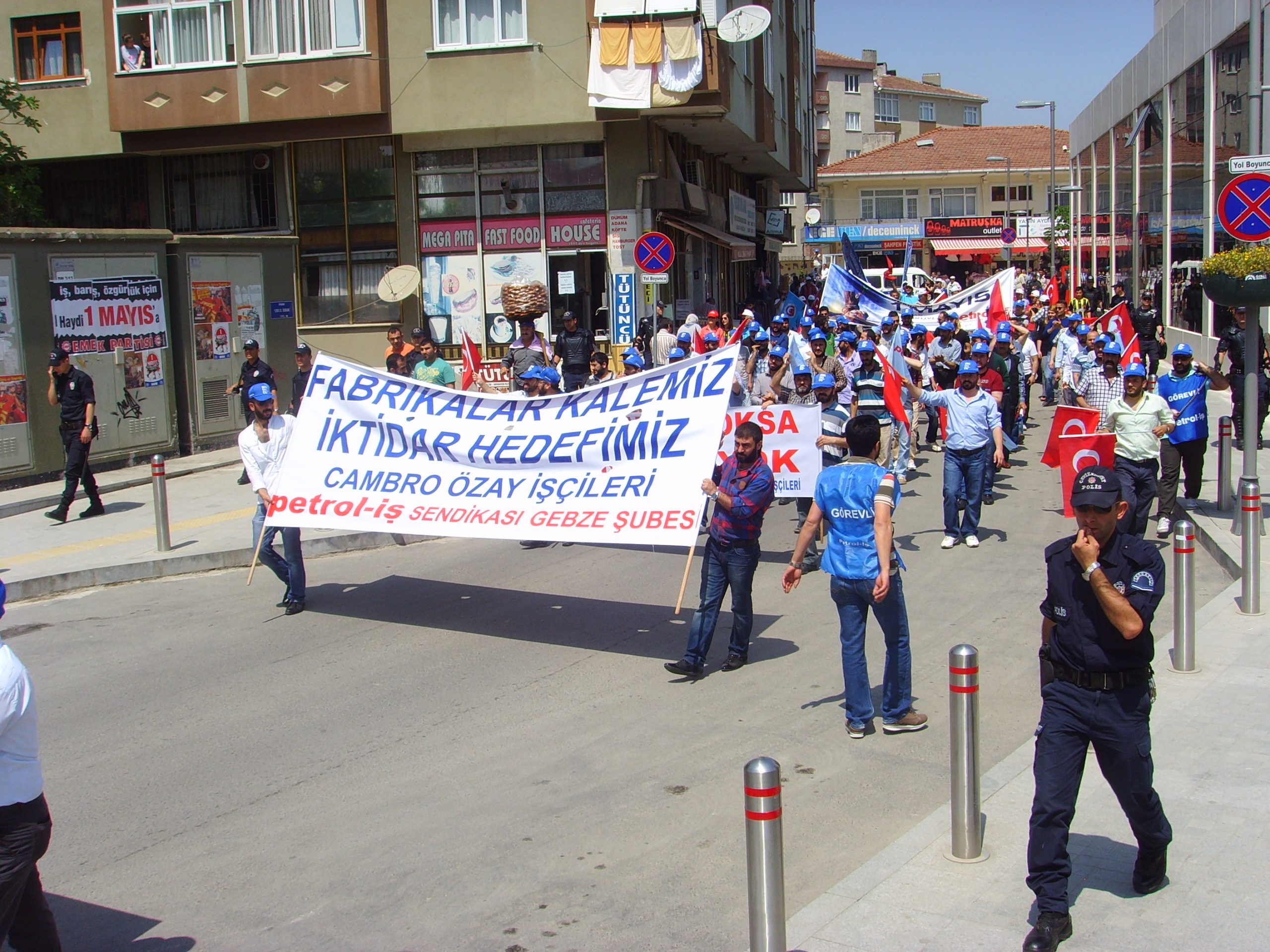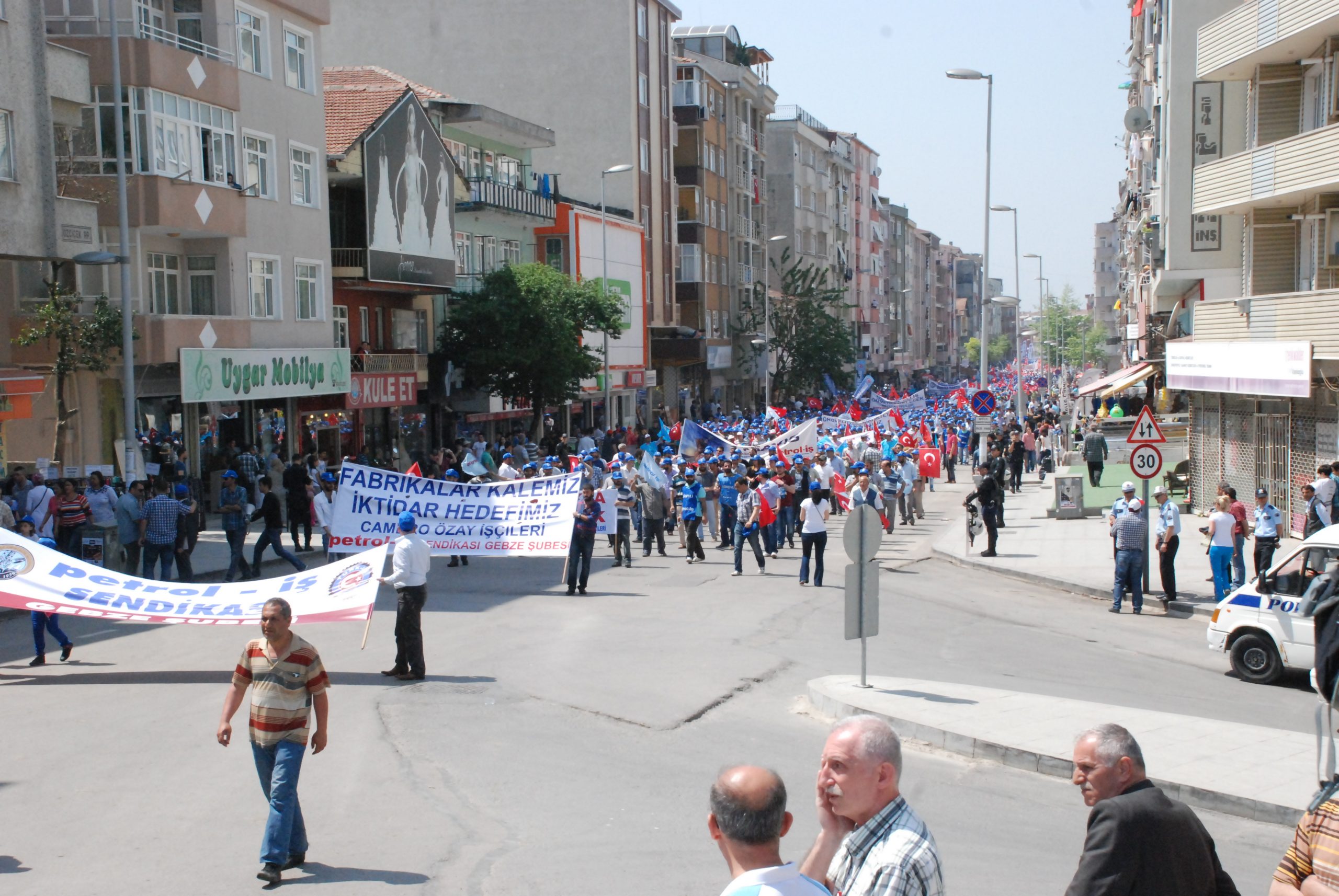 Gebze’ deki 1 Mayıs kutlamasında  başta Petrol- İş, Türk- Metal ve Birleşik Metal-İş’in  yığınsal katılımı dikkatleri çekerken Tekgıda-İş  ve Tez- Koop İş sendikaları da üyeleriyle göz doldurdu. Petrol-İş Gebze Şubesi’nde kadın işçilerin katılımı da çok iyiydi.