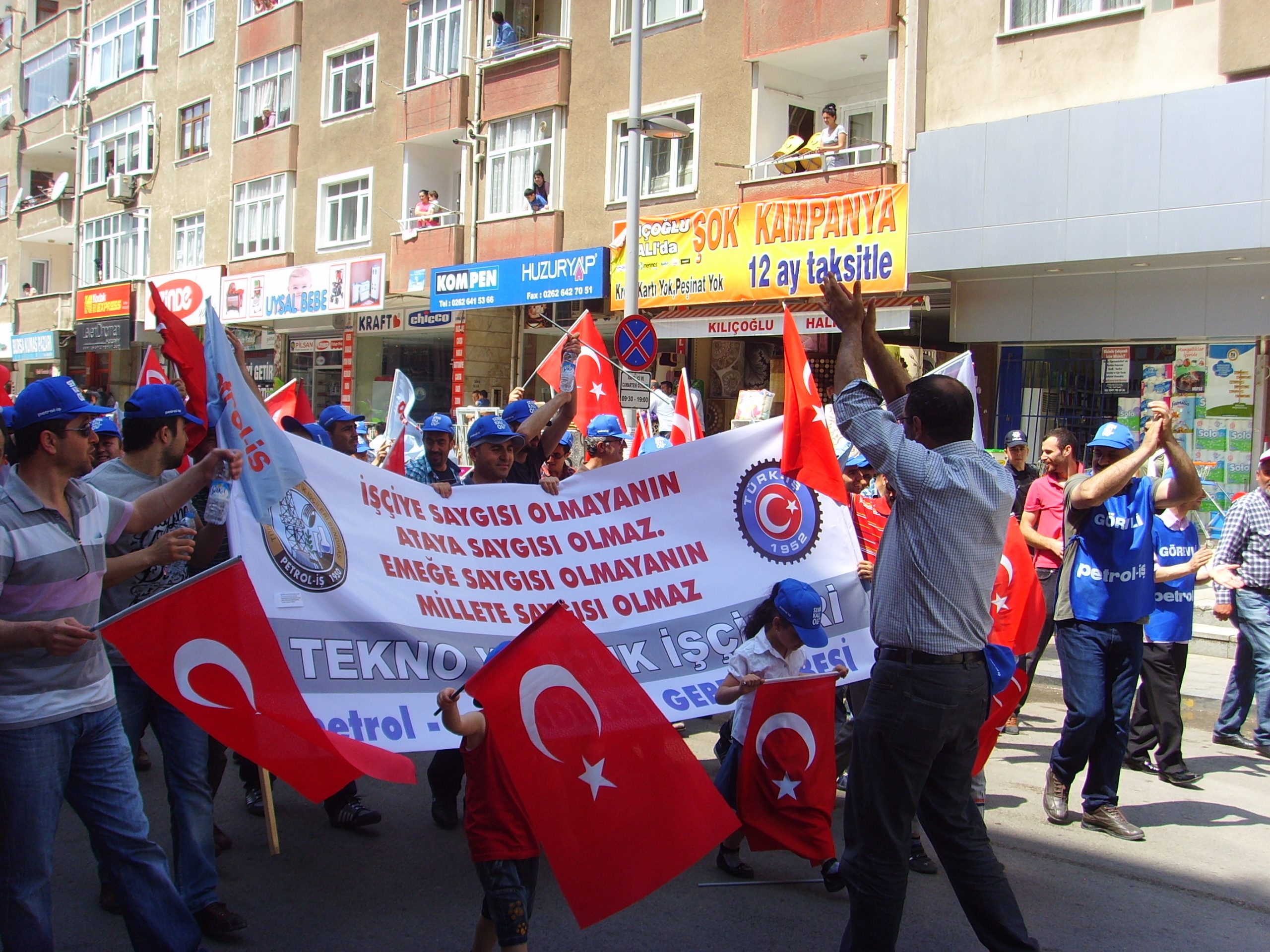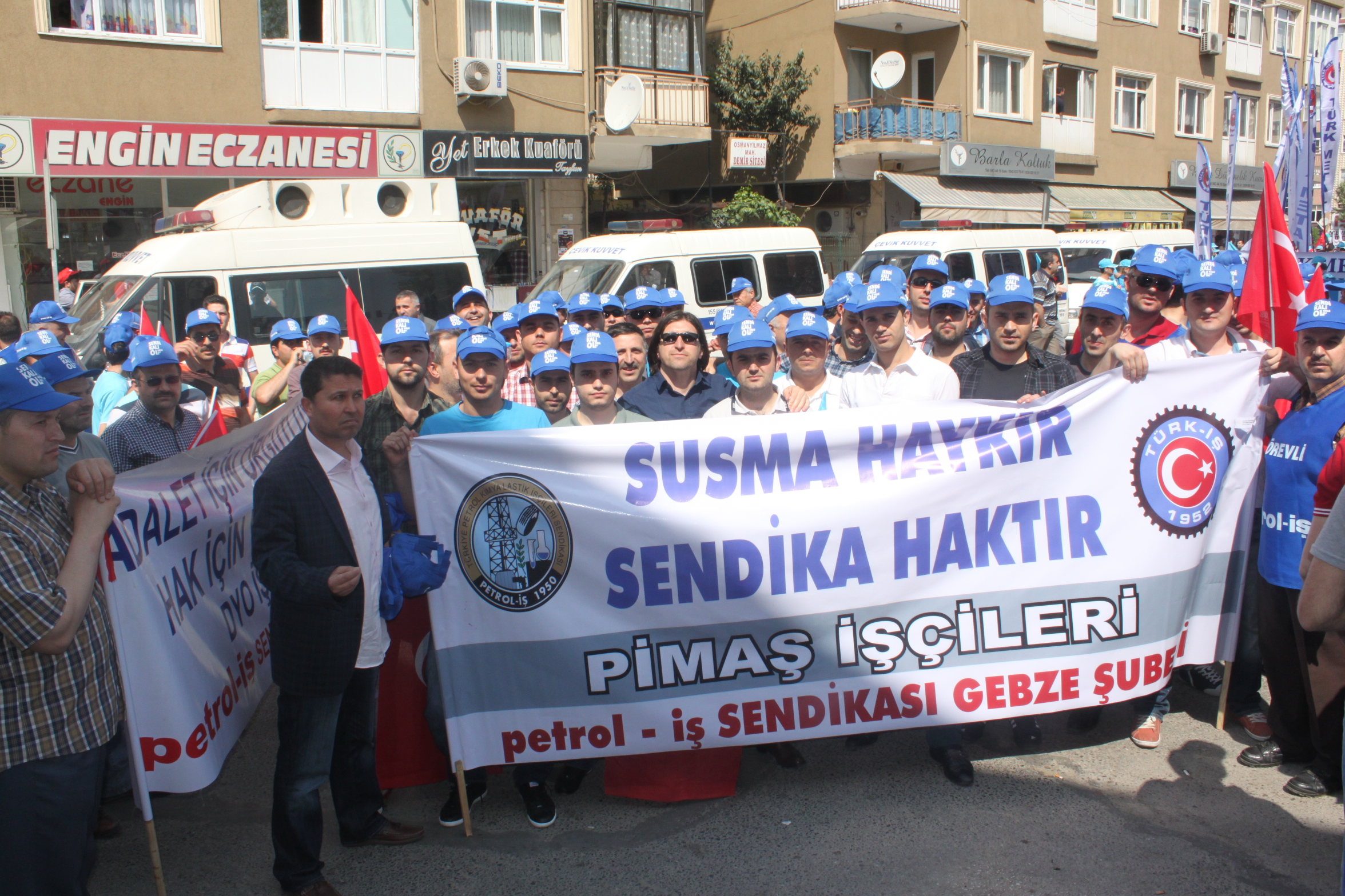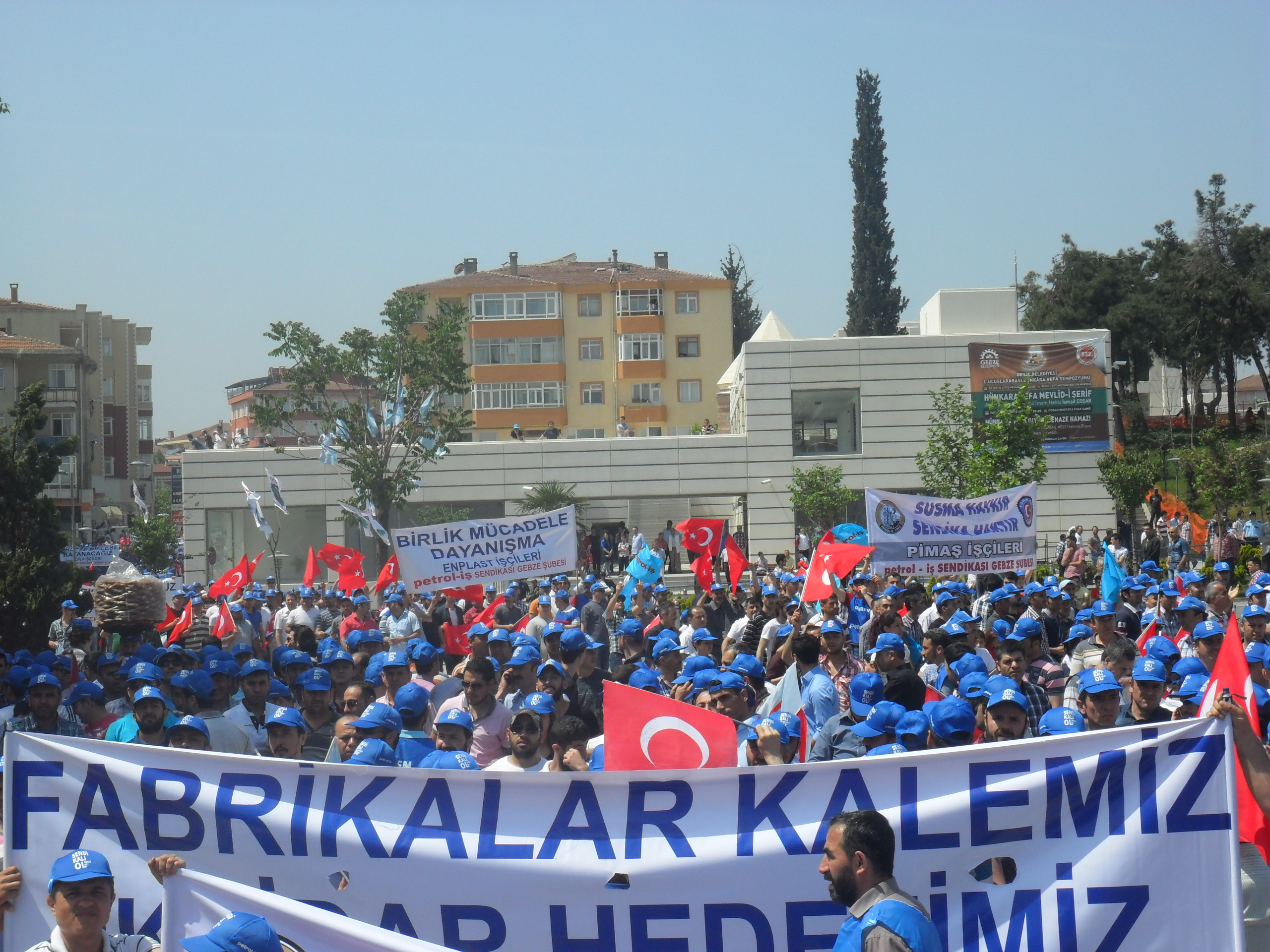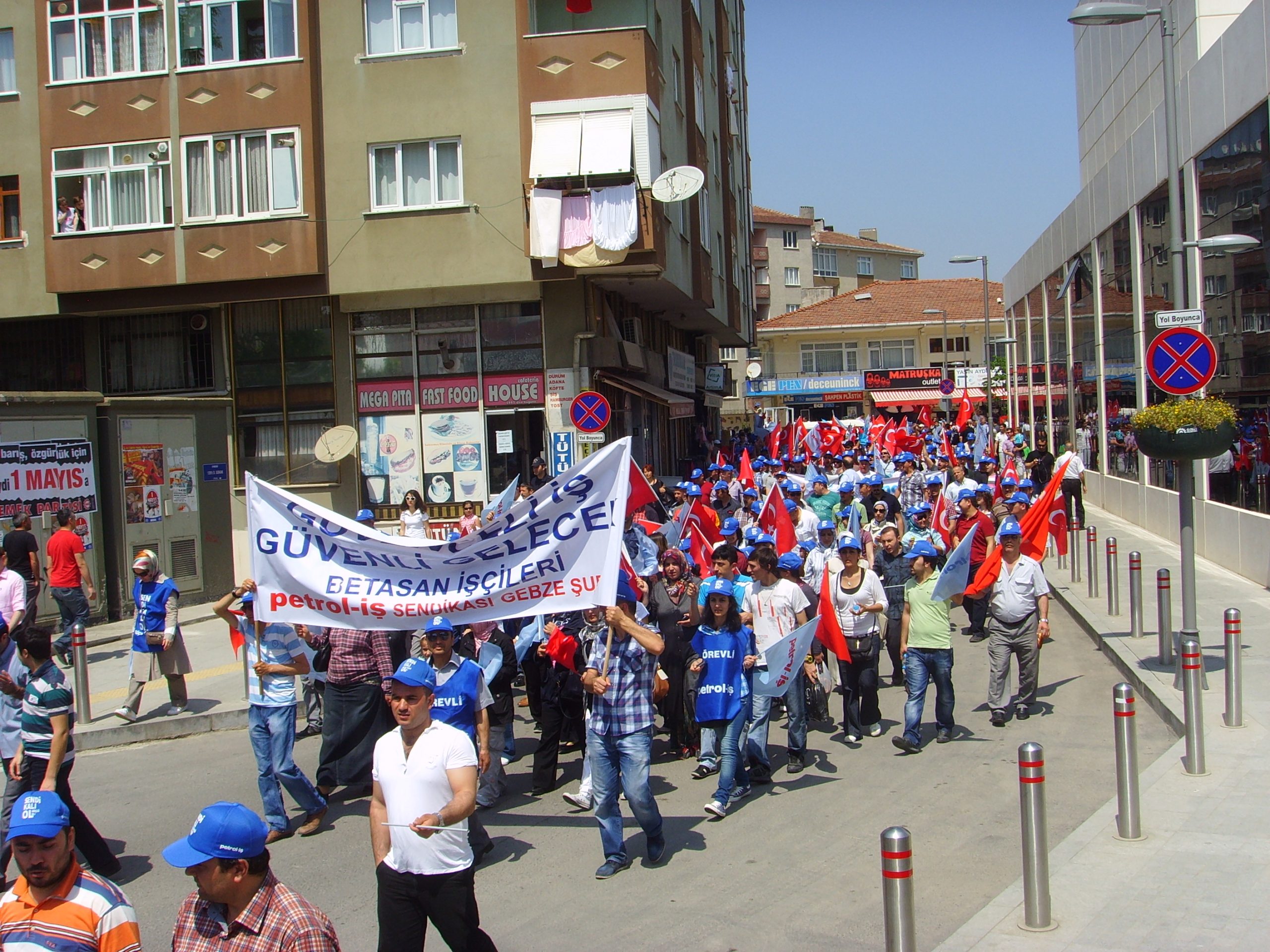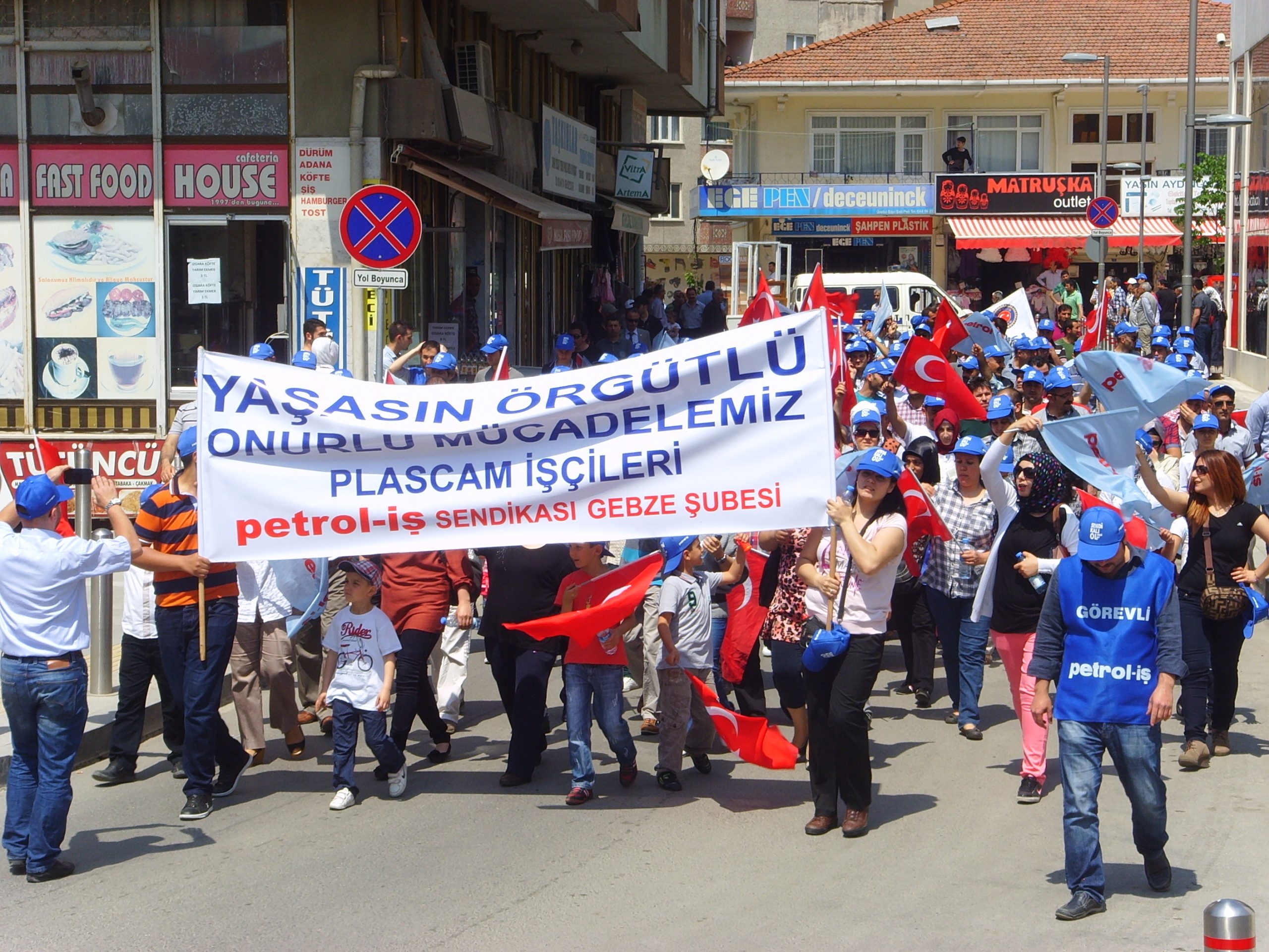 Gebze’ deki 1 Mayıs kutlamasında  başta Petrol- İş, Türk- Metal ve Birleşik Metal-İş’in  yığınsal katılımı dikkatleri çekerken Tekgıda-İş  ve Tez- Koop İş sendikaları da üyeleriyle göz doldurdu. Petrol-İş Gebze Şubesi’nde kadın işçilerin katılımı da çok iyiydi.