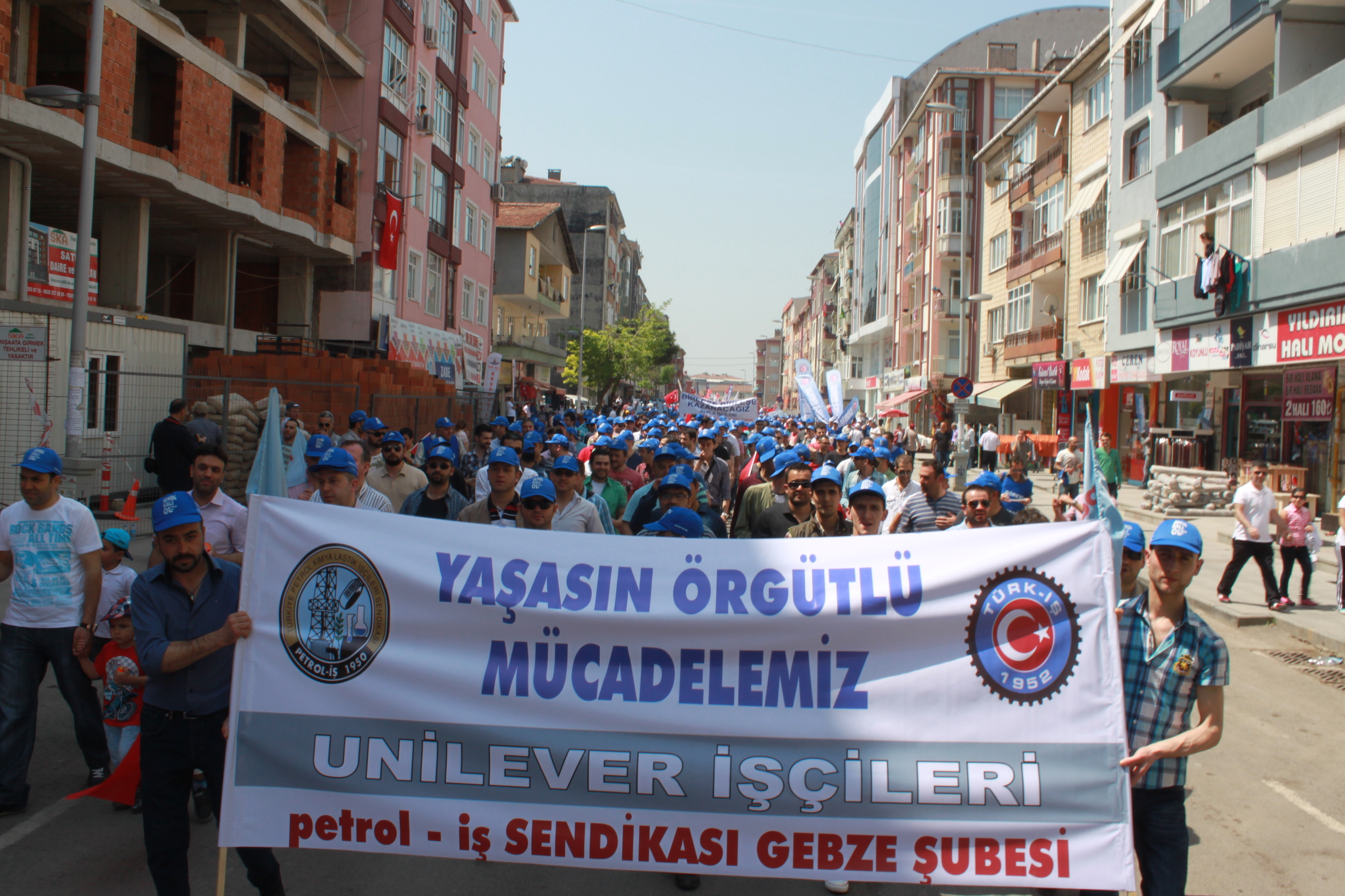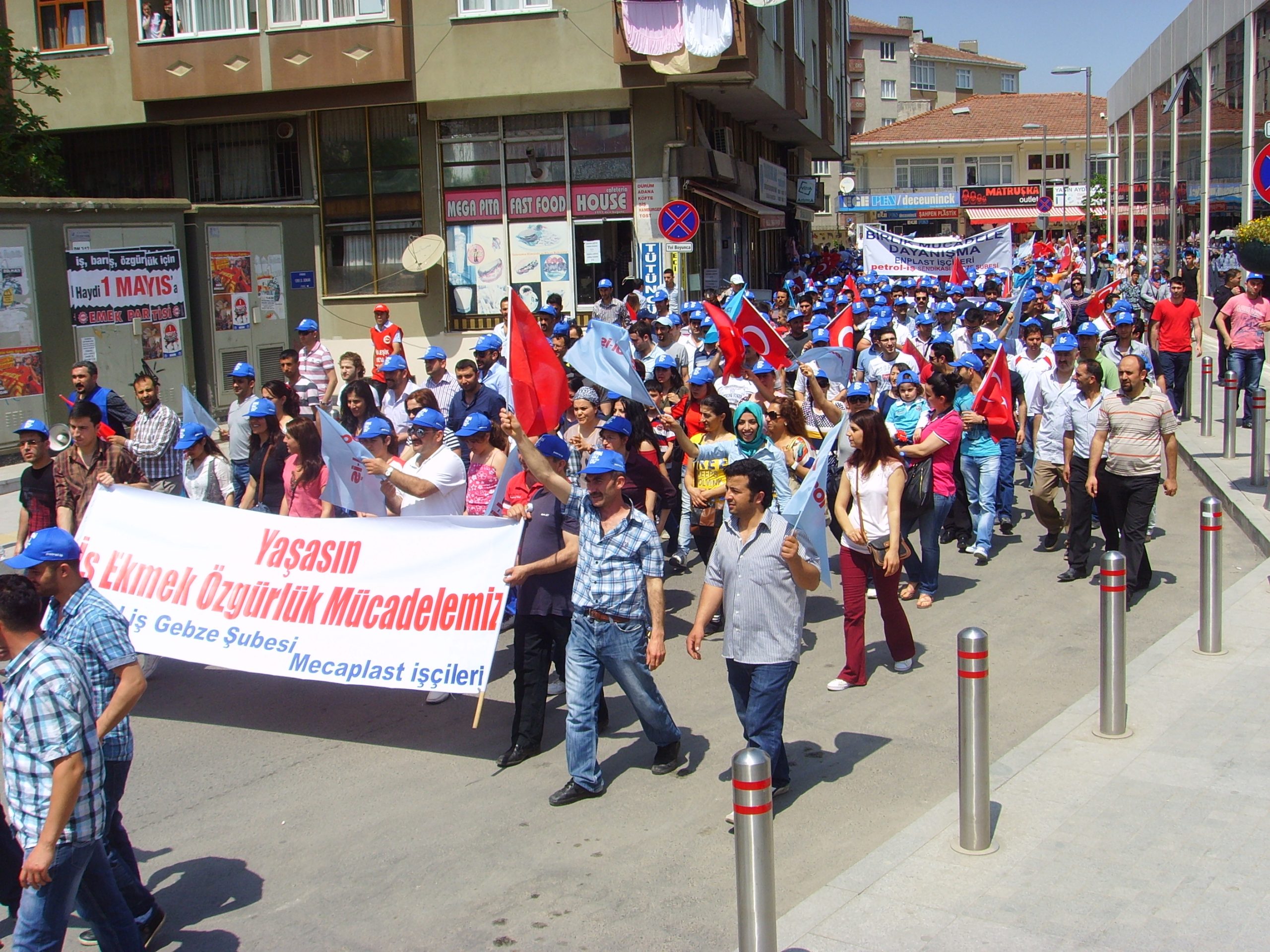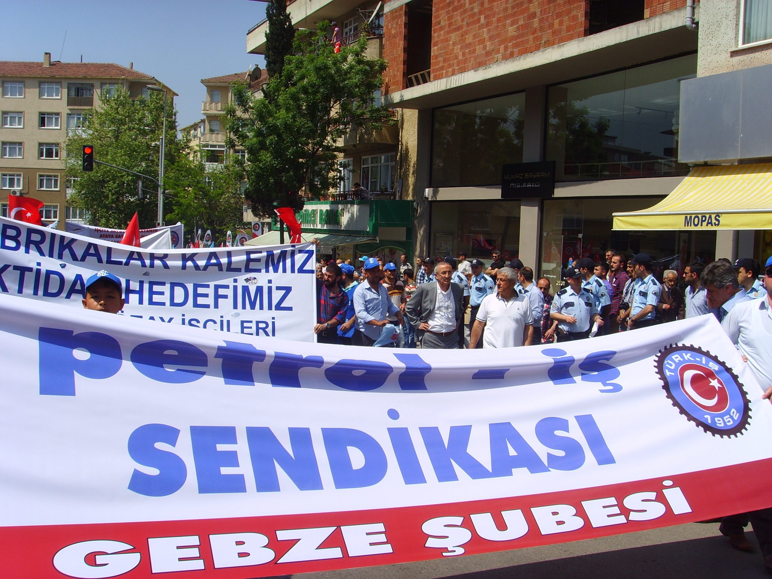 1 Mayıs 2013 Gebze de Sendikalar Birliğinin öncülüğünde Türk-İşe bağlı sendikalardan Petrol-İş Gebze ve Kocaeli Şubeleri, Türk Metale bağlı Gebze, Çayır ova, Dil ovası, Kocaeli ve Gölcük Şubeleri,Tekgıda  Anadolu Yakası Şubesi, Tez  Koop- İş Gebze Şubesi,Tes-İs Gebze Temsilciliği, Harb- İş Gölcük Şubesi, Sağlık-İş Kocaeli Şubesi, Maden- İş Kocaeli Temsilciliği ile Hak -İş’ e bağlı Çelik- İş ve DİSK’ bağlı Birleşik Metal -İş Sendikaları ve Emekli- Sen katıldı.