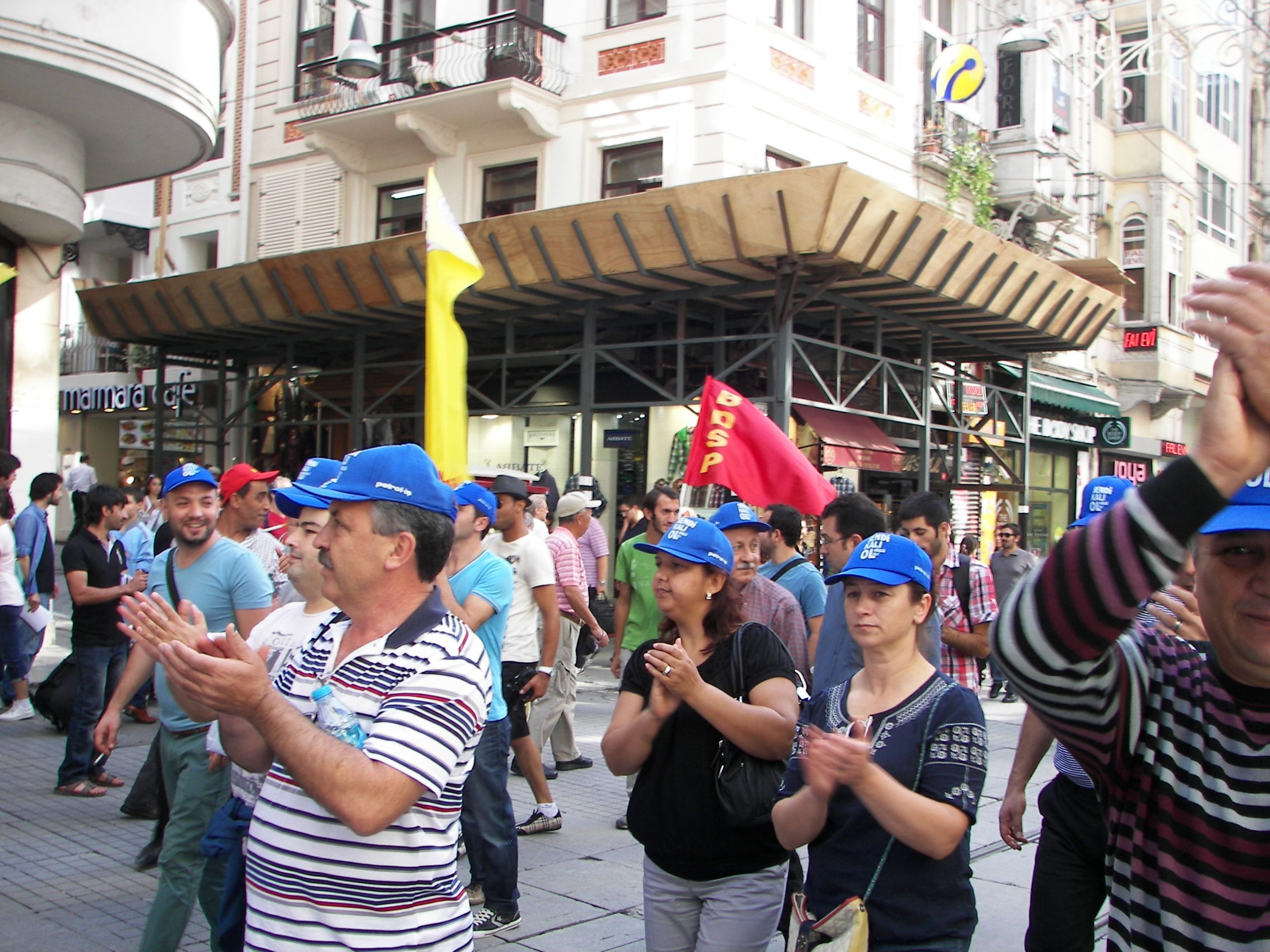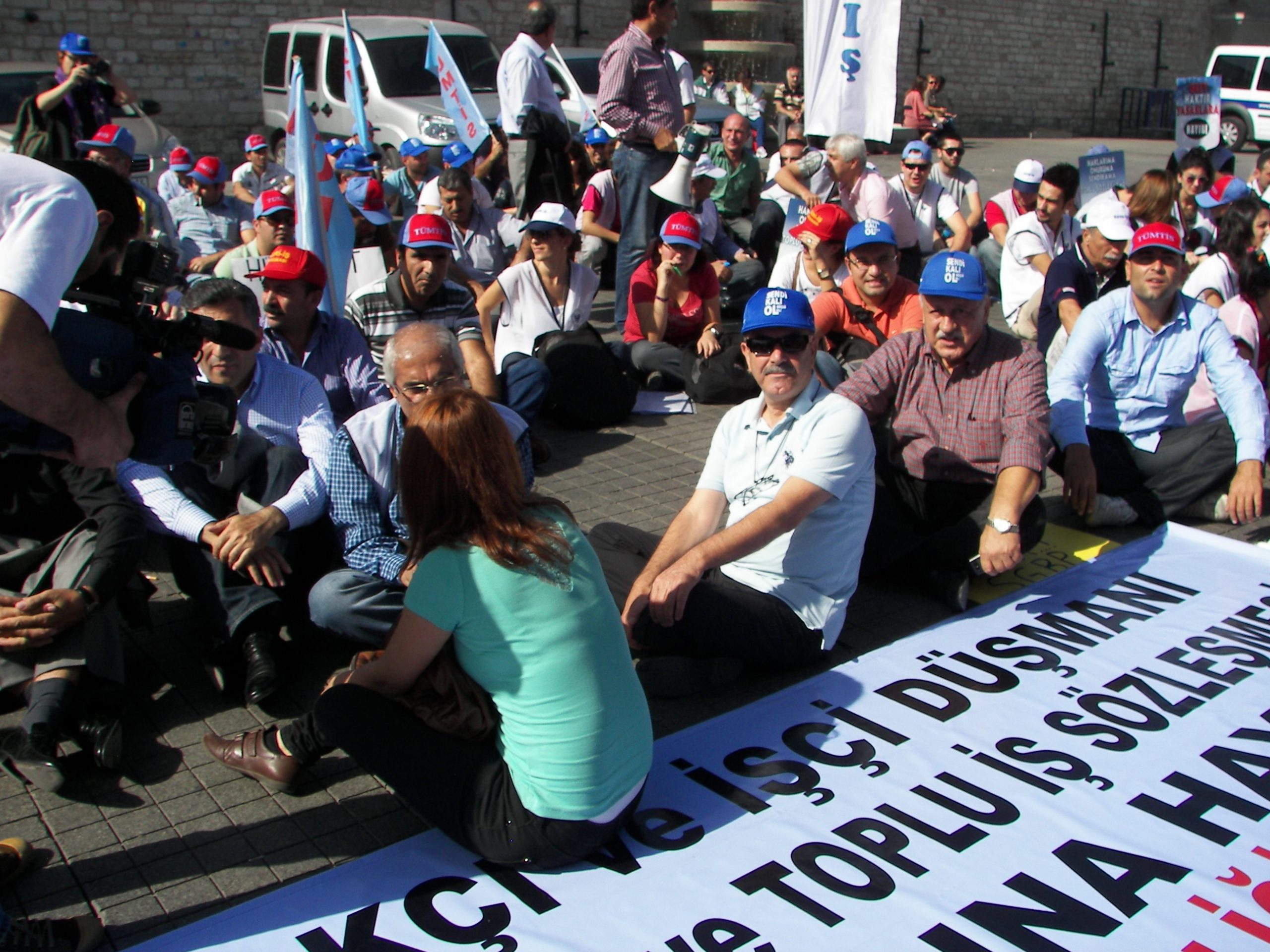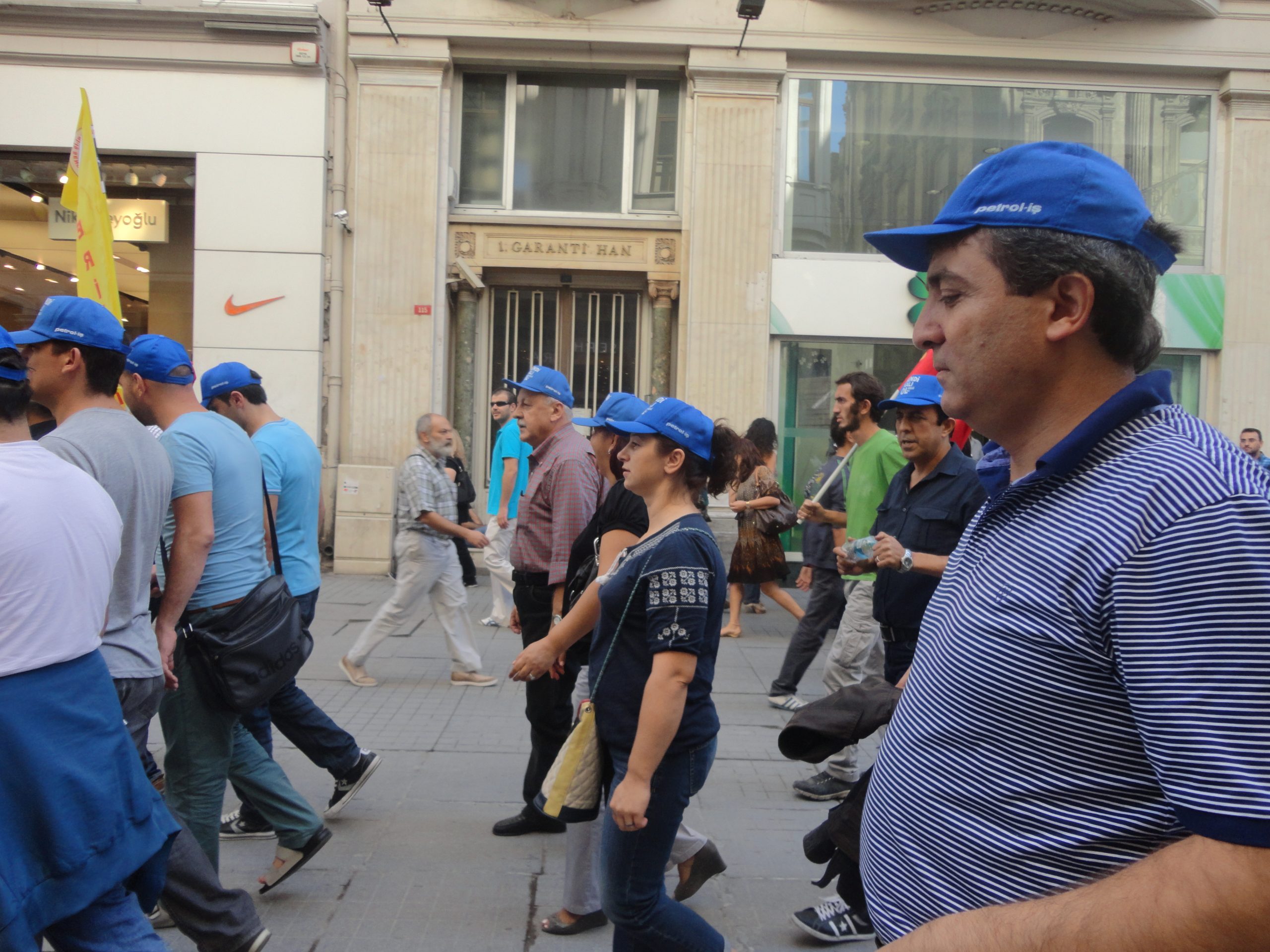 Sendikal Güç Birliği Platformu (SGBP), patron kuruluşlarının talepleri doğrultusunda hazırlanan, ancak Türk-İş ve Hak-İş yönetimlerinin de imzaladıkları protokolle destekledikleri “Sendikalar ve Toplu İş Sözleşmesi Yasa Tasarısı”nı 16 Ekim Salı günü Türkiye genelinde yapılan çeşitli eylemlerle bir kez daha protesto etti. Sabahleyin SGBP’nin bileşeni sendikaların örgütlü olduğu işyerlerinde 1 saat iş bırakıldı, tasarıyla ilgili bildiriler okundu. Aynı gün saat 13.00’den itibaren başta İstanbul – Taksim olmak üzere, Ankara, İzmir, Bursa, Adana, G.Antep gibi merkezlerde de oturma eylemleri yapıldı. Taksim’de yapılan eyleme Genel Mali Sekreterimiz İbrahim Doğangül, Genel Yönetim Sekreterimiz Ahmet Kabaca, şube başkan, yönetici ve işyeri temsilcilerimizle Petrol-İş üyesi işçiler de katıldı.