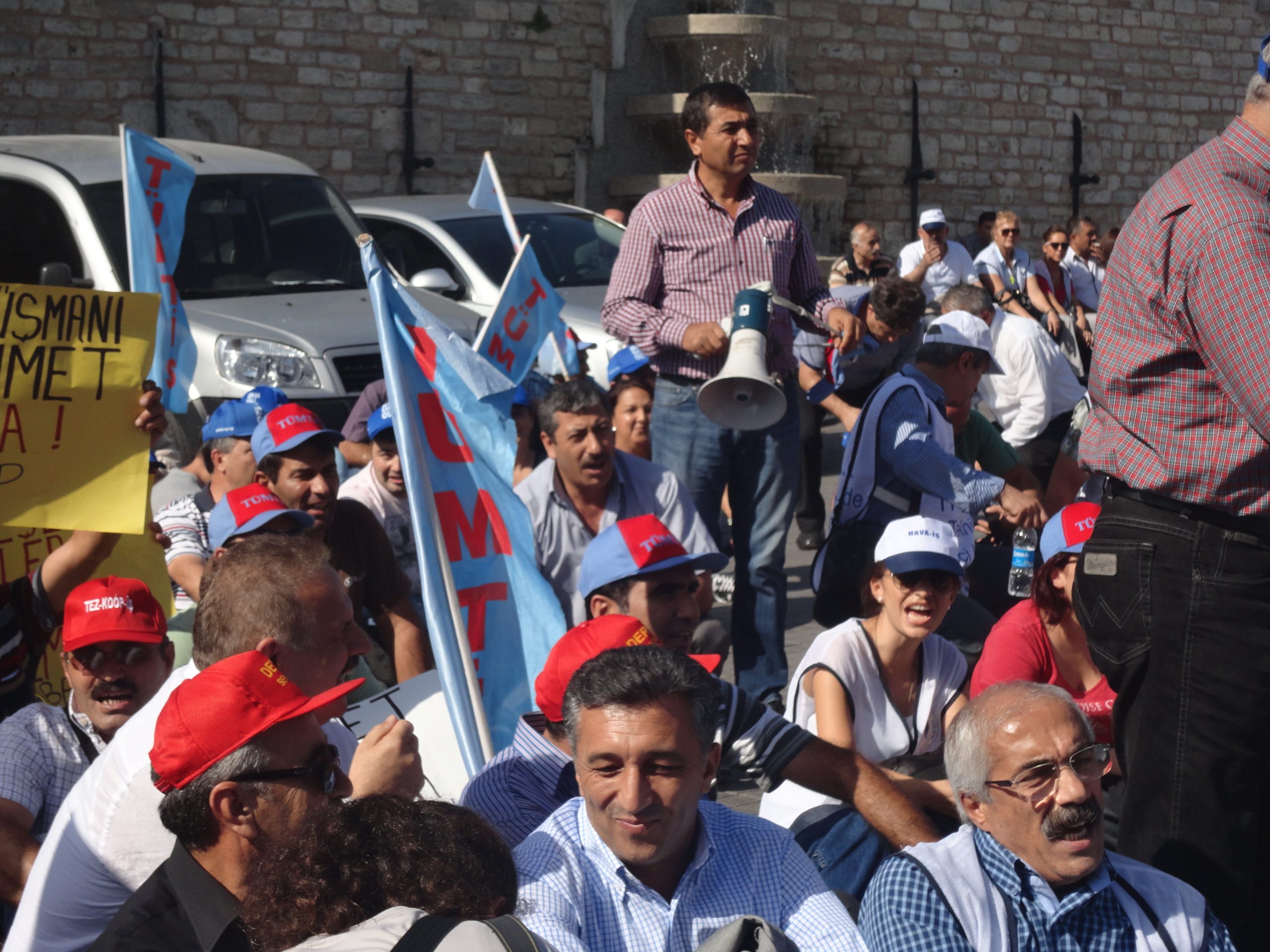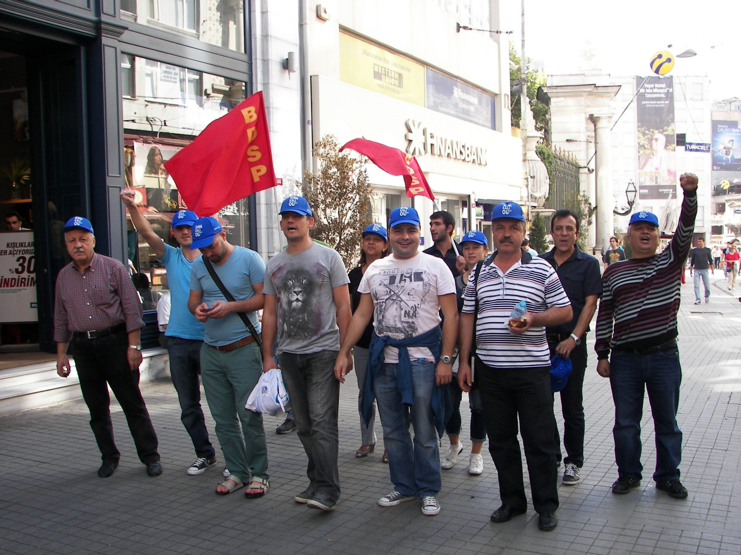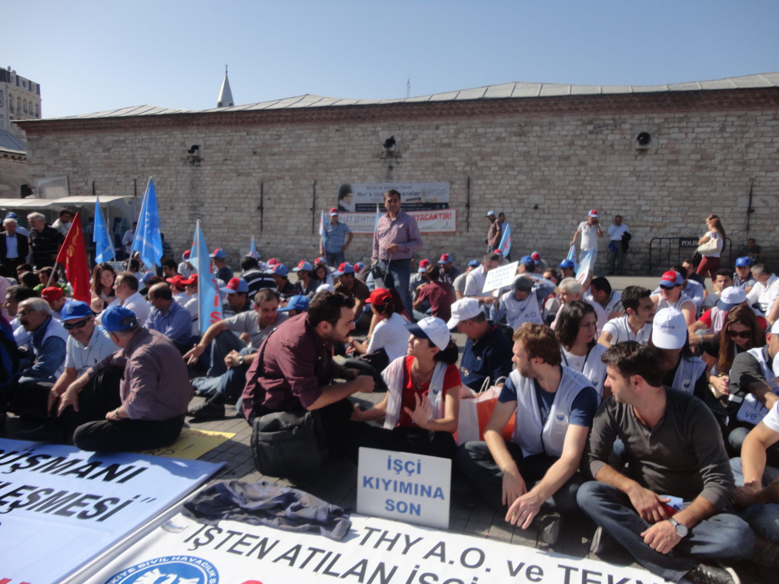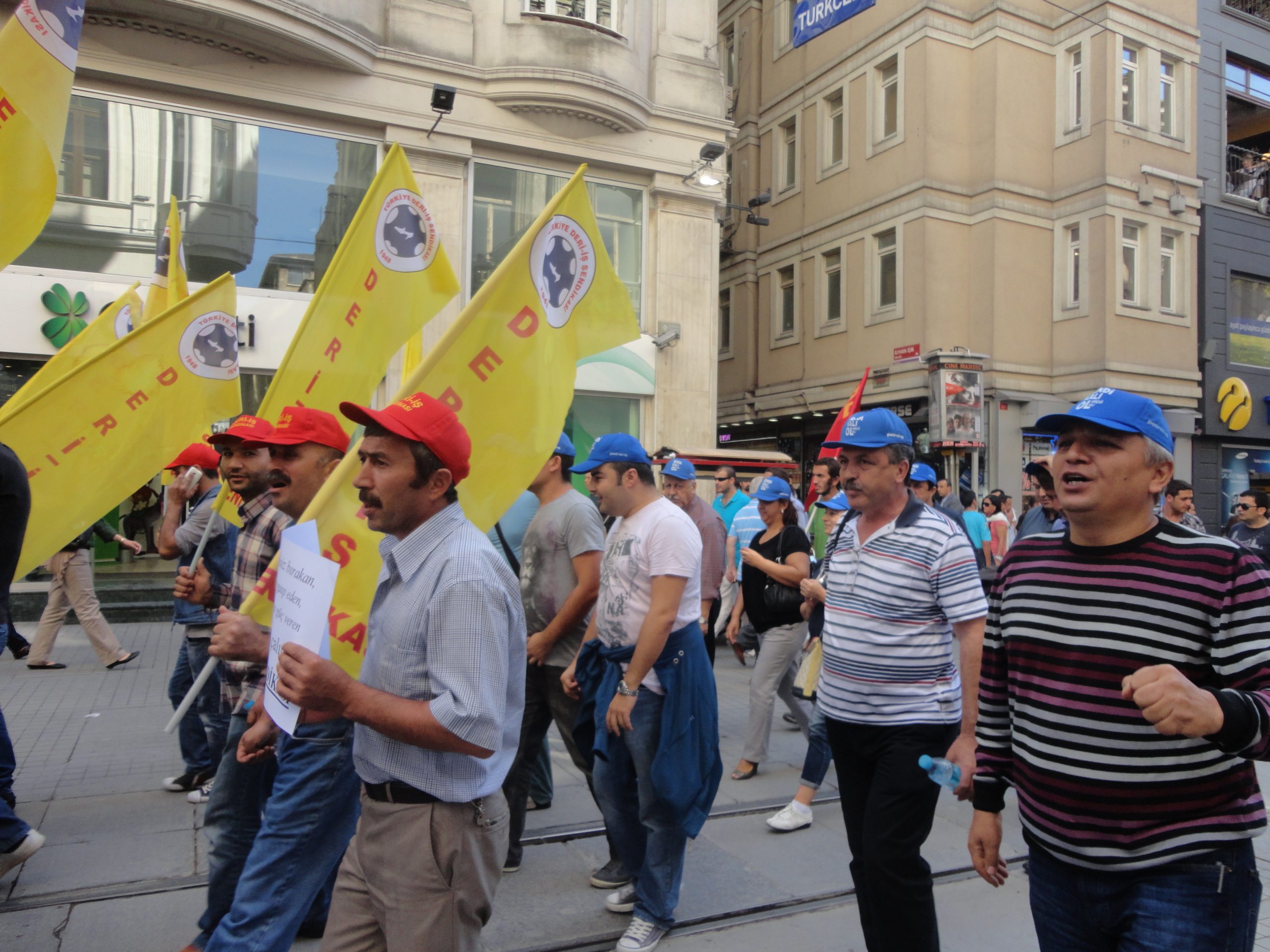 Sendikal Güç Birliği Platformu (SGBP), patron kuruluşlarının talepleri doğrultusunda hazırlanan, ancak Türk-İş ve Hak-İş yönetimlerinin de imzaladıkları protokolle destekledikleri “Sendikalar ve Toplu İş Sözleşmesi Yasa Tasarısı”nı 16 Ekim Salı günü Türkiye genelinde yapılan çeşitli eylemlerle bir kez daha protesto etti. Sabahleyin SGBP’nin bileşeni sendikaların örgütlü olduğu işyerlerinde 1 saat iş bırakıldı, tasarıyla ilgili bildiriler okundu. Aynı gün saat 13.00’den itibaren başta İstanbul – Taksim olmak üzere, Ankara, İzmir, Bursa, Adana, G.Antep gibi merkezlerde de oturma eylemleri yapıldı. Taksim’de yapılan eyleme Genel Mali Sekreterimiz İbrahim Doğangül, Genel Yönetim Sekreterimiz Ahmet Kabaca, şube başkan, yönetici ve işyeri temsilcilerimizle Petrol-İş üyesi işçiler de katıldı.