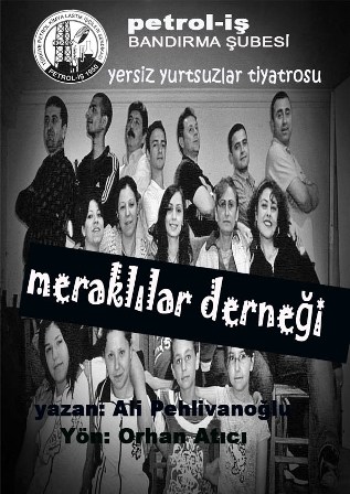 BANDIRMA ŞUBEMİZ “yersiz yurtsuzlar tiyatrosu”“Meraklılar Derneği” adlı oyunu sergileyecekPetrol-İş Sendikası Bandırma Şubesi “yersiz yurtsuzlar tiyatrosu”, 01 Haziran 2008 tarihinde, Pazar günü 18.00-20.00 ve 20.30-22.30 saatleri arasında “Meraklılar Derneği” adlı tiyatro oyununu sergileyecek. Bandırma Kültür Eğitim Vakfı (KEV) İlköğretim Lisesi’nde sergilenecek oyuna tüm yönetici, temsilci ve üyelerimizle halkımız davetlidir.