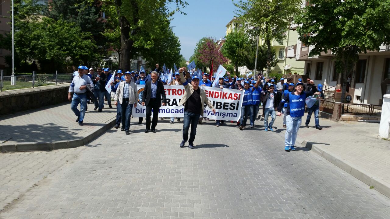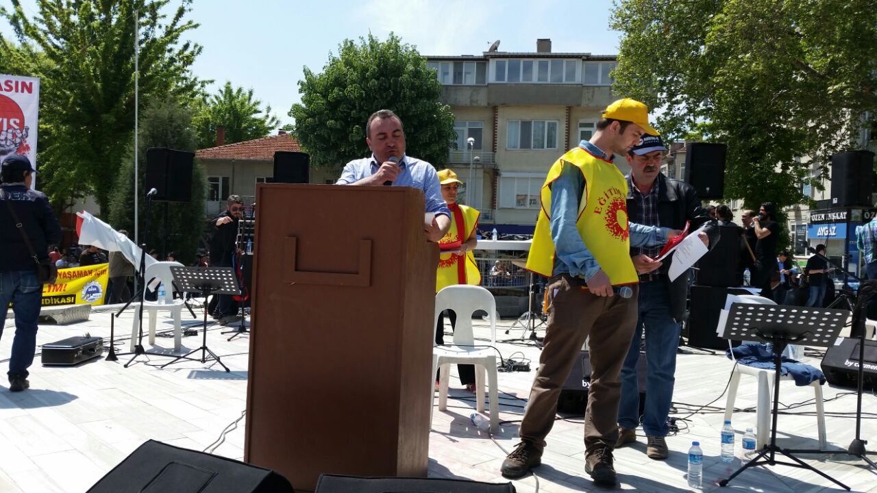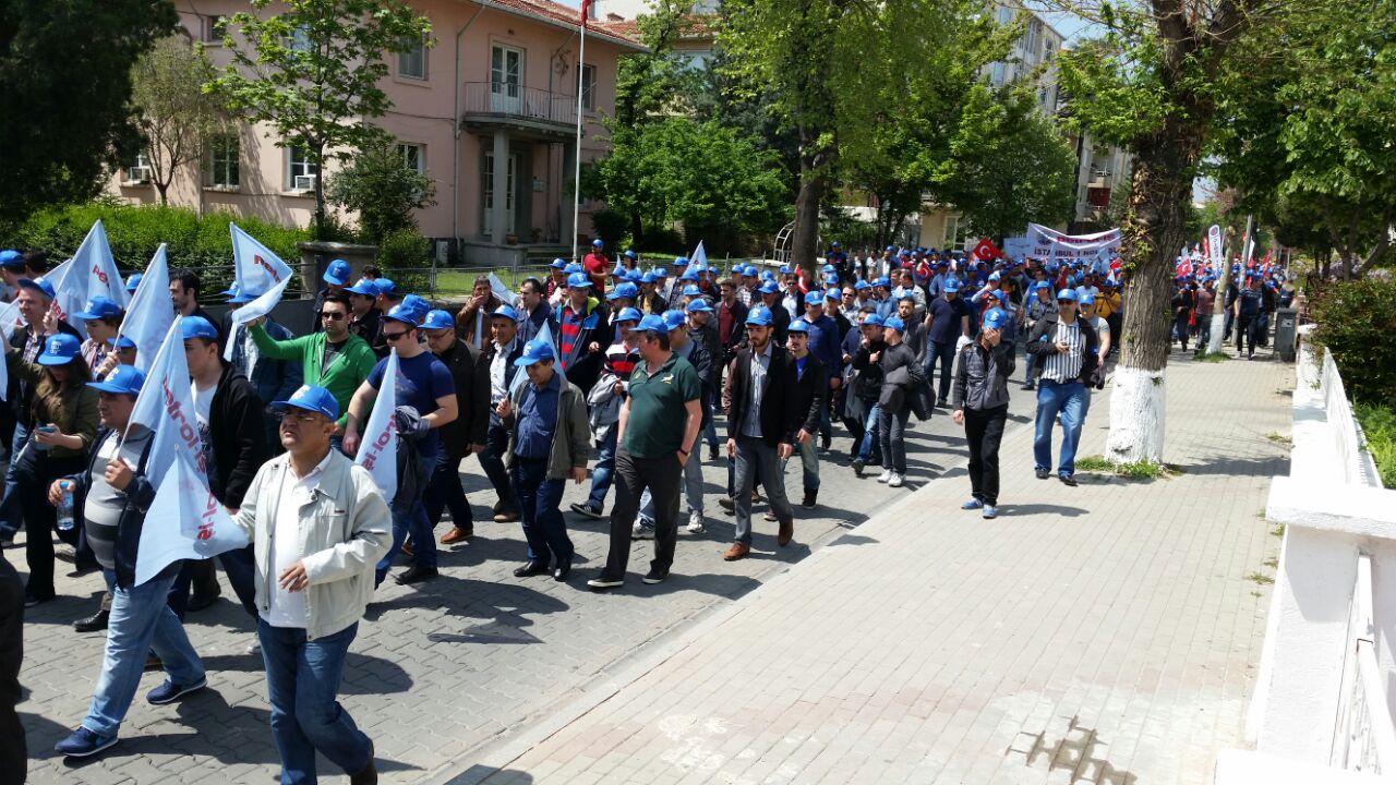 Trakya şubemiz 1 Mayıs kutlamalarına Lüleburgaz’da İstanbul 1 No’lu şubemiz ile katıldı. Hükümet Konağı önünde toplanan işçiler Kongre Meydanı’na sloganlar eşliğinde yürüdü. Genel merkezden Genel Yönetim Sekreterimiz Ahmet Kabaca ve Denetim Kurulu Başkanı Yusuf Ziya Kahyaoğlu’nun katıldığı kutlamalara Trakya şubemiz bağlı işyerlerinden üyeleriyle yoğun bir katılım gösterdi. Alanda Trakya şube Başkanımız Turgut Düşova açılış konuşması yaptı. Yapılan konuşmalarda işçilerin birlikte mücadelesinin ve dayanışmasının önemi vurgulandı.