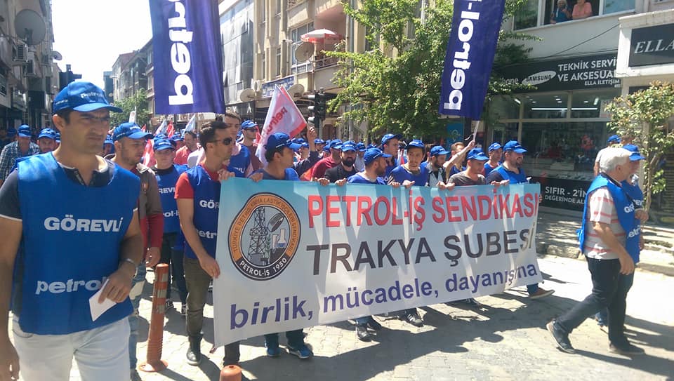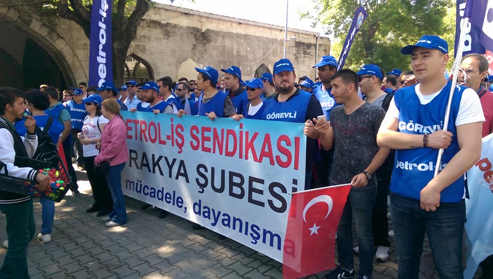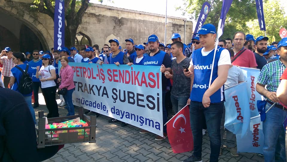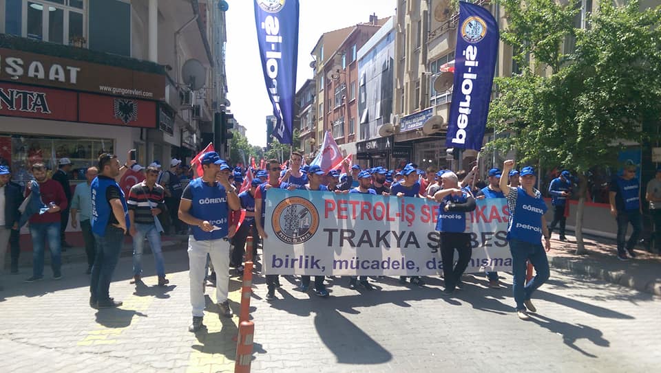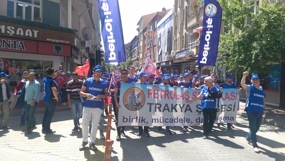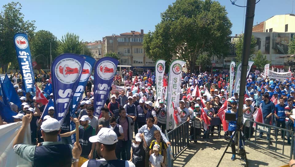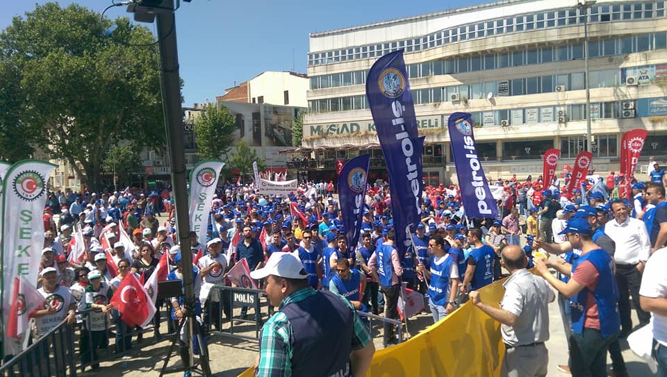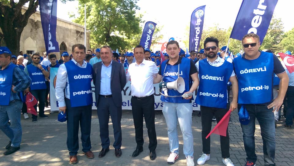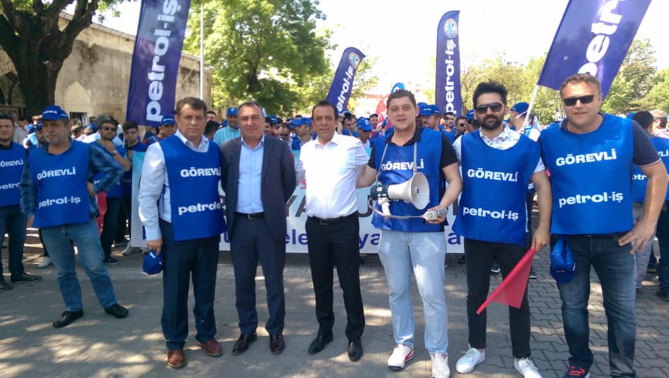 Genel Mali Sekreterimiz Turgut Düşova 1 Mayıs İşçi Bayramı’nı Lüleburgaz Kongre Meydanı’nda kutladı. Trakya Şube Başkanımız Ercan Yavuz Şube Başkan Yardımcılarımız Ümit Ormancı, Mehmet Kaya ve Trakya Şubemize bağlı işyerlerinin ve temsilcilerinin katıldığı etkinlik sabah 11:00 ‘da Eski Hükümet Konağı’nda kortejin toplanmasıyla başladı. Ardından İstanbul Caddesi’nden coşkulu bir şekilde sloganlar eşliğinde yürüyen kortej Kongre Meydanı’na geldi.