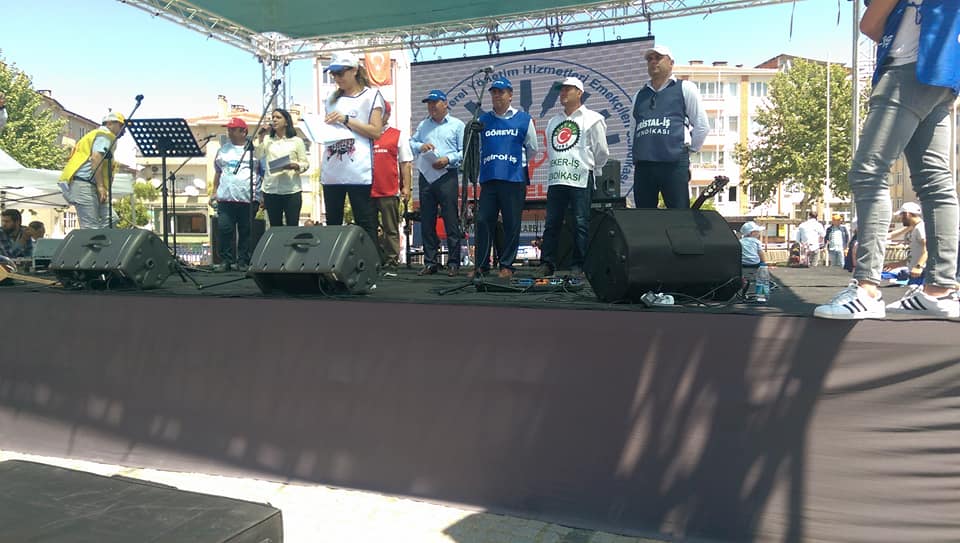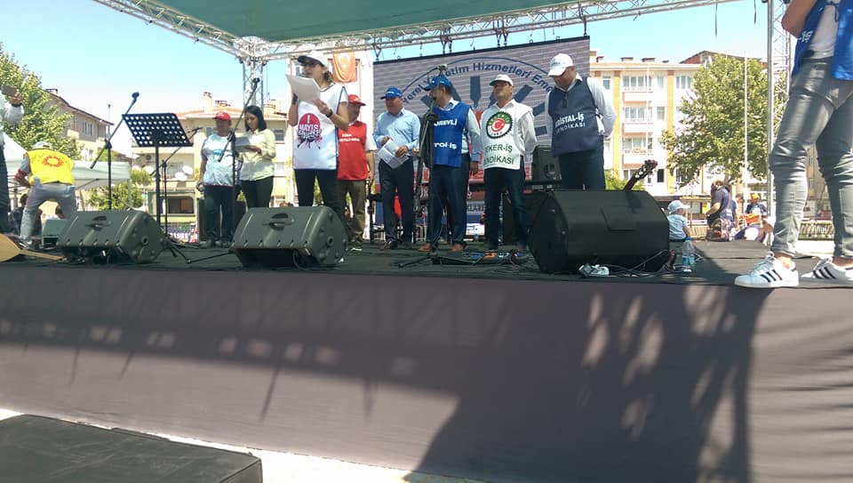 Yapılan konuşmaların ardından yerel grupların sahne aldığı konserlerde işçiler bayramlarını kutladı.