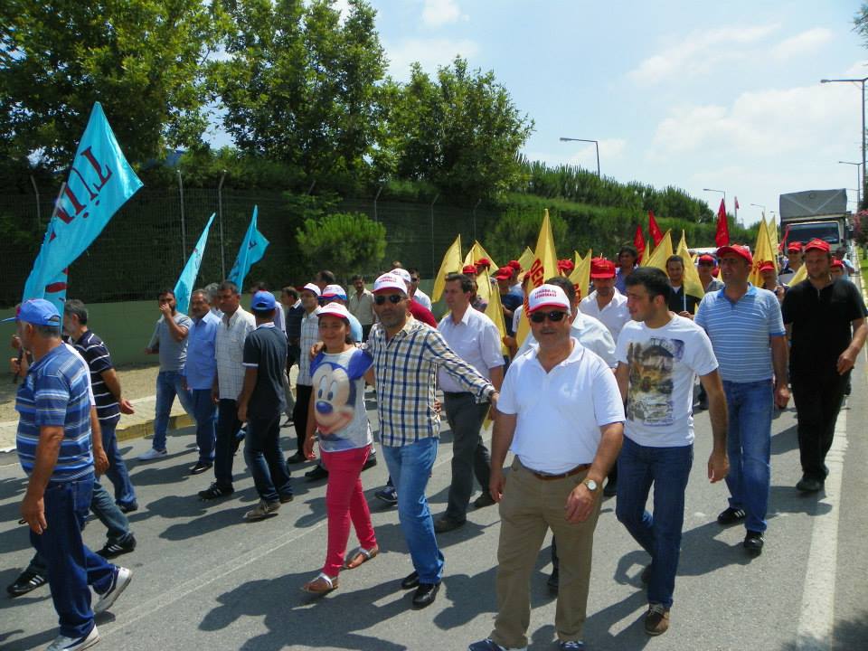 Türk-İş Ege Bölge Temsilciliği’nin çağrısıyla bir araya gelen işçiler Petrol-İş’e üye oldukları için işten çıkarılan ve 36 gündür fabrika önünde direnişte olan Standart Profil işçilerini ziyaret etti. Ziyaret için Manisa Organize Sanayi bölge içinde toplanan Deri-İş, TÜMTİS, Tek Gıda-İş, Petrol-İş, Tez Koop-İş, Tes-İş, Basın-İş ve diğer sendikaların yöneticileri ve üyeleri “Yaşasın 15-16 Haziran direnişimiz” sloganları ile Standart Profil’in önüne yürüdüler. KESK İzmir Şubeler Platformu Dönem Sözcüsü İsmail Akyol ve çok sayıda kamu sendikası yöneticinin de katıldığı yürüyüşe Emek Partisi İzmir ve Manisa Örgütleri de destek verdi.