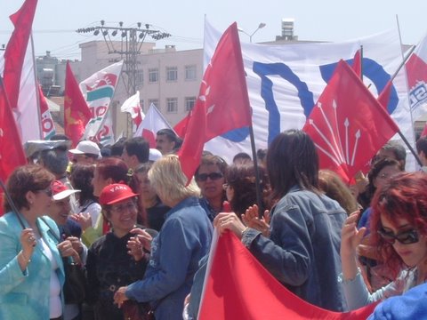 Başta Mersin limanı olmak üzere Pektim, Botaş,THY gibi kamu işyerlerimiz, ülkemizin tüm kaynakları haraç mezat satılıyor Bir yanda askerin postalı, bir yanda şeriat özlemcileri… Yani darbe ile şeriat ikilemi arasında toplum sıkıştırılarak topluma deli gömleği giydirilmeye çalışılıyor.
