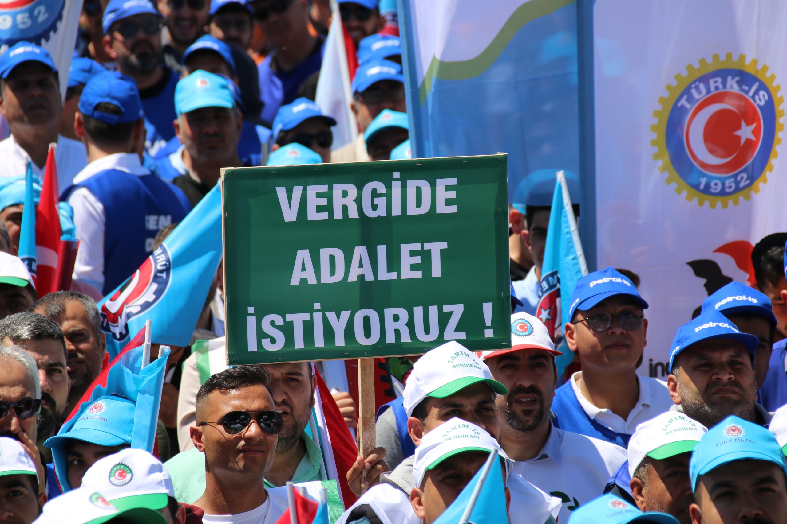 Çalışanların Ocak ayında aldığı maaşı Aralık ayında alamadığını ve bir çok kez vergi dilimine girdiğini belirten Genel Başkan Ergün Atalay, şöyle devam etti: “Başımızda vergi diye bir bela var. Asgari ücretten vergiyi düşük aldın, güzel ama bu yetmiyor. Bizim kardeşlerimiz, bu alanda bulunanlar ocak ayında aldığını aralık ayında almıyor. Aldığımız ücretlerdeki vergiyi sabitlemek gerekiyor. Buradan bütün siyasi partilere sesleniyorum; bu meseleyi bir an evvel kim geliyorsa meclise, çözün. Çözmezseniz, çözene kadar bu meseleyi ülke gündeminden çıkarmamaya devam ederiz.” dedi.