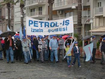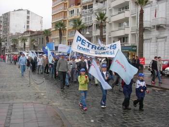 TÜRK-İŞ’e bağlı sendikalar, Alsancak Limanı yönünden saat 13.oo’de yürüyüşe geçerek alana geldiler.