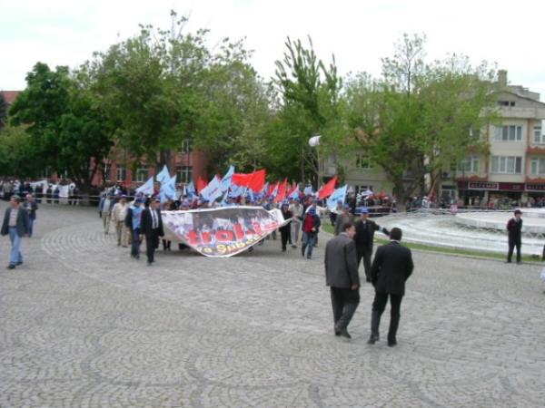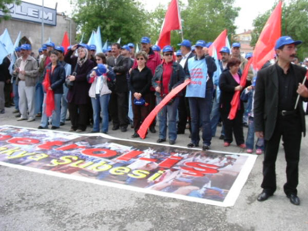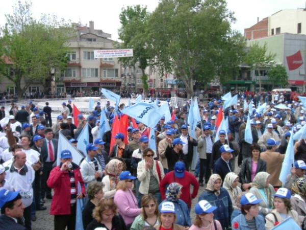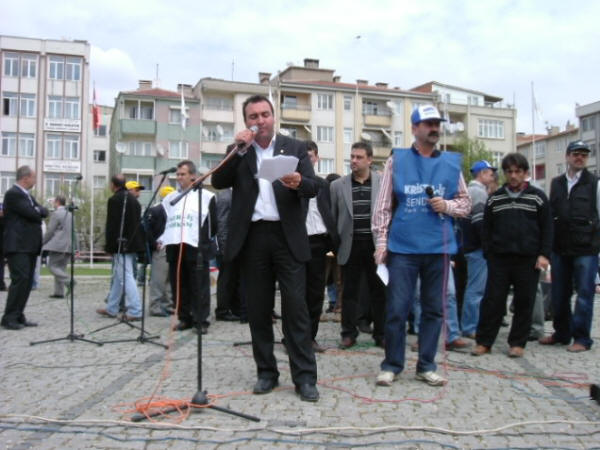Dünya emekçilerinin birlik ve dayanışma günü olan 1 Mayıs, Trakya Sendikalar Platformu’nun öncülüğünde Lüleburgaz’da da miting yapılarak kutlandı. Hükümet önünde toplanan emekçiler, Kongre Meydanına sloganlar atarak yürüdü. Yaklaşık 5 bin kişinin toplandığı mitingde Şubemizin İdari Sekreteri Turgut Düşova yaptığı konuşmada, yaklaşan seçimlerde, işçilerin demokrasi ve emek güçleri ile birlikte hareket ederek işçi düşmanı AKP’ye iyi bir ders vermesi gerektiğini söyledi. Müzik gruplarının söylediği türküler eşliğinde halaylar çekilerek miting coşkulu bir şekilde sona erdi.