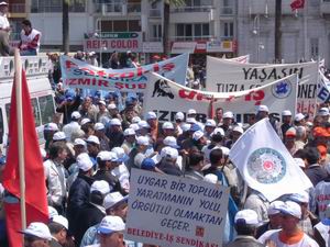 Dünya işçilerinin “Birlik, Mücadele ve Dayanışma Günü” 1 Mayıs, İzmir’de Türk-İş, DİSK ve KESK’in yerel bileşenleri ile TMMOB ve Tabip Odası yöneticilerinin öncülüğünde Kordon Gündoğdu Meydanında kutlandı. İzmir Gündoğdu Meydanı’nda düzenlenen mitinge, Türk-İş’e bağlı sendikalarla birlikte İzmir şubemiz üyeleri, Alsancak Limanı’nda toplanarak yapılan yürüyüşle alana geldiler.Özelleştirmelere karşı döviz ve pankartların öne çıktığı, hükümete karşı sloganların ağırlıkla atıldığı miting, tüm sendika ve siyasi partilerin yoğun ve coşkulu katılımı ile kitlesel bir şekilde kutlandı.