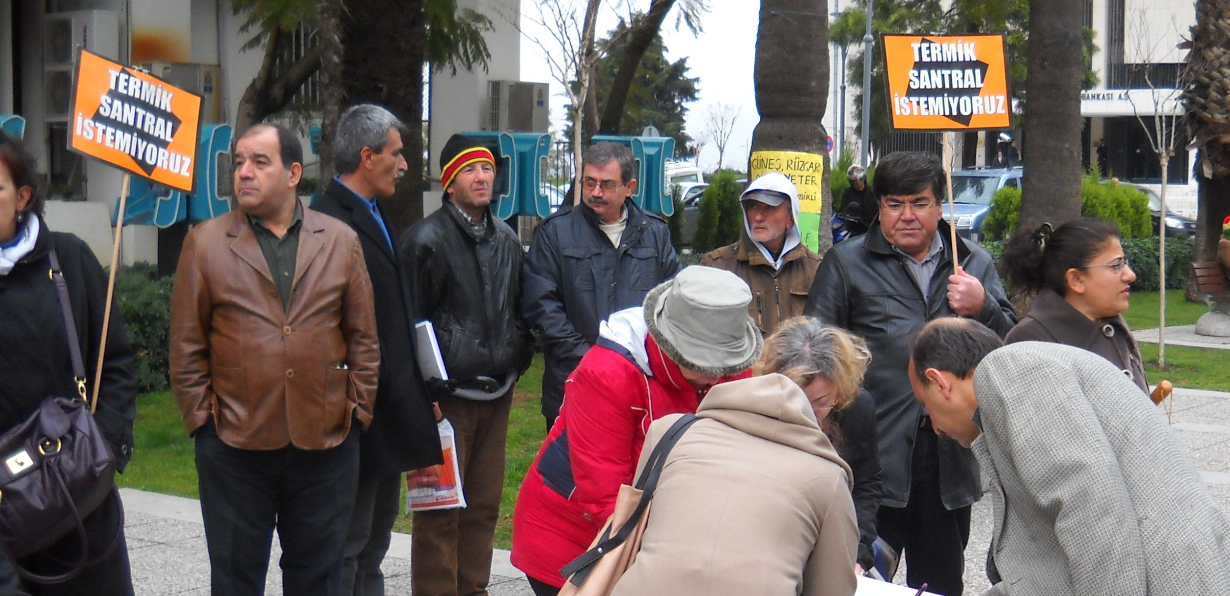 Aliağa’da 7 adet kömür yakıtlı santral yapılması planlanıyor. 1 Milyon İzmirli bölgeye yapılacak termik santrallere karşı olduğunu her fırsatta ve her platformda gerek basın açıklamalarıyla, gerek eylemlerle, gerek imza kampanyalarıyla anlatıyor.