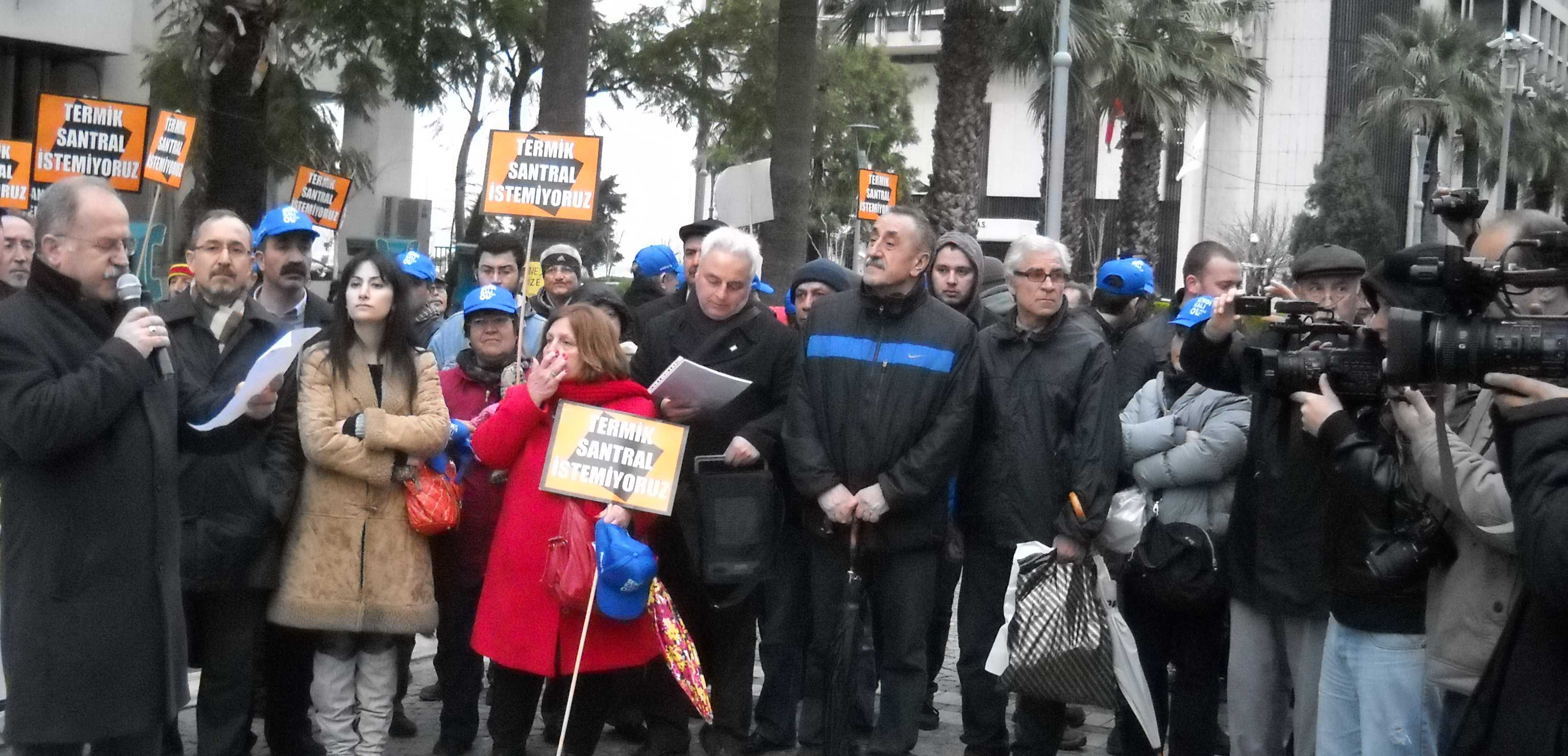 Aliağada yapılmak istenen termik santral için “1 Milyon İzmirli Termik Santrale Karşı” Platformu ve Petrol-İş Aliağa Şubesi 12 Mart 2012 tarihinde İzmir Büyükşehir Belediyesi önünde bir basın açıklaması yaptı. Petrol-İş Aliağa Şubesi’nde örgütlü işyerlerinde çalışan üyelerin de kitlesel olarak katıldığı basın açıklamasını Petrol-İş Aliağa Şube Başkan Yardımcımız Cemal Topçu yaptı.