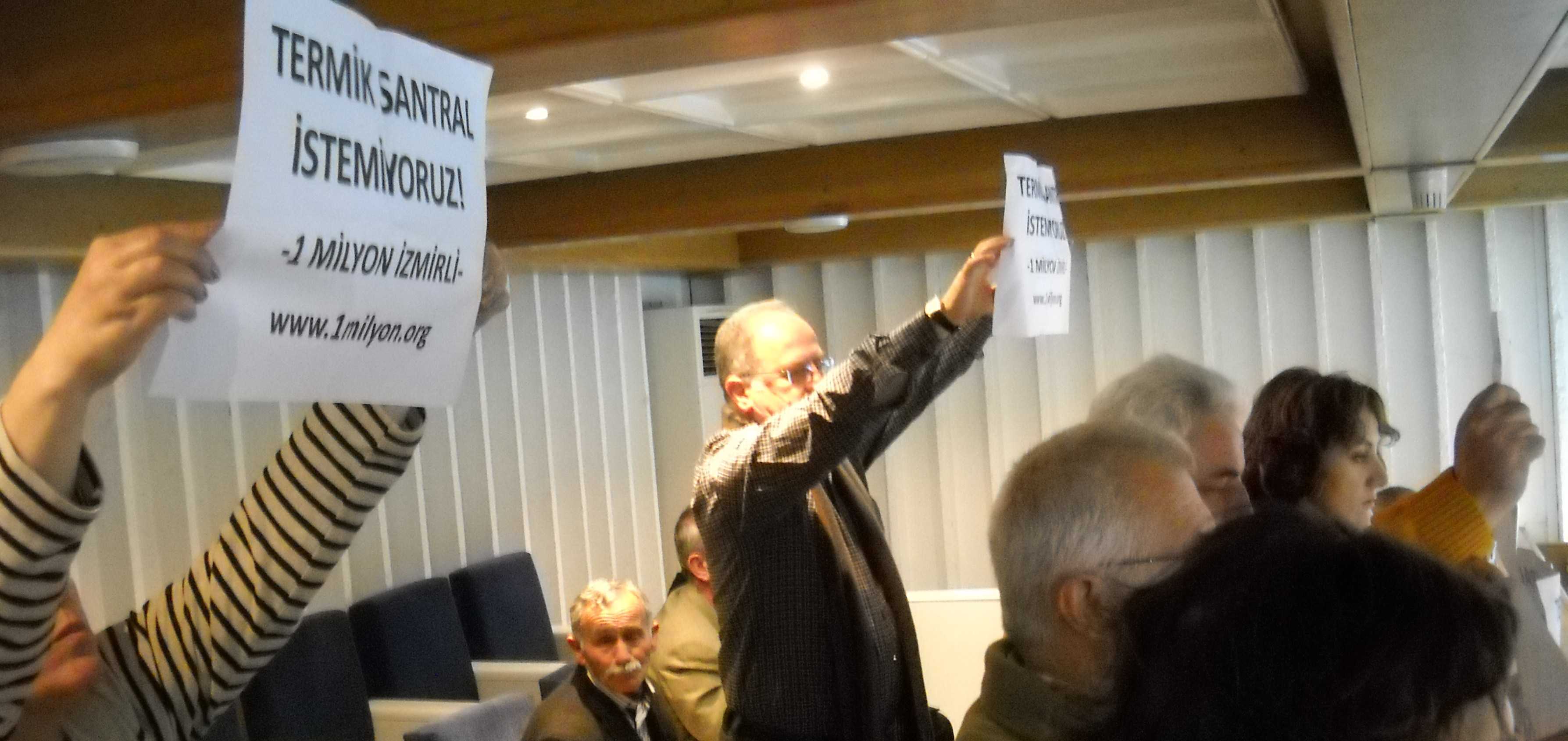 Basın açıklamasının ardından İzmir Büyükşehir Belediyesi Meclis toplantısını izlemek ve konuyla ilgili neler yapılabileceğini öğrenmek üzere “1 Milyon İzmirli Termik Santrale Karşı” Platformu üyeleri meclis toplantısına katıldı.