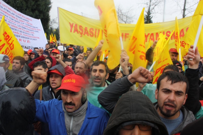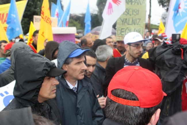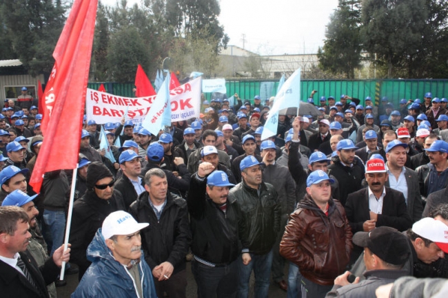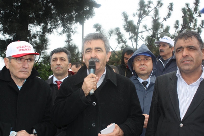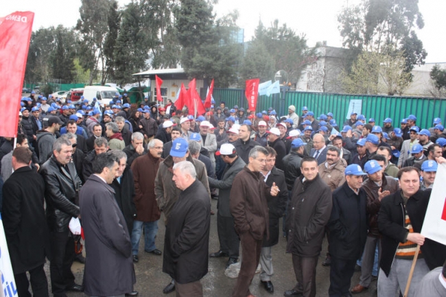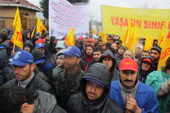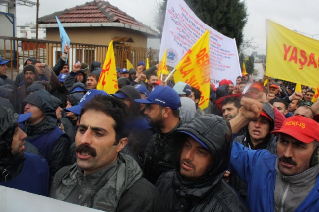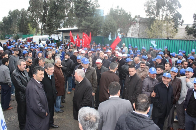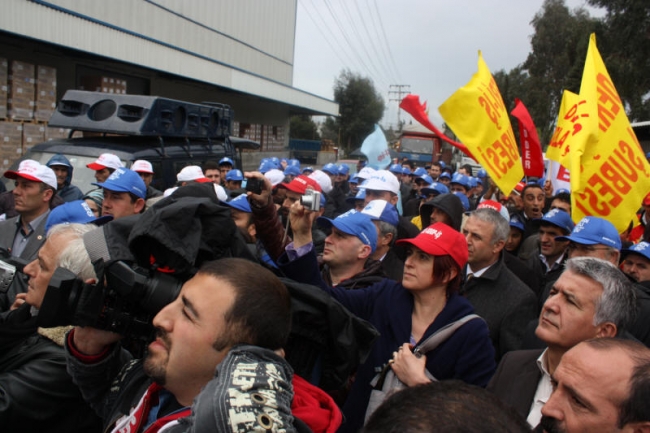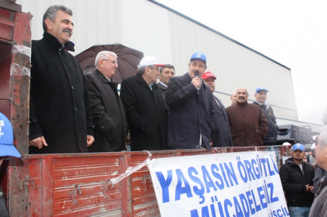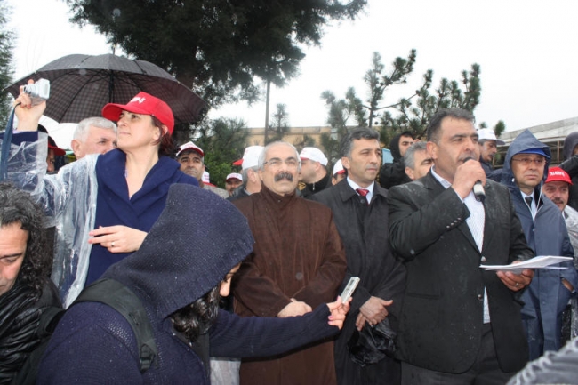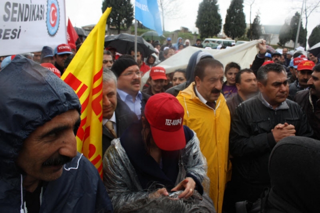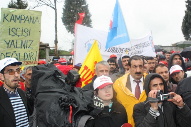 Deri-İş Sendikası Genel Başkanı Musa Servi de direnişte olan PTT, Ontex, Bericap işçilerini selamlayarak başladığı konuşmasında, AKP hükümetinin iş kolu ayrımı yapılmaksızın, kuralsız çalışmayı dayattığını, bunun aynı zamanda küresel düzeyde bir saldırı olduğunu ifade etti. Servi, AKP’nin iki sendikaya üye olunabileceğini ifade ettiği süreçte, bırakın iki sendikayı, bir sendikaya üye olanların işten çıkarıldığını, örgütlenmeye tahammül edilmediğini Kampana Deri işçilerinin de sendikalarında örgütlendikleri için işten çıkarıldığını bildirdi. Servi, tüm bu saldırılara karşı yılmayacaklarını, nerede bir direniş varsa orada işçilerle, emekçilerle birlikte olacaklarını söyledi.