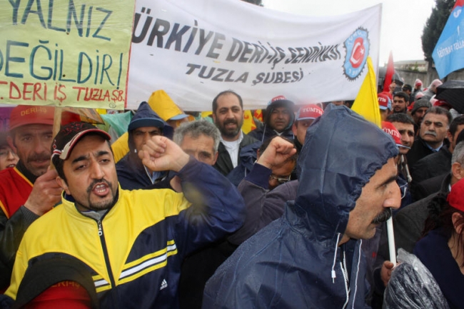 Tuzla Deri Organize Sanayi Bölgesinde bulunan Kampana Deri işçileri sendikalı oldukları için işten çıkarılmalarının ardından direnişe geçtiler. Kampana Deri işçilerinin eylemlerinin 27. günü olan 14 Nisan’da, sendikamızın da aralarında yer aldığı Türk-İş üyesi Tek Gıda – İş, Belediye-İş, Tez-Koop-İş, Harb-İş, Kristal-İş, Deri-İş, Hava-İş, TÜMTİS, TGS, Basın-İş yönetici ve üyeleri ziyaret etti. Dayanışma ziyaretine DİSK/Genel-İş Sendikası yönetici ve üyeleri, siyasi partilerin temsilcileri ve direnişteki emekçiler de katıldı.
