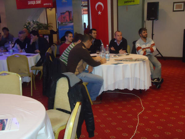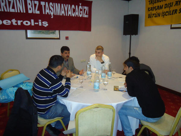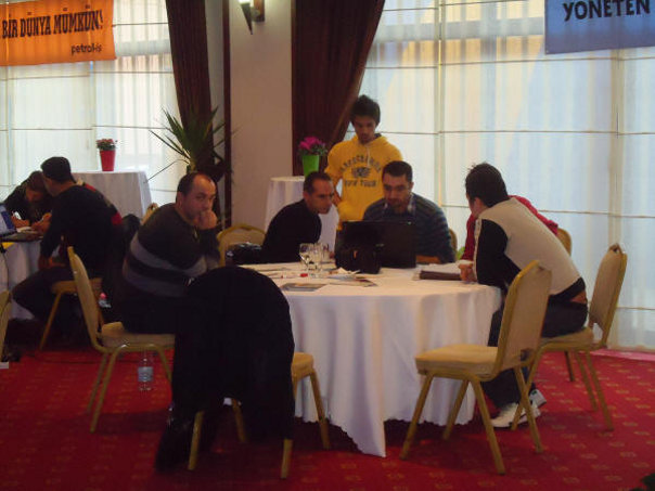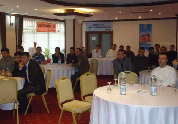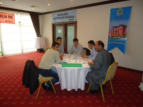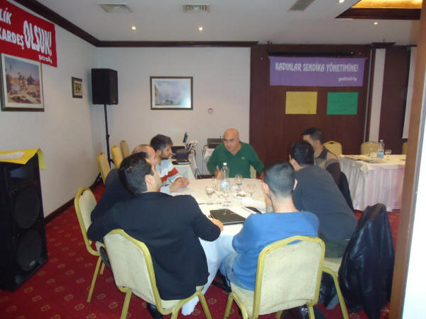 Eğitim Servisi tarafından yürütülen Aktif Üye Eğitimleri, 3 aşamalı olarak yapılıyor. Birinci kademeye şubelerin insiyatifiyle davet edilen, mümkünse 35 yaşını geçmemiş genç üyelerimiz, ikinci ve üçüncü kademeler için ancak eğitimcilerimiz tarafından verilen ödevleri yaptıkları takdirde katılabiliyorlar. Birinci kademeye gelirken, üyelerimizin bir kısmının doğal olarak nereye ve ne amaçla gittiğini tam olarak bilemediğini görmekteyiz. Ancak, ikinci ve üçüncü kademelere katılma kararı tümüyle üyenin kendi irade, niyet ve kararlılığına bağlı olmaktadır. Bu nedenle ikinci kademeden sonra eğitime devam eden üyelerimizin gönüllüğü konusunda hiçbir kuşku kalmamaktadır. Her yıl aktif üye eğitimlerinde aktarılan konular ve bir sonraki aşamaya geçmek için yapılması gereken ödevlerde kısmi değişikler yapılıyor. Bu yıl ikinci aşamaya geçmek için konu olarak, “İşyerlerinde Sendikal Örgütlülüğü Arttırmak İçin İki Yıllık Bir Program” hazırlanması seçildi. 4 grup halinde davet edilen ve iki buçuk gün süren eğitime toplam 144 üyemiz katıldı. Şubelerimiz aktif üye eğitimlerine şubelerin üye sayısıyla doğru orantılı olarak belirlenen kontenjanları dahilinde yolladılar. Yüzde 20’lik bir kontenjanı kadın üyelerimize ayırmış olmamıza rağmen, bu yıl sadece Batman şubemizden gelen 3 kadın üyemizle eğitim yapmak durumunda kaldık. Temennimiz, bundan sonraki yıllarda çok daha fazla sayıda kadın üyemizin de Aktif Üye Eğitimlerine gelebilmesidir. Aşağıda dört ayrı grup için çekilen fotoğrafları görmektesiniz.
