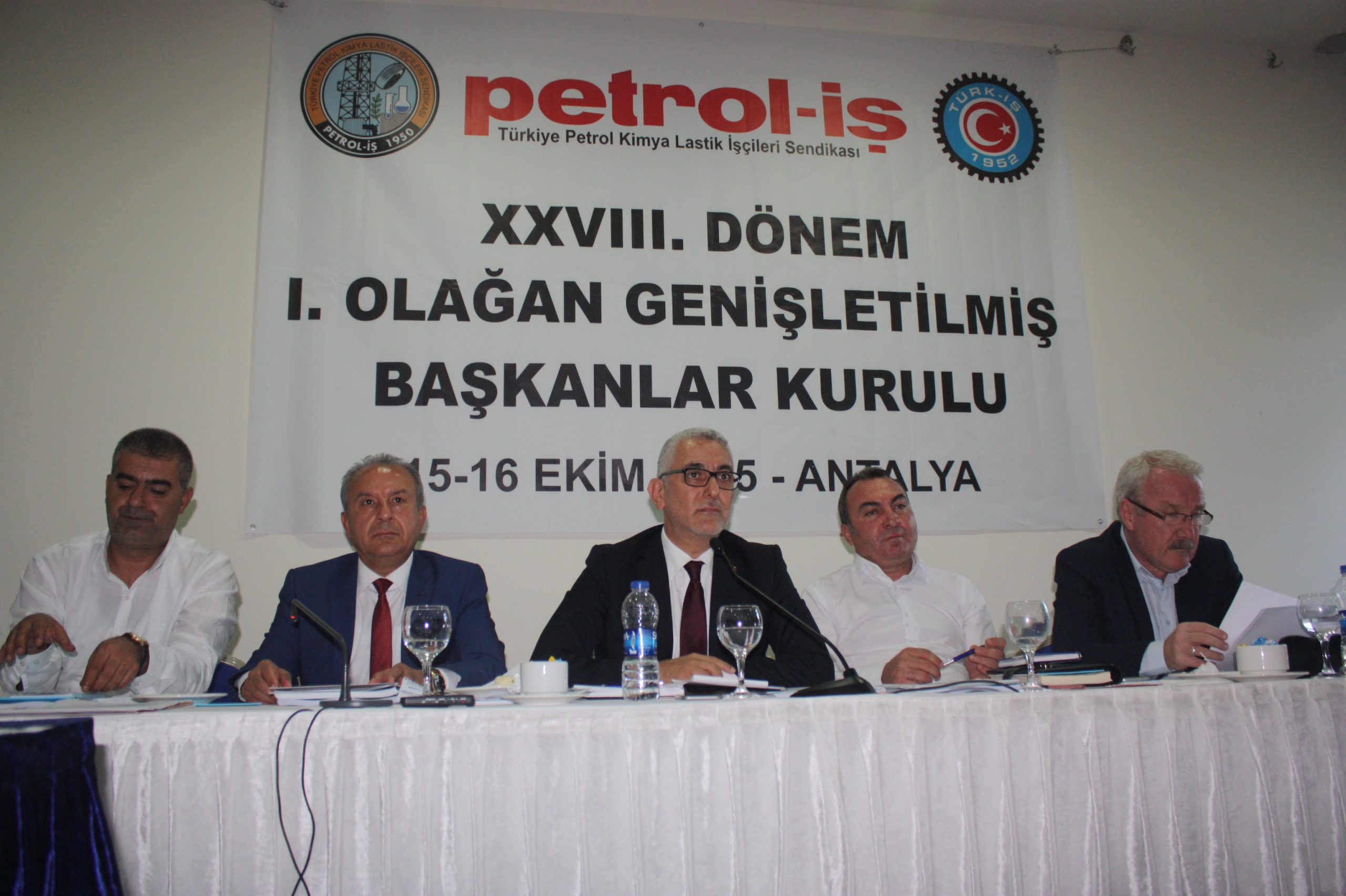 Petrol-İş Sendikası 28.Dönem 1. Olağan Genişletilmiş Başkanlar Kurulu, 15 Ekim Perşembe günü Genel Başkan Ali Ufuk Yaşar’ın açış konuşmasıyla başladı. Antalya’da toplanılan ve iki gün sürecek olan Genişletilmiş Başkanlar Kurulu’na, Petrol-İş Sendikası merkez yöneticileri, merkez denetim ve merkez disiplin kurulları, şube başkanları ve şube başkan yardımcıları katılıyor.