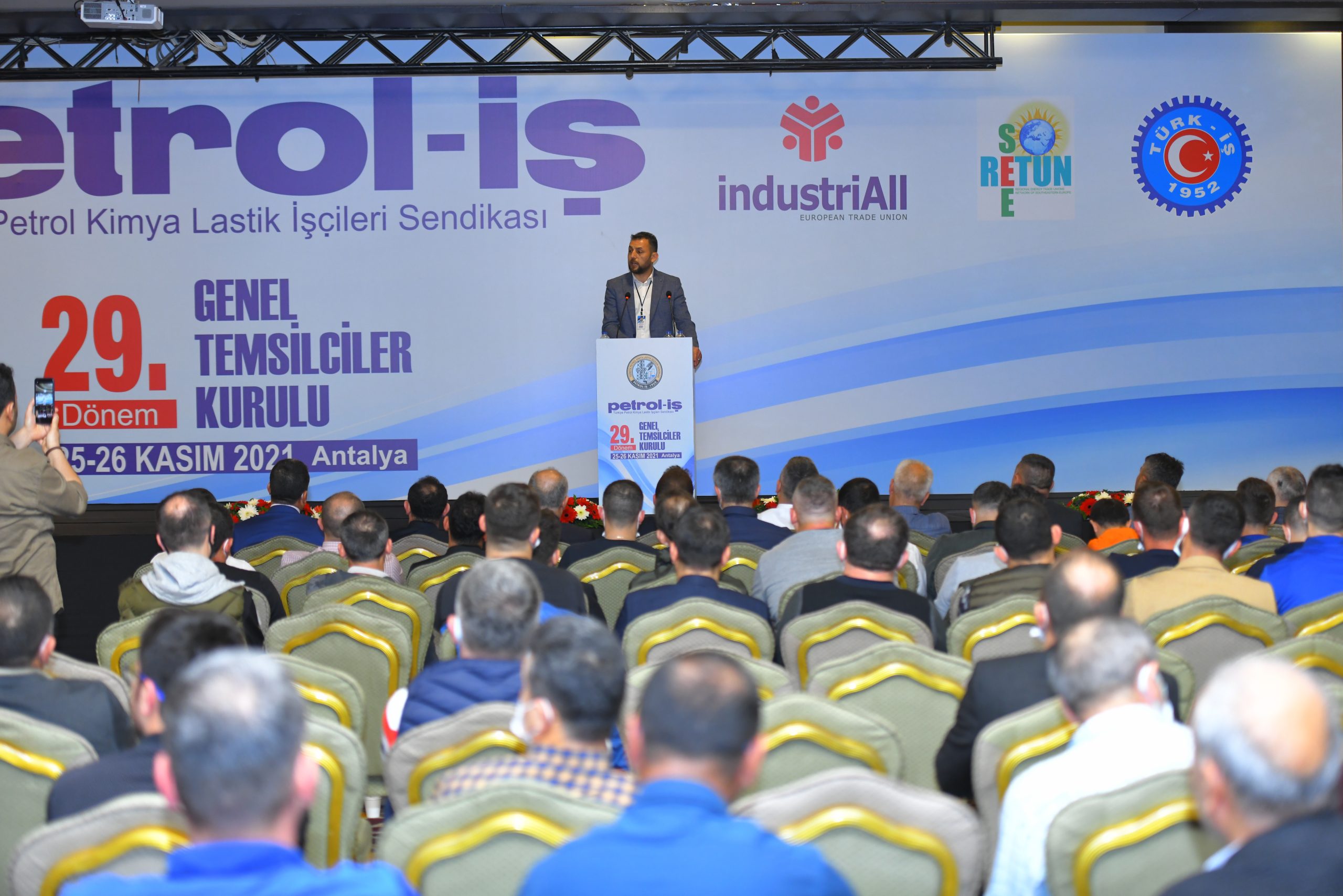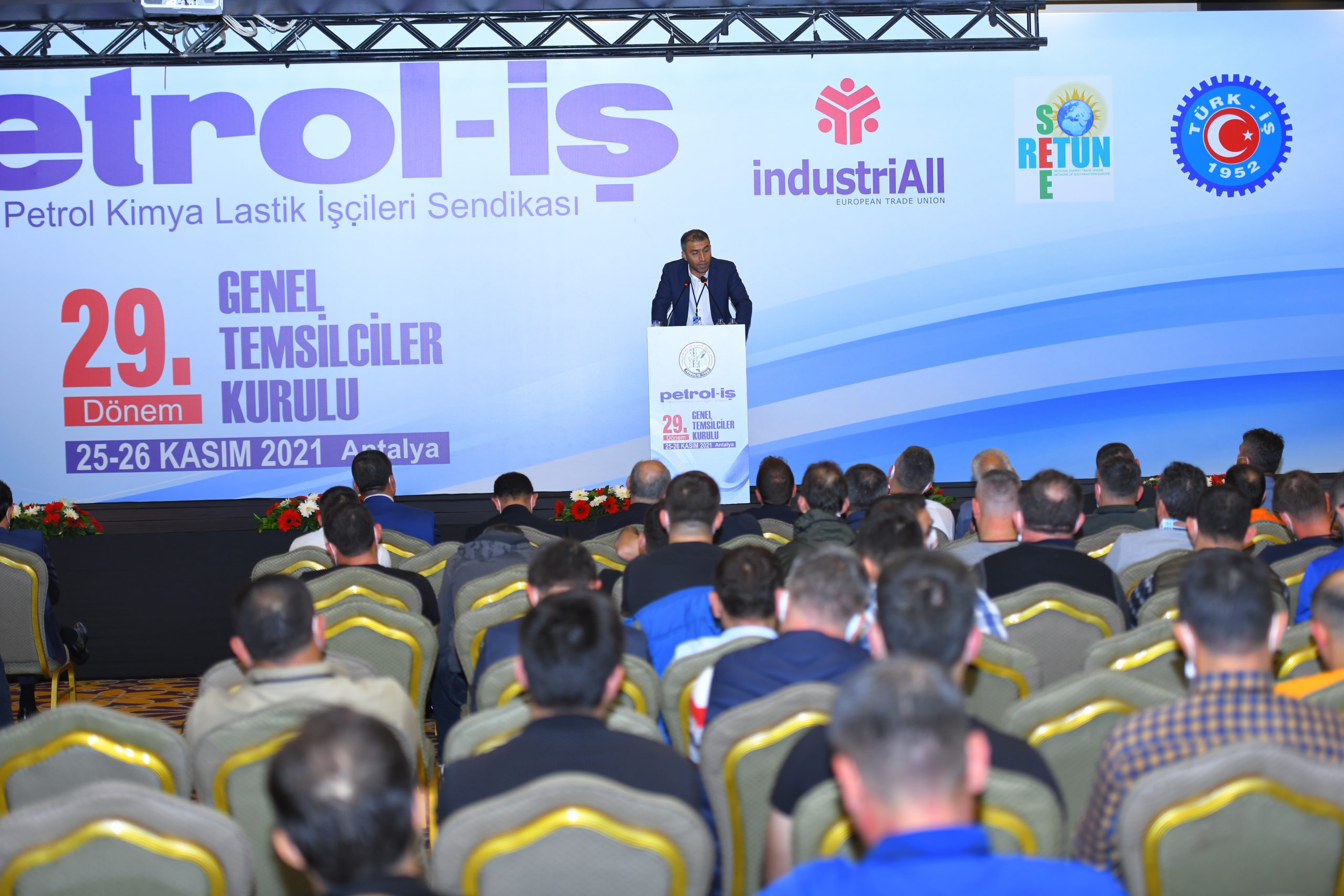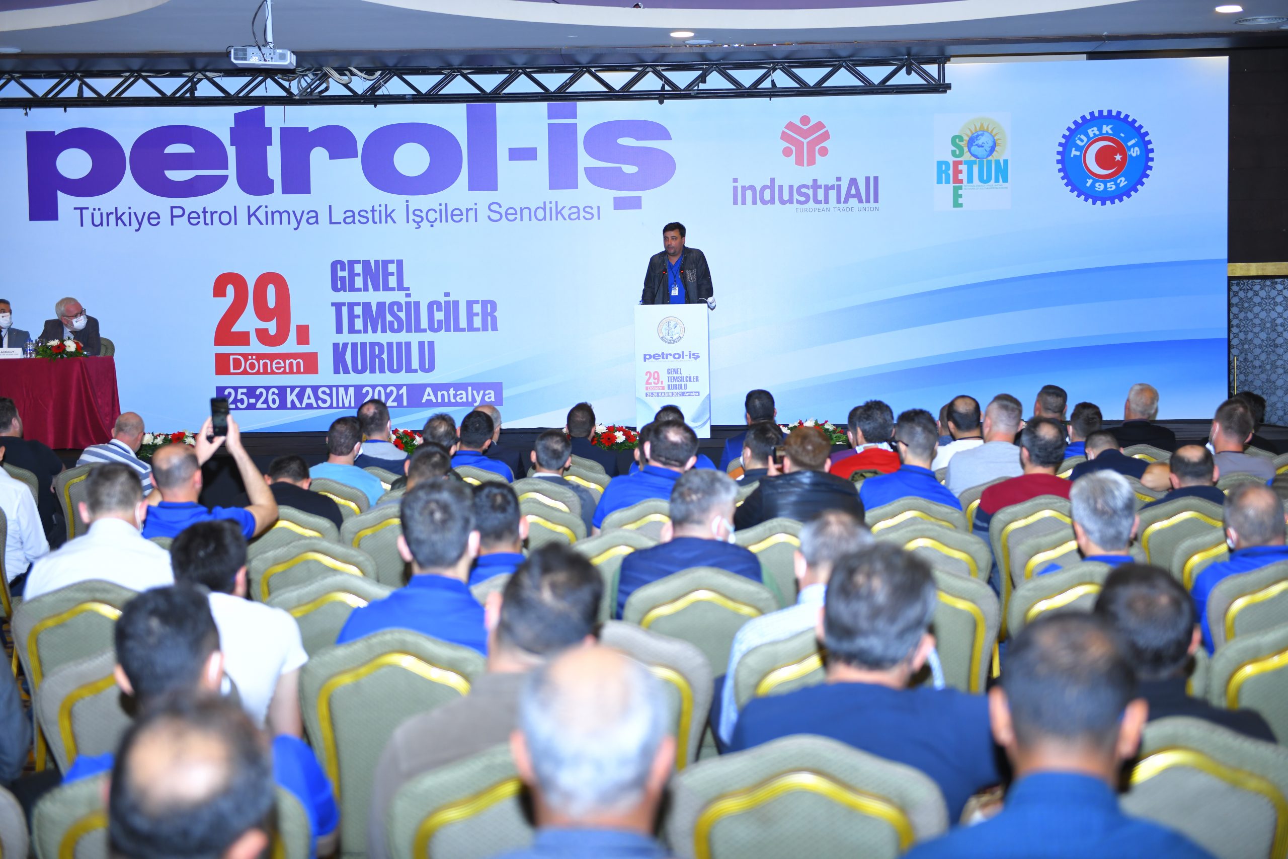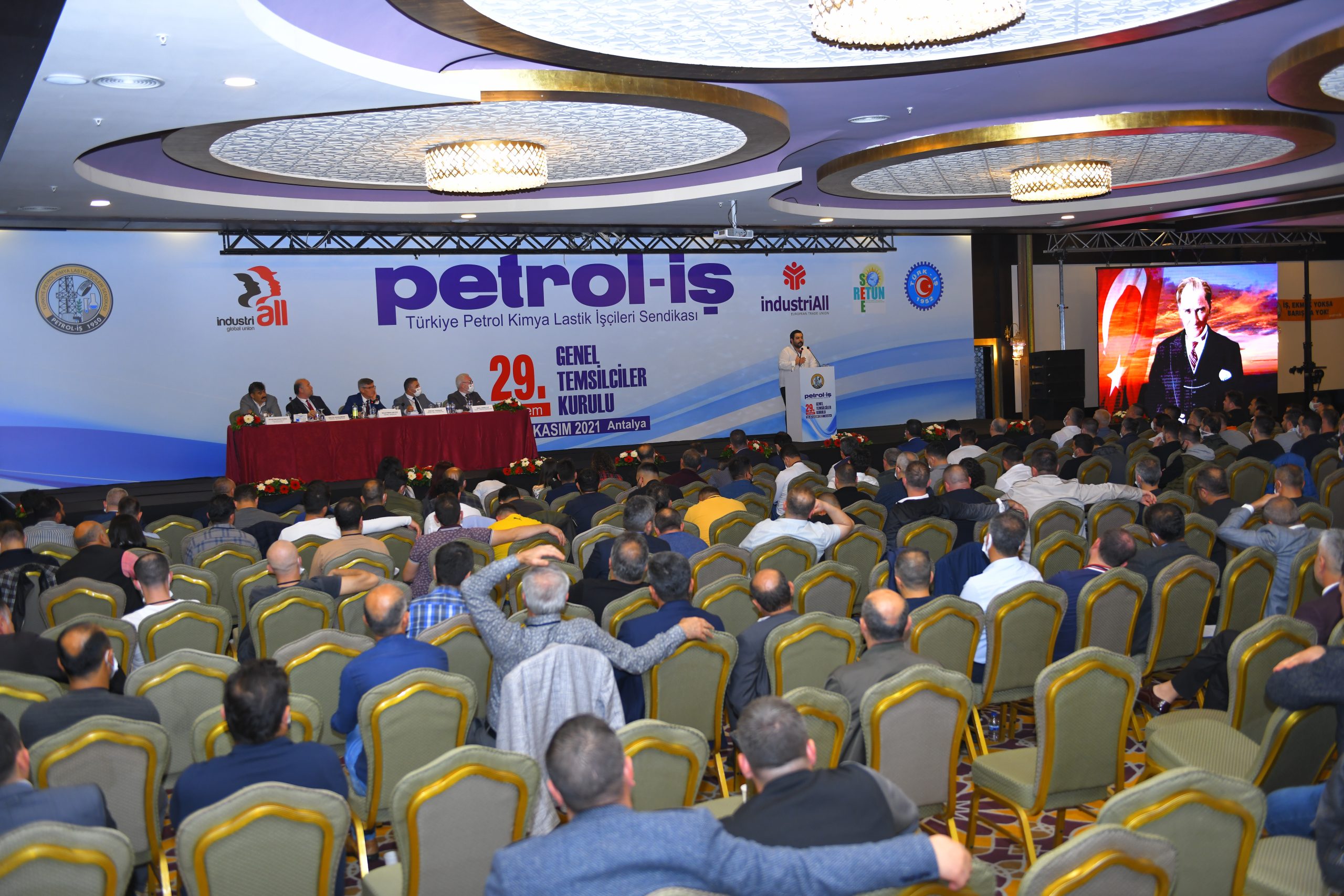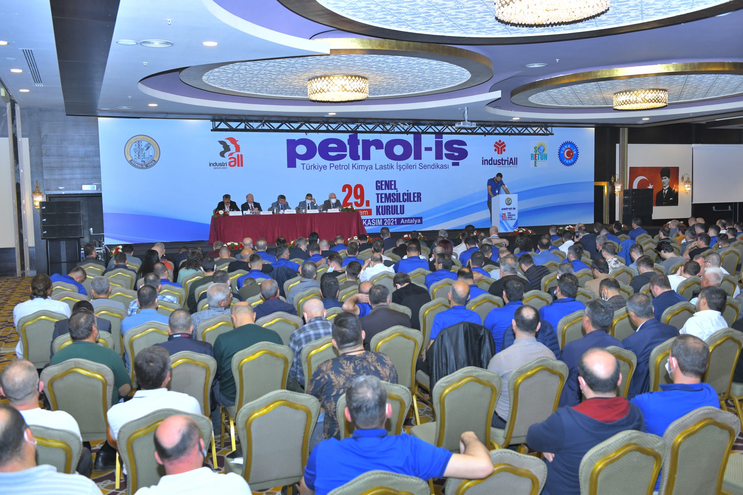 Petrol-İş Sendikası 29. Dönem GENEL TEMSİLCİLER KURULU, 25-26 Kasım 2021 tarihinde Antalya’da 500’i aşkın kişinin katılımıyla toplanmıştır. Her faaliyet döneminde yapılan ve Petrol-İş’in merkez yöneticilerini, merkez denetim ve disiplin kurulu üyelerini; sendikamızın 18 şubesinin örgütlü olduğu işyerlerindeki tüm temsilcileri, şube yöneticilerini, denetim ve disiplin kurulu üyelerini bir araya getiren Genel Temsilciler Kurulu, dünya ve Türkiye’deki gelişmeleri, emeğin ve sendikal hareketin gündemini, sendikamızın örgütsel konularını değerlendirmiştir. Kurul, bu değerlendirmeler ışığında, aşağıda yer alan karar, görüş ve önerileri kamuoyuna iletmeyi uygun bulmuştur: