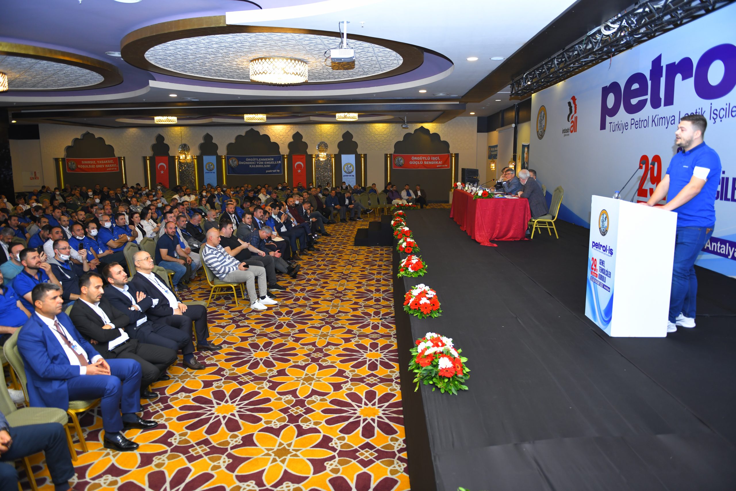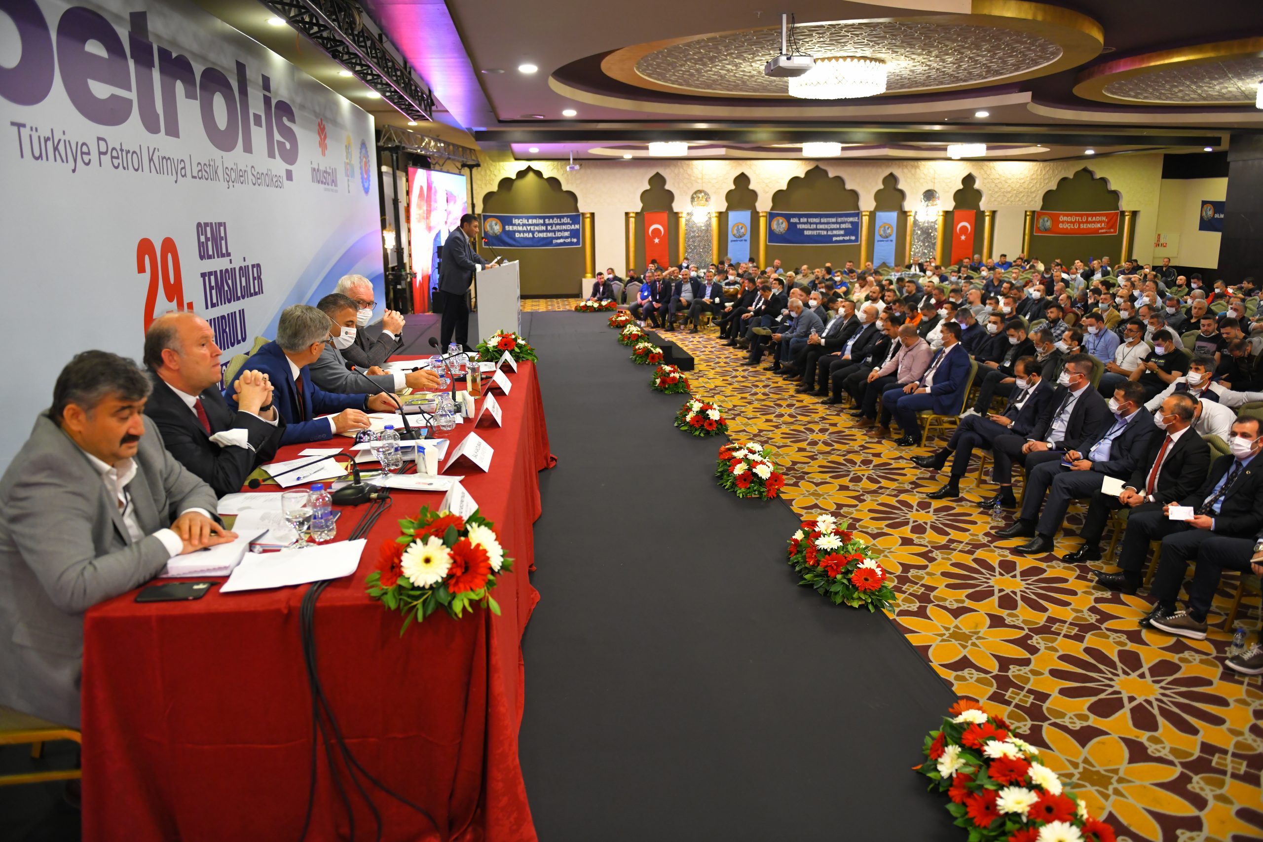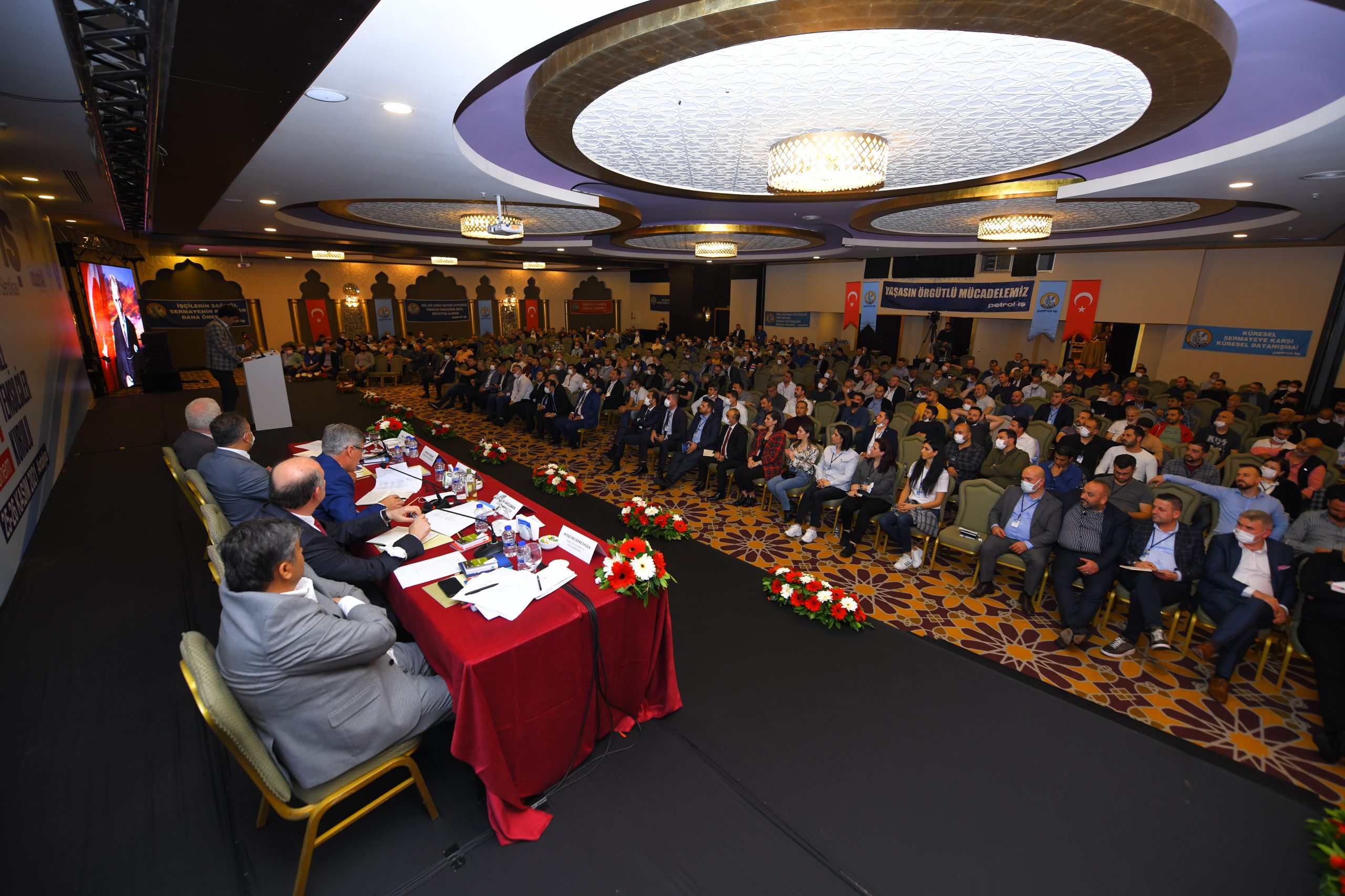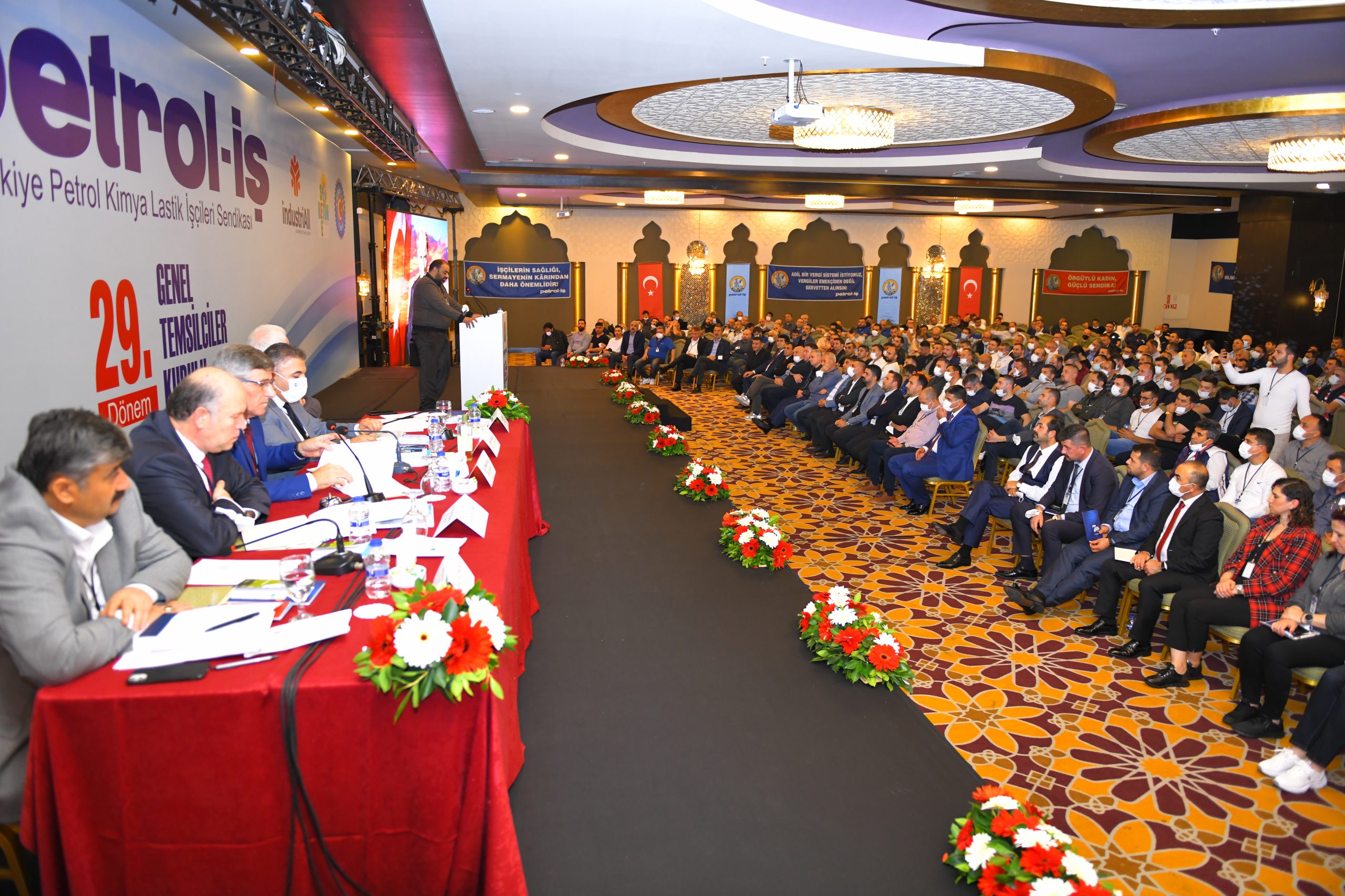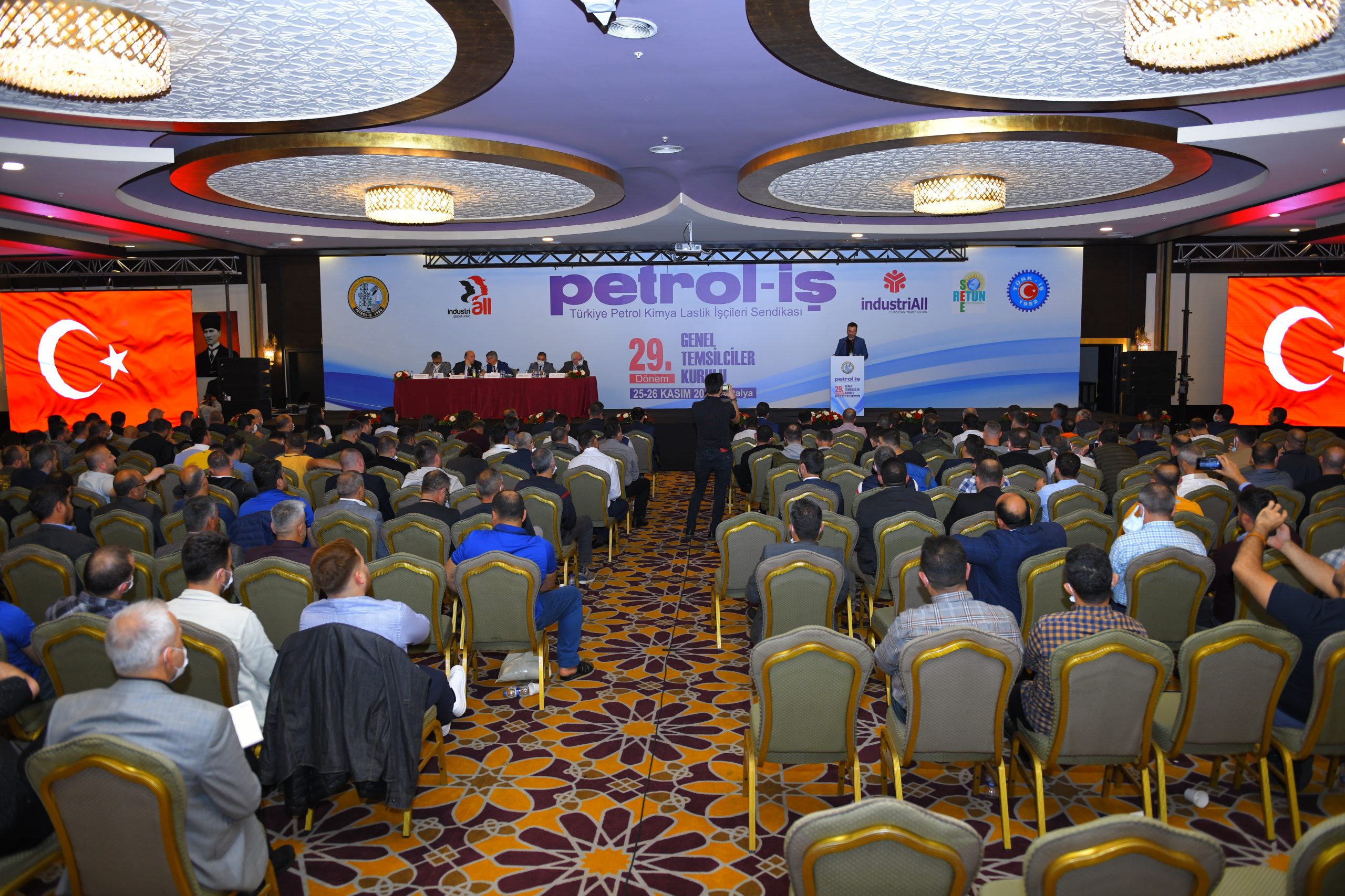Petrol-İş Sendikası 29. Dönem GENEL TEMSİLCİLER KURULU, 25-26 Kasım 2021 tarihinde Antalya’da 500’i aşkın kişinin katılımıyla toplanmıştır. Her faaliyet döneminde yapılan ve Petrol-İş’in merkez yöneticilerini, merkez denetim ve disiplin kurulu üyelerini; sendikamızın 18 şubesinin örgütlü olduğu işyerlerindeki tüm temsilcileri, şube yöneticilerini, denetim ve disiplin kurulu üyelerini bir araya getiren Genel Temsilciler Kurulu, dünya ve Türkiye’deki gelişmeleri, emeğin ve sendikal hareketin gündemini, sendikamızın örgütsel konularını değerlendirmiştir. Kurul, bu değerlendirmeler ışığında, aşağıda yer alan karar, görüş ve önerileri kamuoyuna iletmeyi uygun bulmuştur: