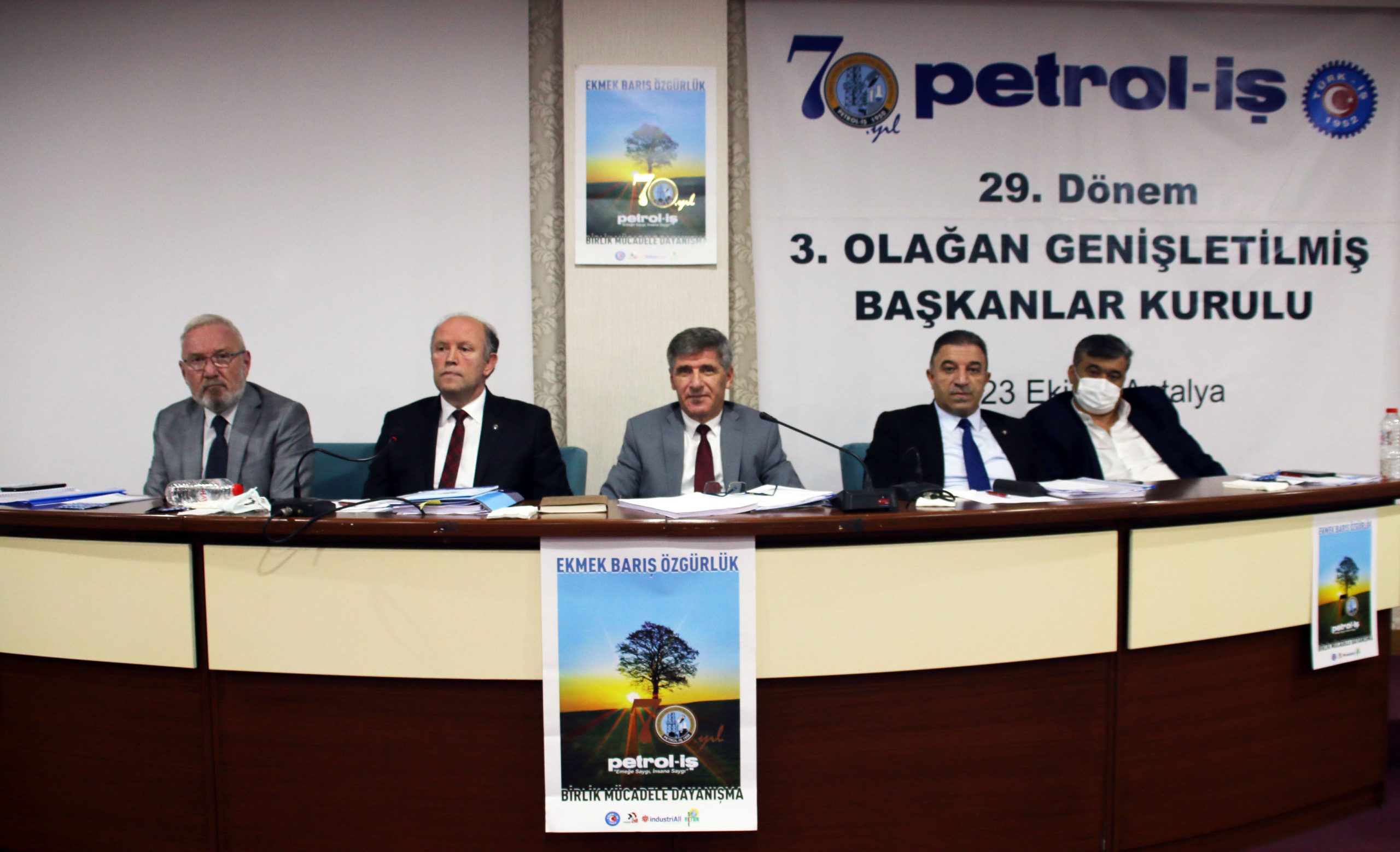 Petrol-İş Genişletilmiş Başkanlar Kurulu 22-23 Ekim tarihlerinde Antalya/Manavgat’ta toplanarak dünyadaki ve ülkedeki gelişmeleri, örgütlenme faaliyetlerini, toplu iş sözleşmelerini, çalışma hayatını ilgilendiren yasa ve tasarıları, örgüt içinde yaşanan aksaklıkları ve örgütsel yapının güçlendirilmesi gibi birçok önemli gündem başlığı ile toplandı.