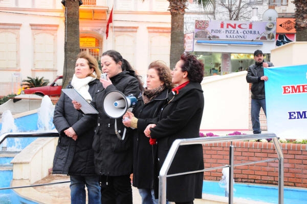 Akşam 17.30’da şubemiz önünde toplanarak Demokrasi Meydanı’na yürüyüş düzenledik. Günün anlam ve önemine ilişkin basın açıklamasını Petrol-İş Tüpraş işyeri temsilcisi Meltem ÖVÜNÇ yaptı. Meltem ÖVÜNÇ 1857 yılında yaşayan bir kadın direnişçinin yaşamış olduğu sıkıntıları anlatarak, 2011 yılında bir kadın işçi olarak yaşadığı sıkıntıları anlattı.