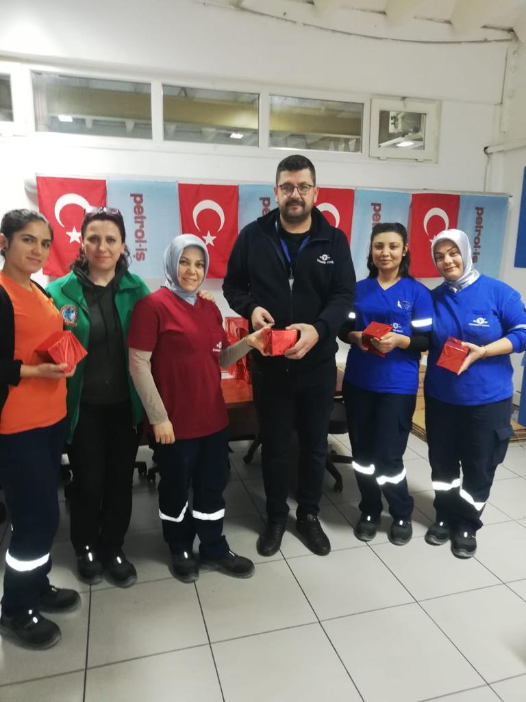 Düzce Şubemizde Kadınların Uluslararası Mücadele ve Dayanışma Günü 8 Mart kutlandı. Düzce Şubemiz kapsamında olan Standard Profil Düzce ve Standard Profil Ege işyerlerinde kadın üyelerimizle biraraya gelindi, üyelerimizin çalışma hayatlarında, günlük hayatlarında yaşadıkları deneyimler üzerine sohbet edildi.