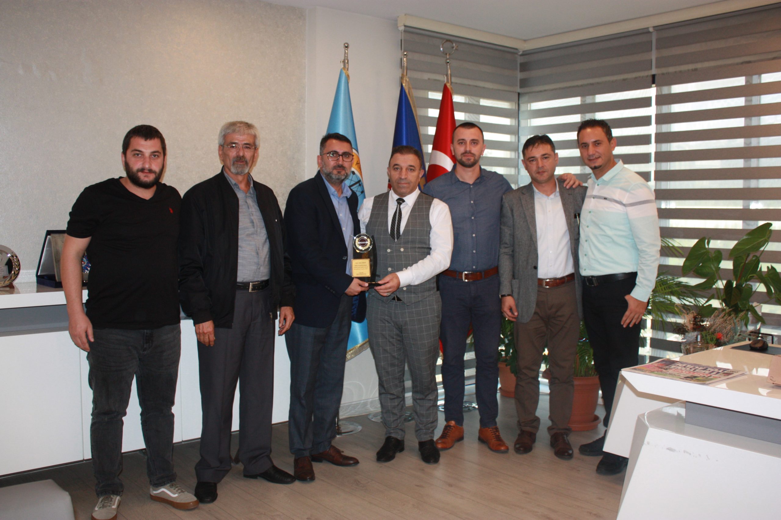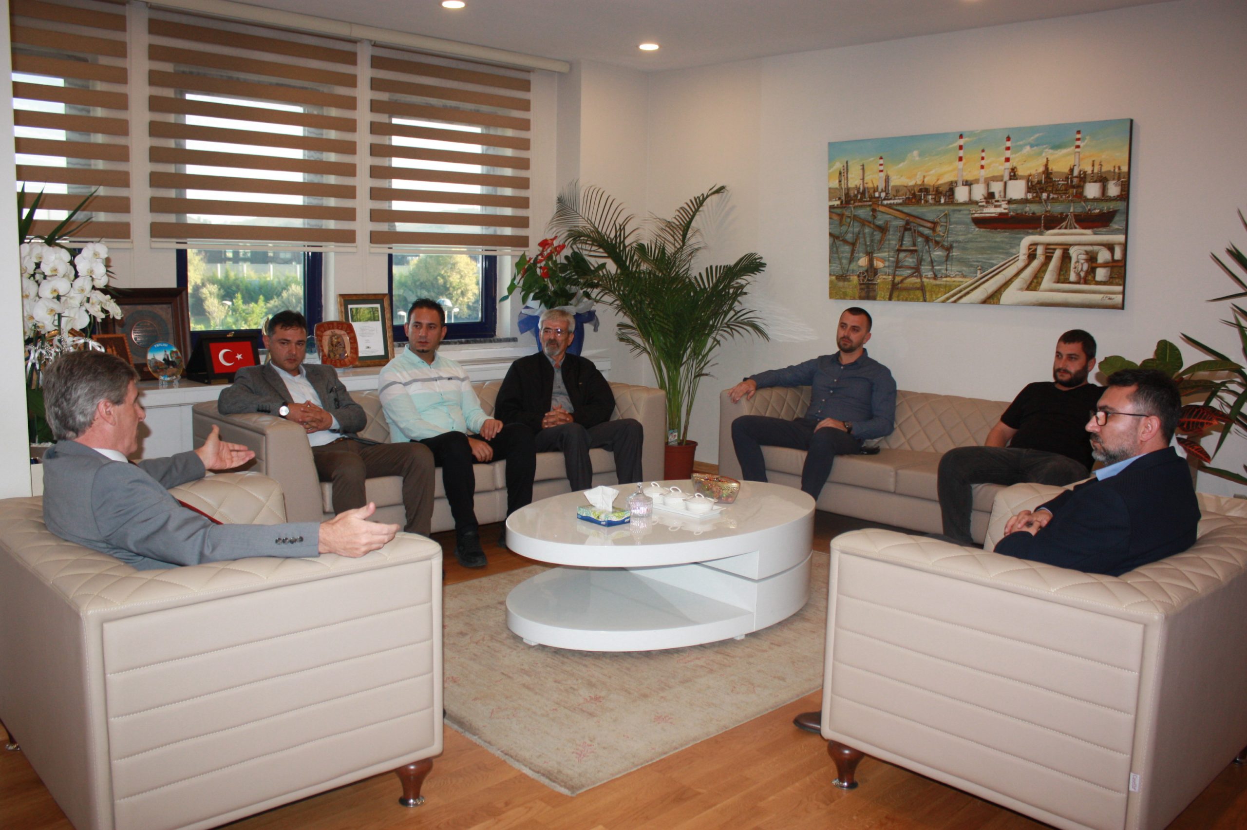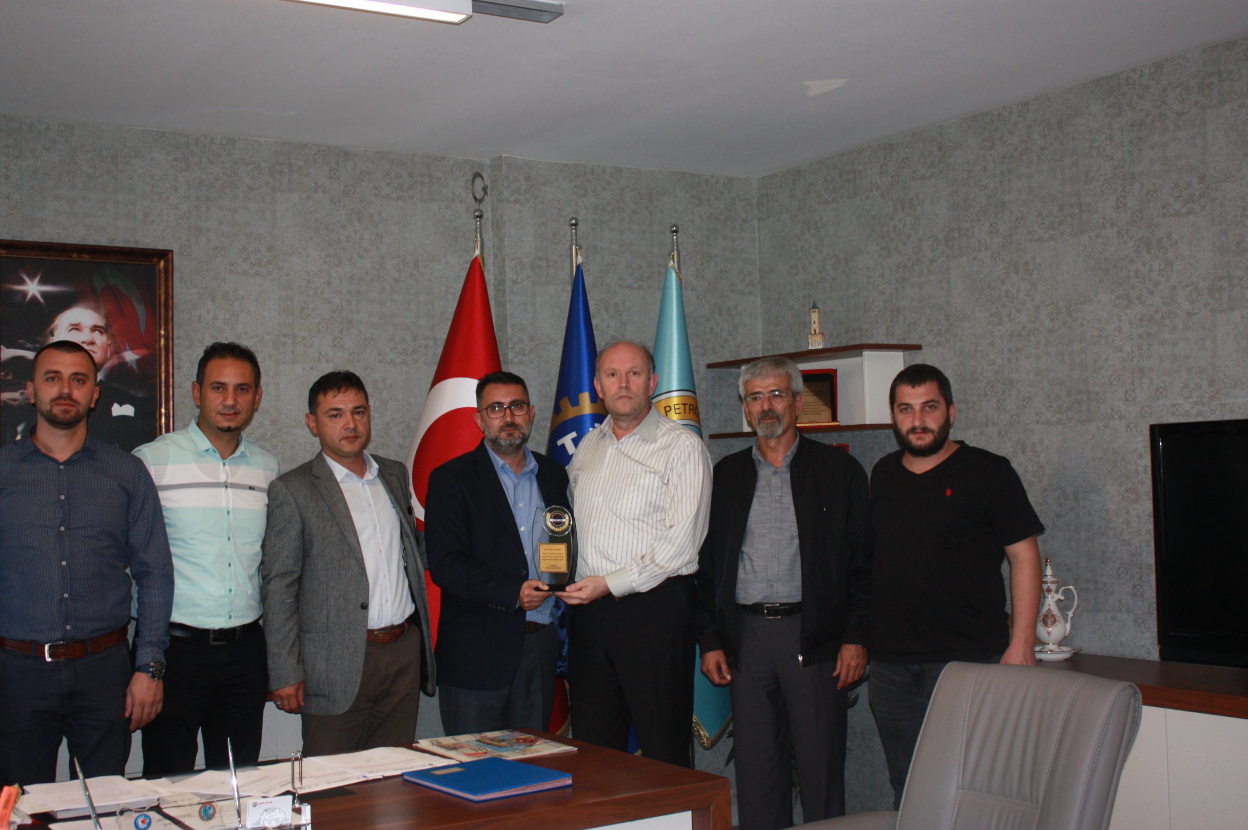 Aliağa Petrol Kimya Lastik İşçileri Yardımlaşma Dayanışma Derneği (A-PET-DER) Yöneticilerinden oluşan heyet 25 Ekim 2019 tarihinde sendikamızı ziyaret etti. Heyet, Genel Başkanımız Süleyman Akyüz’e, Genel Sekreterimiz Salih Akduman’a, Genel Mali Sekreterimiz Erhan Yakışan’a, Genel Örgütlenme ve Eğitim Sekreterimiz Niyazi Recep Kethüda’ya ve Genel Yönetim Sekreterimiz Ünal Akbulut’a yeni görevlerinde başarılar dileyerek, plaket takdiminde bulundular.