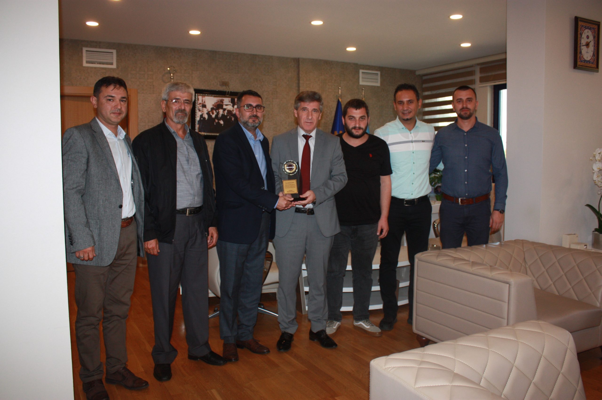 Aliağa Petrol Kimya Lastik İşçileri Yardımlaşma Dayanışma Derneği (A-PET-DER) Yöneticilerinden oluşan heyet 25 Ekim 2019 tarihinde sendikamızı ziyaret etti. Heyet, Genel Başkanımız Süleyman Akyüz’e, Genel Sekreterimiz Salih Akduman’a, Genel Mali Sekreterimiz Erhan Yakışan’a, Genel Örgütlenme ve Eğitim Sekreterimiz Niyazi Recep Kethüda’ya ve Genel Yönetim Sekreterimiz Ünal Akbulut’a yeni görevlerinde başarılar dileyerek, plaket takdiminde bulundular.