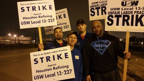 Shell, Marathon, Tesoro, BP ve LyondellBasell’e ait 11 rafineride şu an 5.000’den fazla USW üyesi grevde. Grev, iş güvenliği, işçi sayısının iş güvenliğini tehlikeye sokacak derecede yetersiz olması ve ağır fazla mesai koşulları konularında Shell’in ciddi öneriler getirmemesi üzerine başladı.