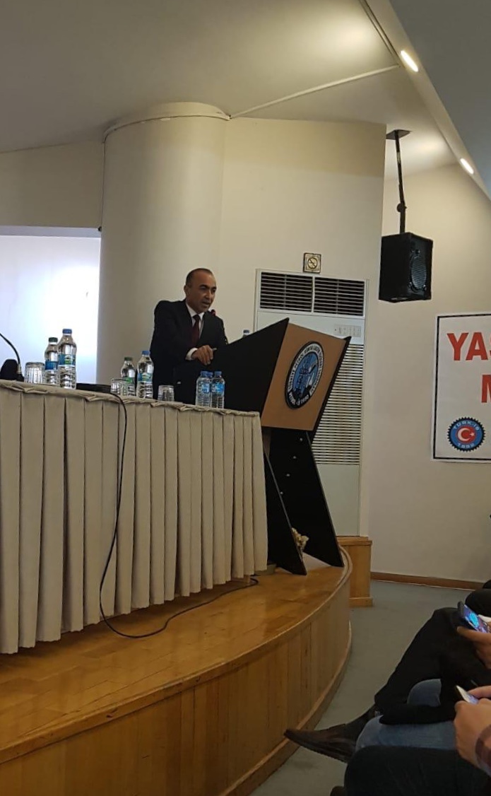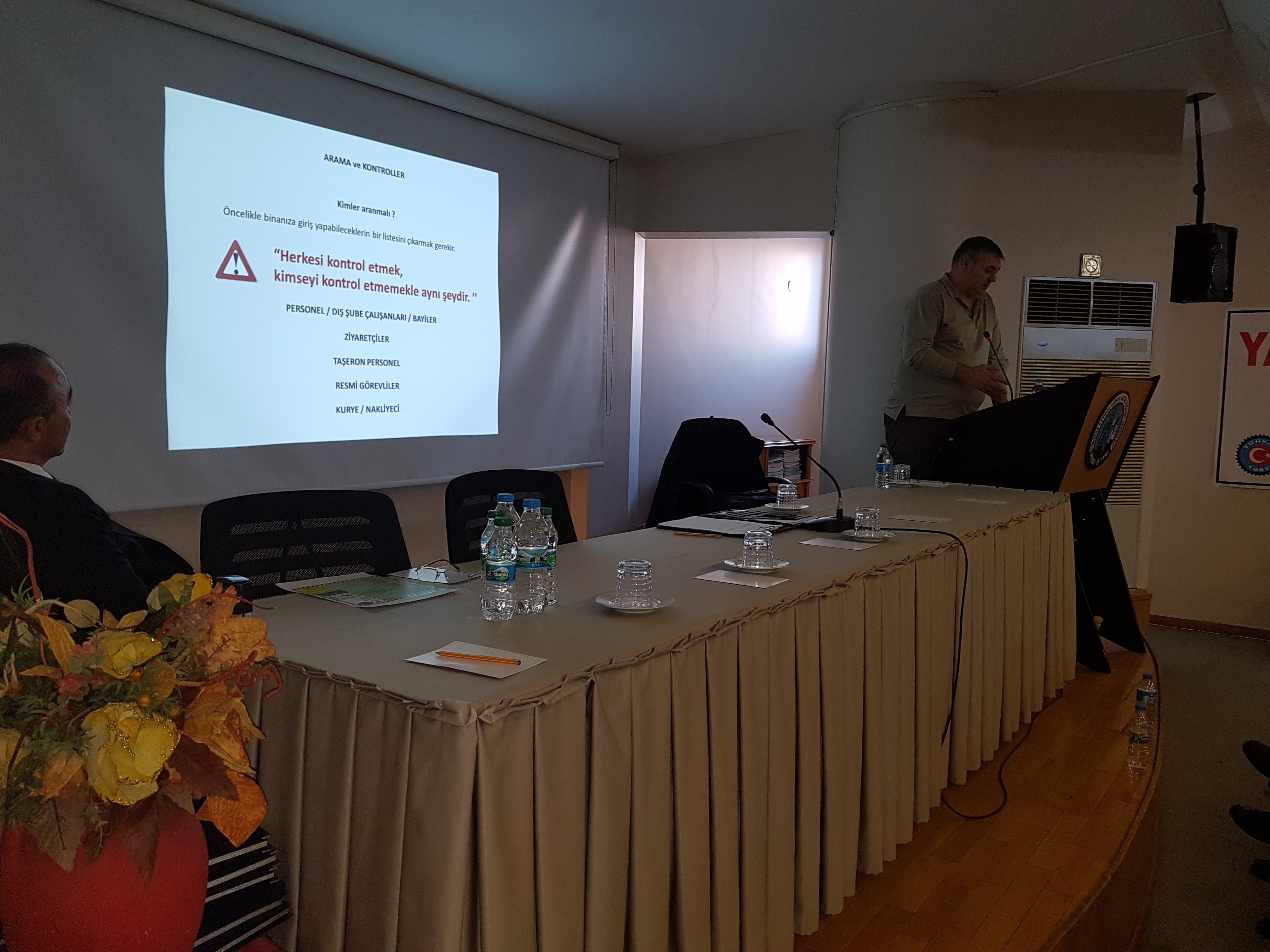 Ardından, yine Şube Başkanımız Koşar’ın moderatörlüğünü yaptığı ilk oturumda, emekli bomba imha uzmanı Yüksel Maral “Sabotajlar ve Tesis Koruma”, Ankara AFAD İl Müdürlüğünden Fatma Alço “Metropollerde Yaşanabilecek Doğal Afetler”, PKD Eğitmeni Abidin Özler “Patlayıcı Ortamlar ve Acil Durum Önlemleri”, İSG Bilim Uzmanı Ruhi Öktem ise “Kimyasallar ve Tesis Güvenliği” konularında sunumlarını yaptılar.